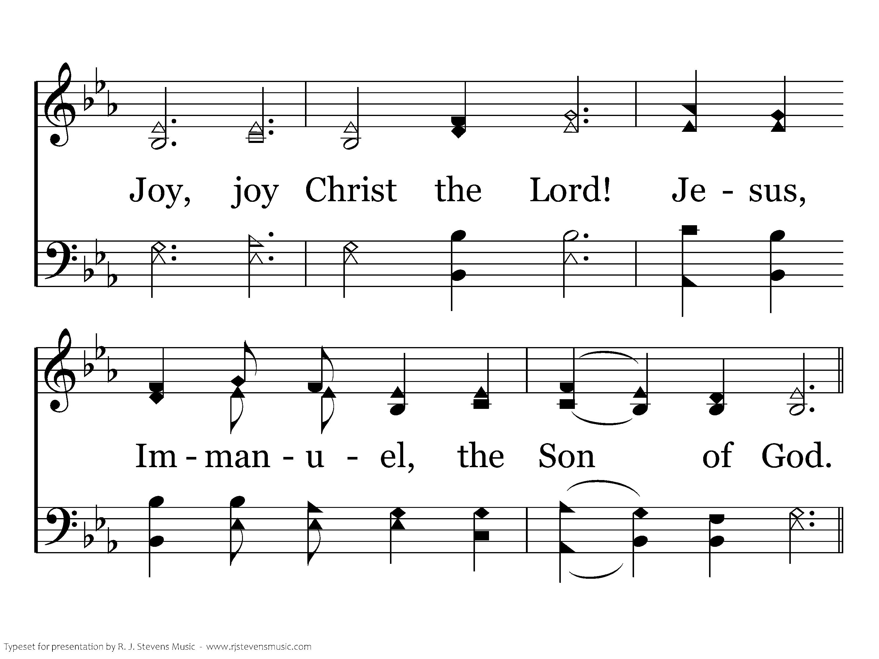 Shepherds, do not fear. I bring glad tidings: A Savior is here. Joy, joy for Christ the Lord! Jesus, Immanuel, the Son of God.