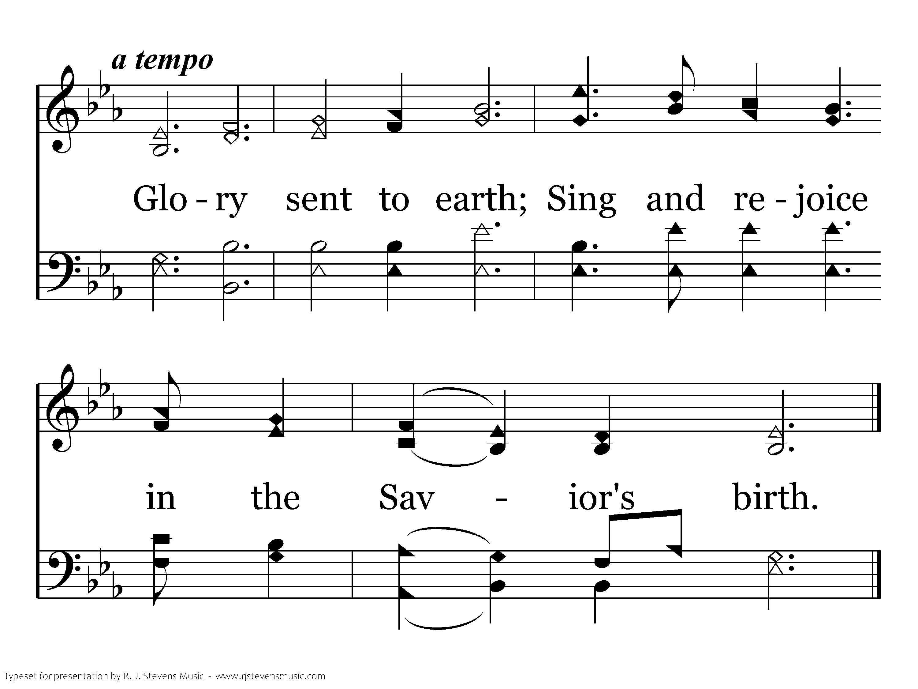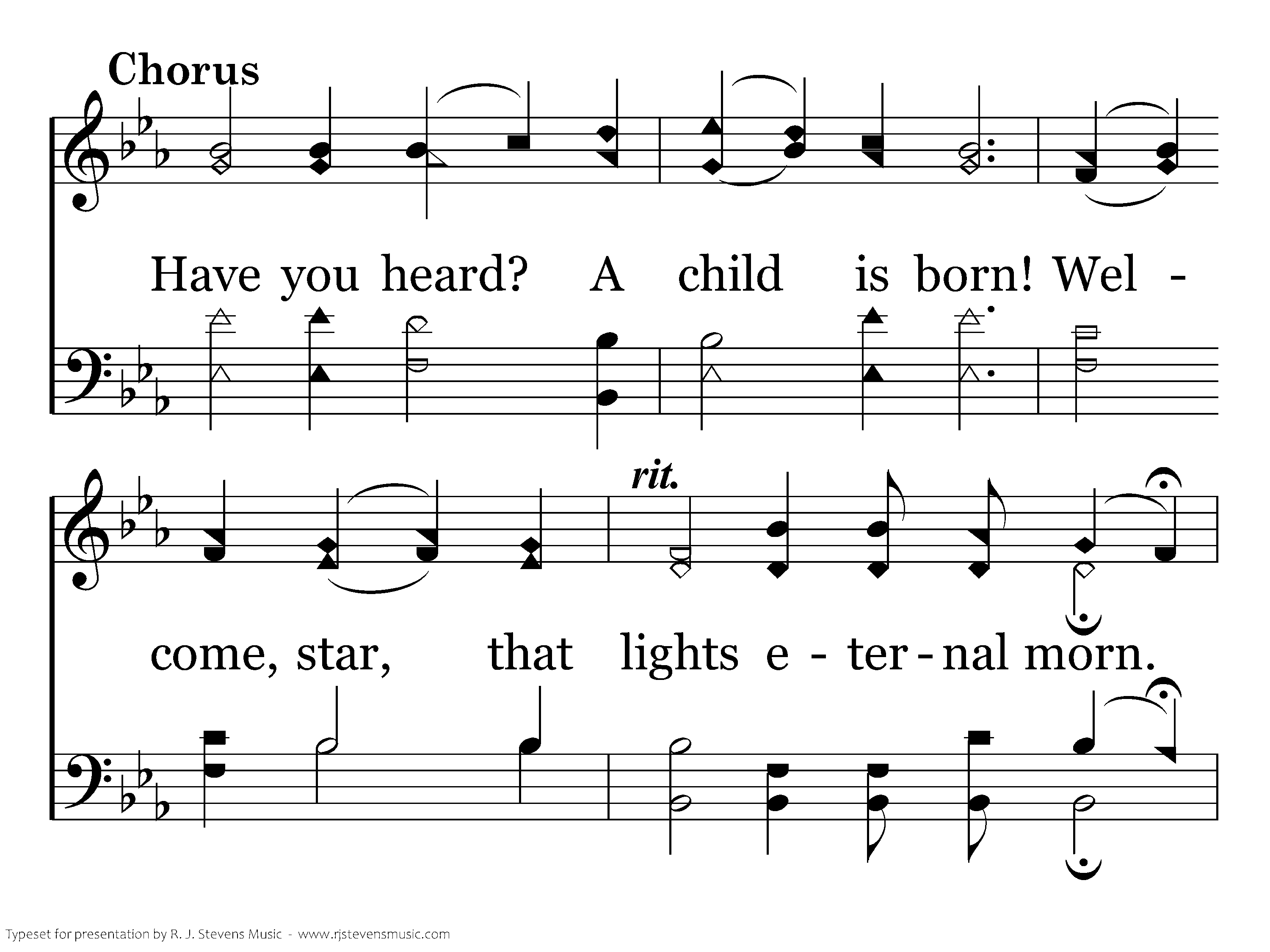 Have you heard? A child is born! Welcome, star, that lights eternal morn. Glory sent to earth; Sing and rejoice in the Savior's birth.