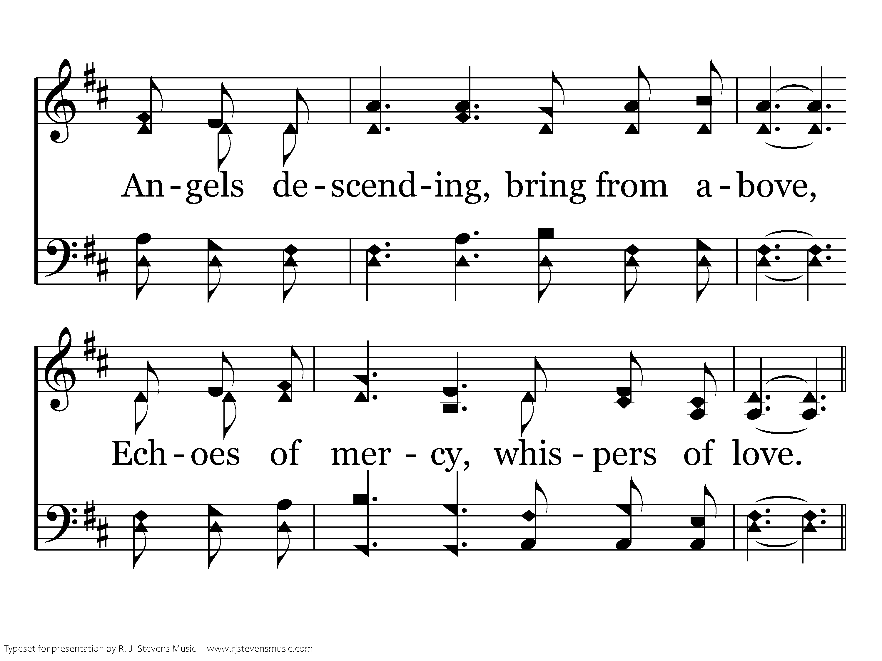 Perfect submission, perfect delight, Visions of rapture now burst on my sight, Angels descending, bring from above, Echoes of mercy, whispers of love.