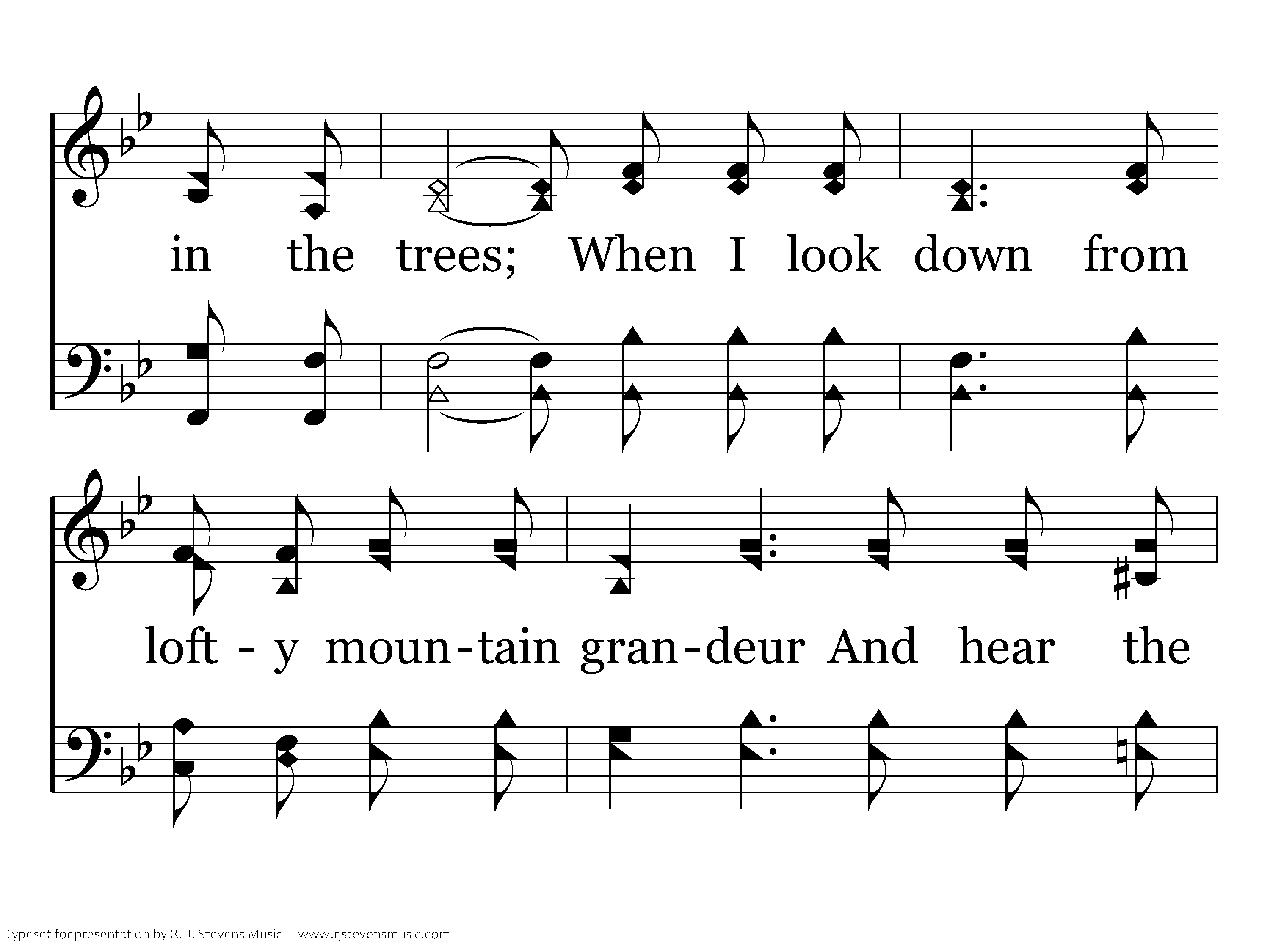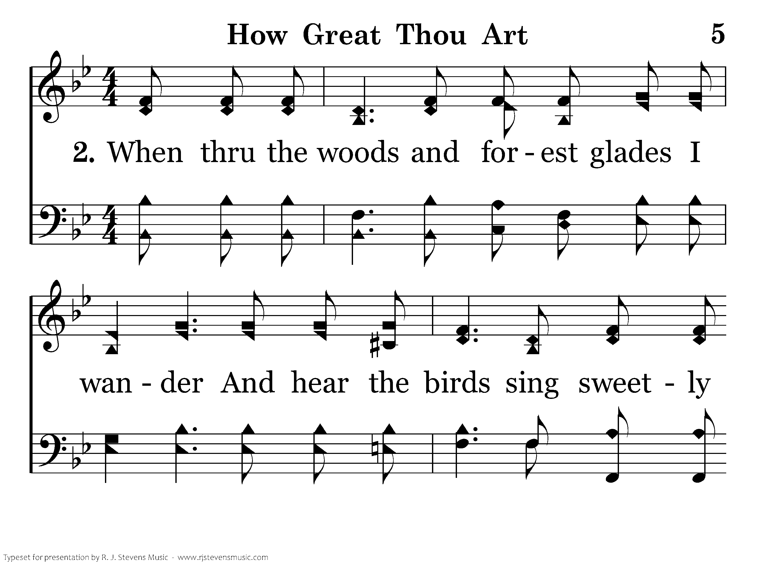 When thru the woods and forest glades I wander And hear the birds sing sweetly in the trees; When I look down from lofty mountain grandeur And hear the brook and feel the gentle breeze;