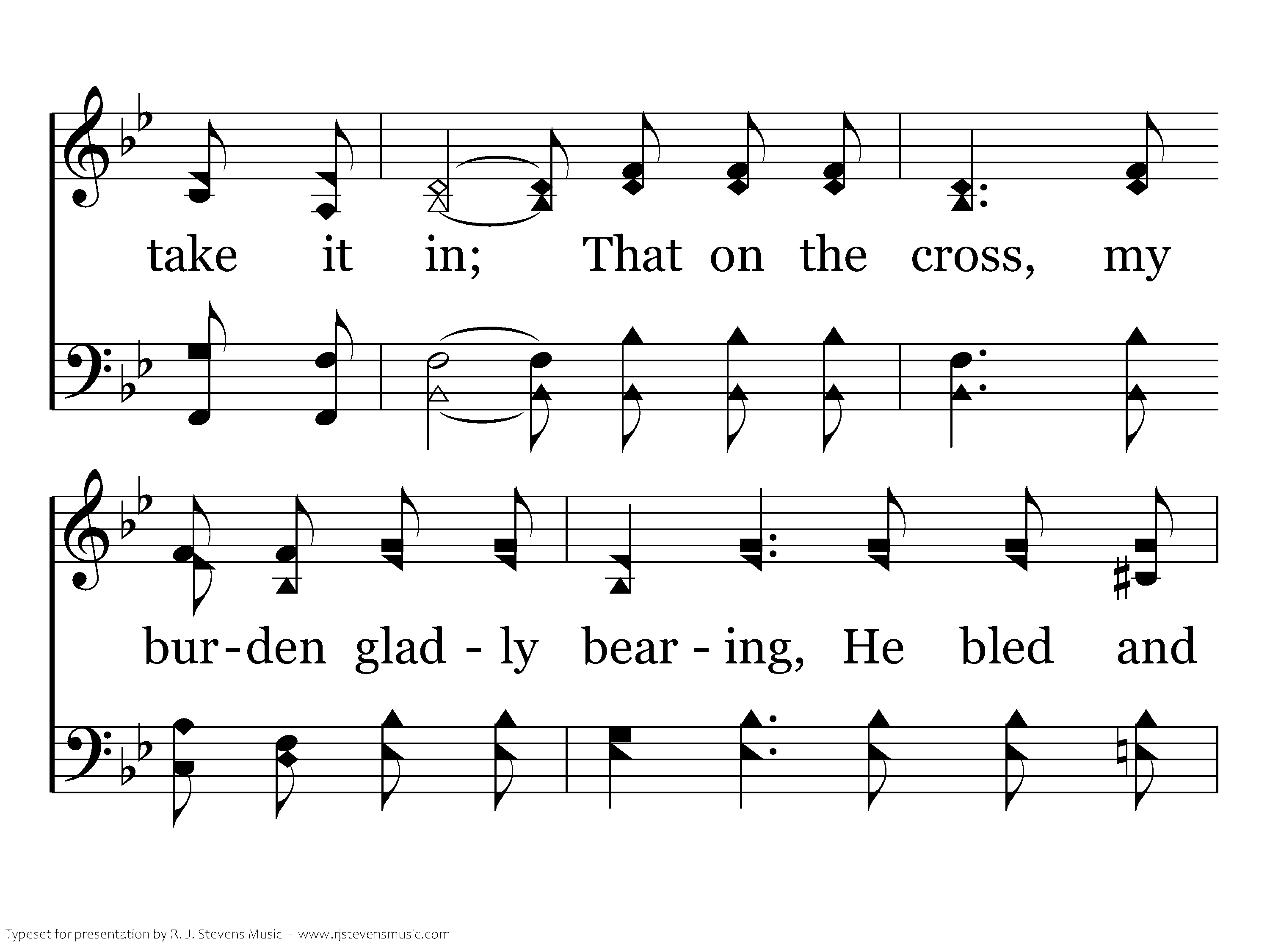 And when I think that God, His Son not sparing, Sent Him to die, I scarce can take it in: That on the cross, my burden gladly bearing, He bled and died to take away my sin.