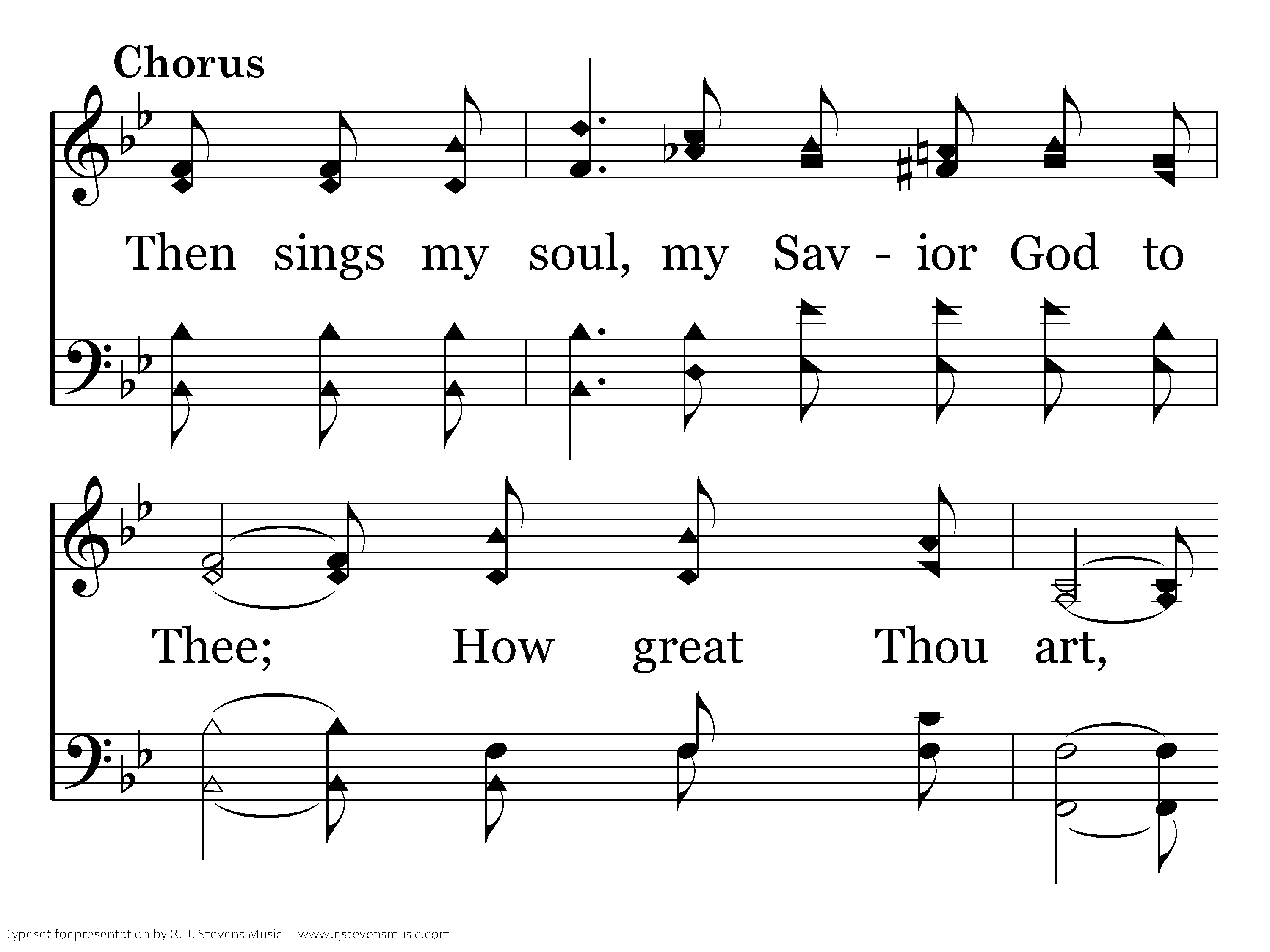 Then sings my soul, my Savior God to Thee; How great Thou art, how great Thou art! Then sings my soul, my Savior God to Thee; How great Thou art, how great Thou art!