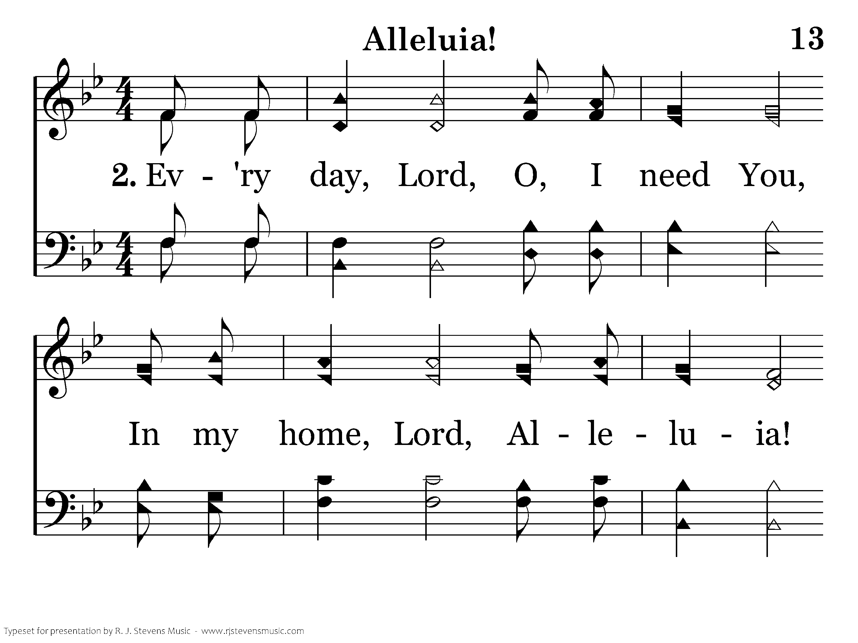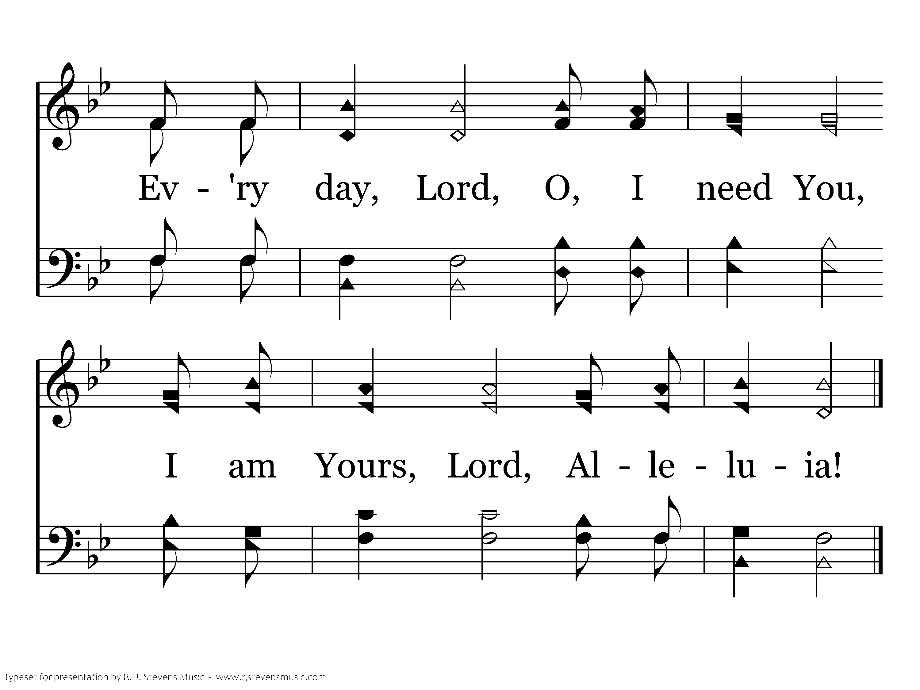 Ev'ry day, Lord, O I need You, In my home, Lord, Alleluia! Ev'ry day Lord, Oh, I need You, I am Yours, Lord, Alleluia!