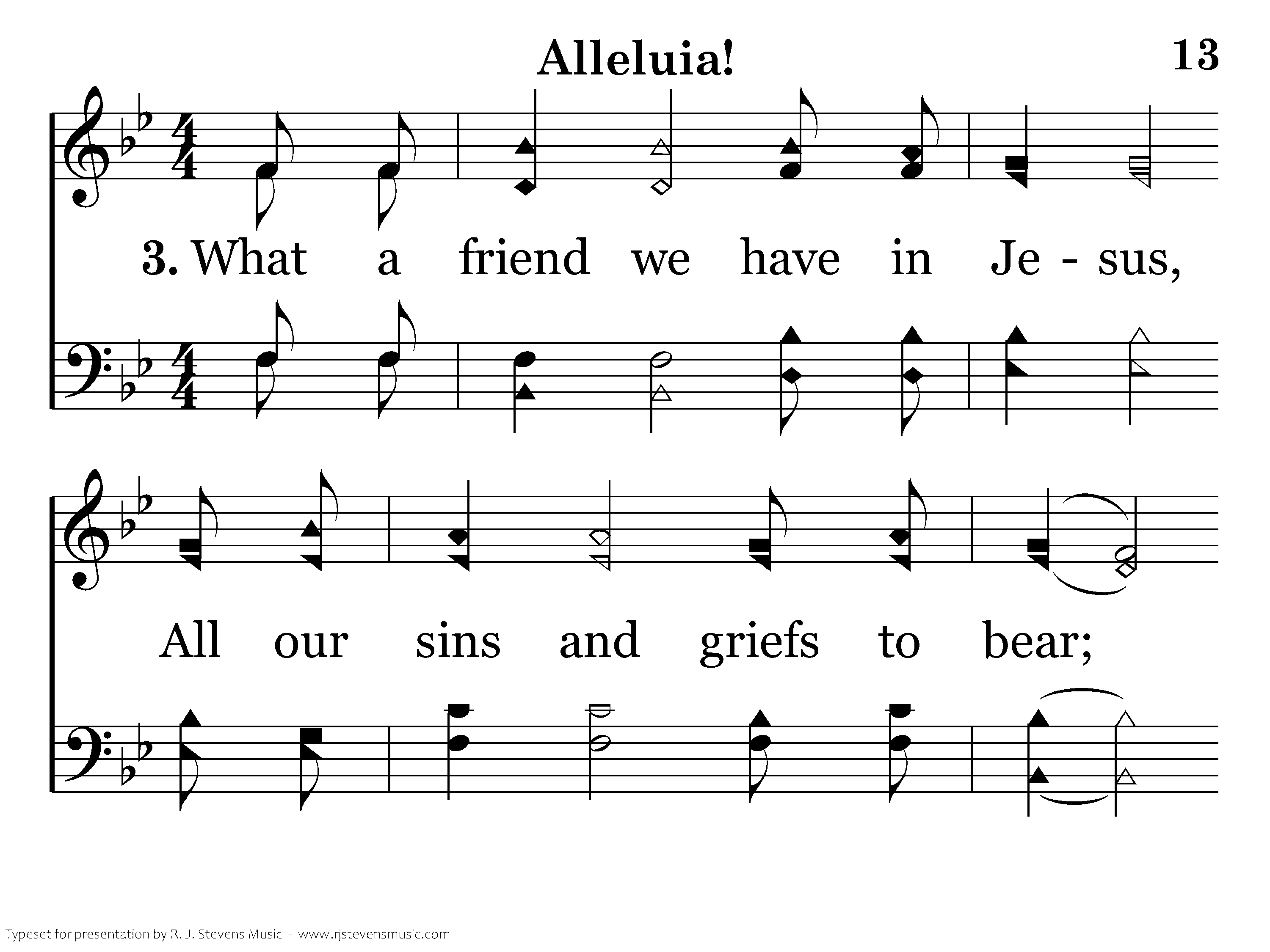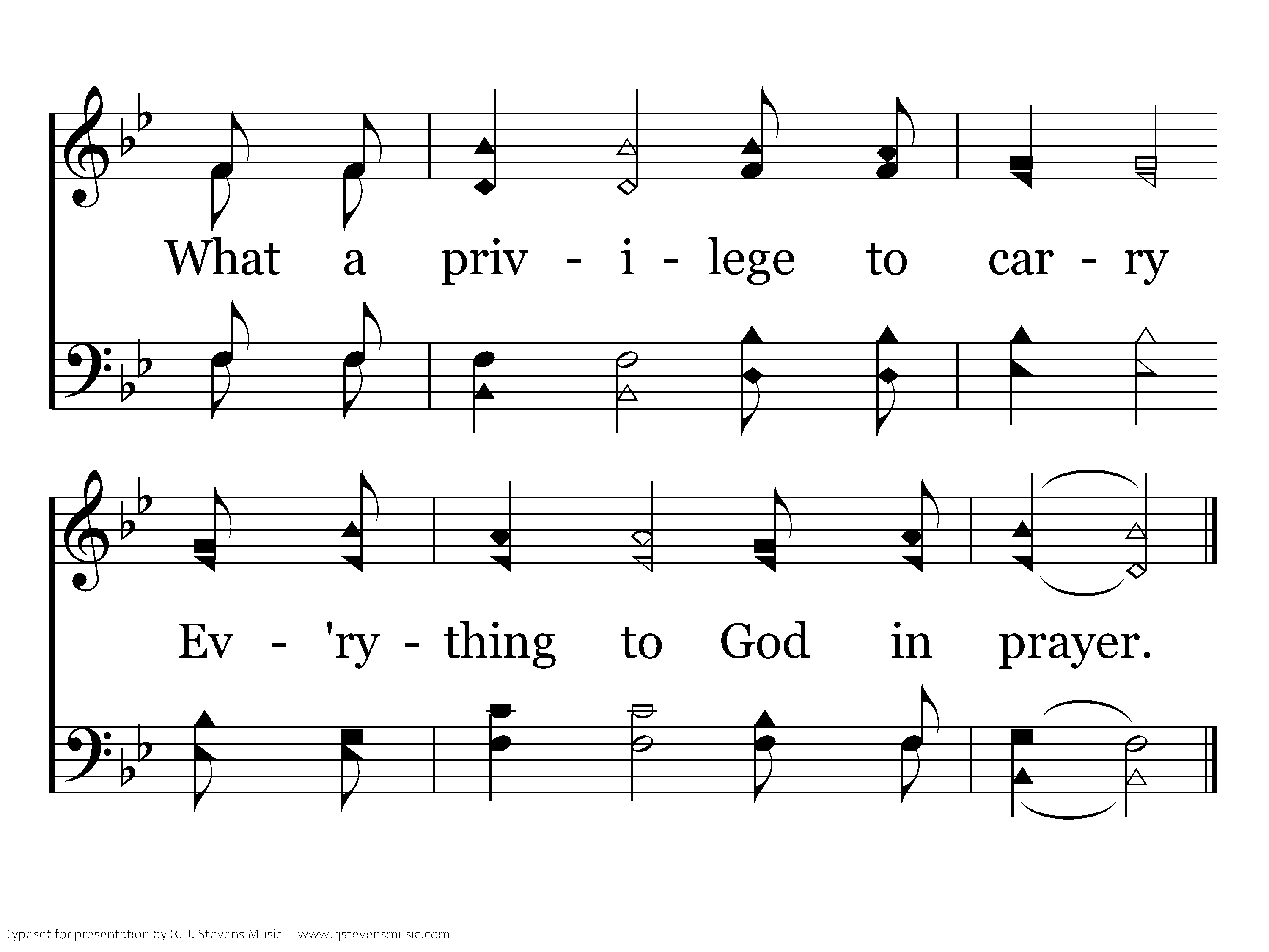 What a friend we have in Jesus, All our sins and griefs to bear; What a privelege to carry Ev'rything to God in prayer.