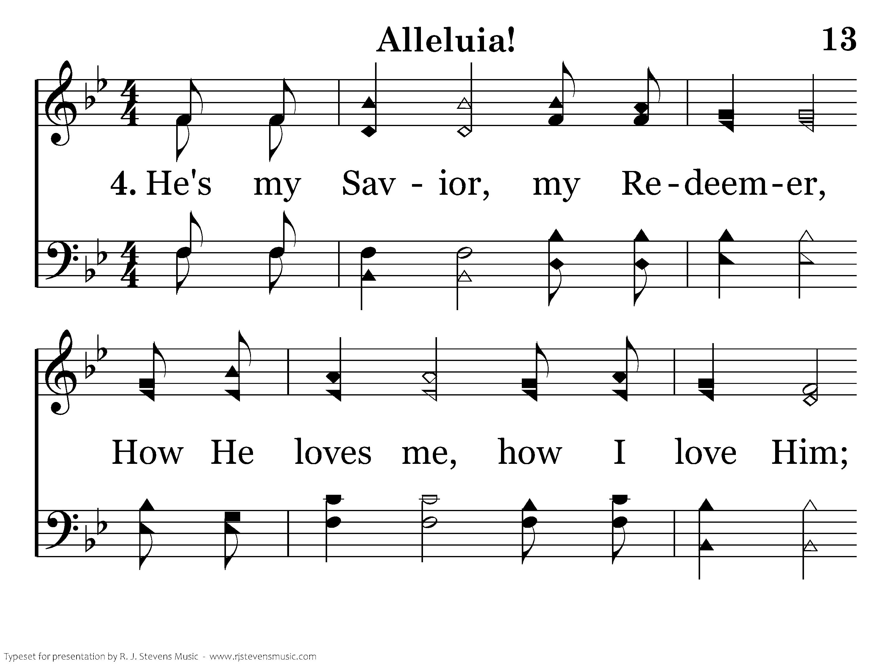 He's my Savior, my Redeemer, how He loves me, how I love Him; He is risen, He is coming, Lord, come quickly, Alleluia!