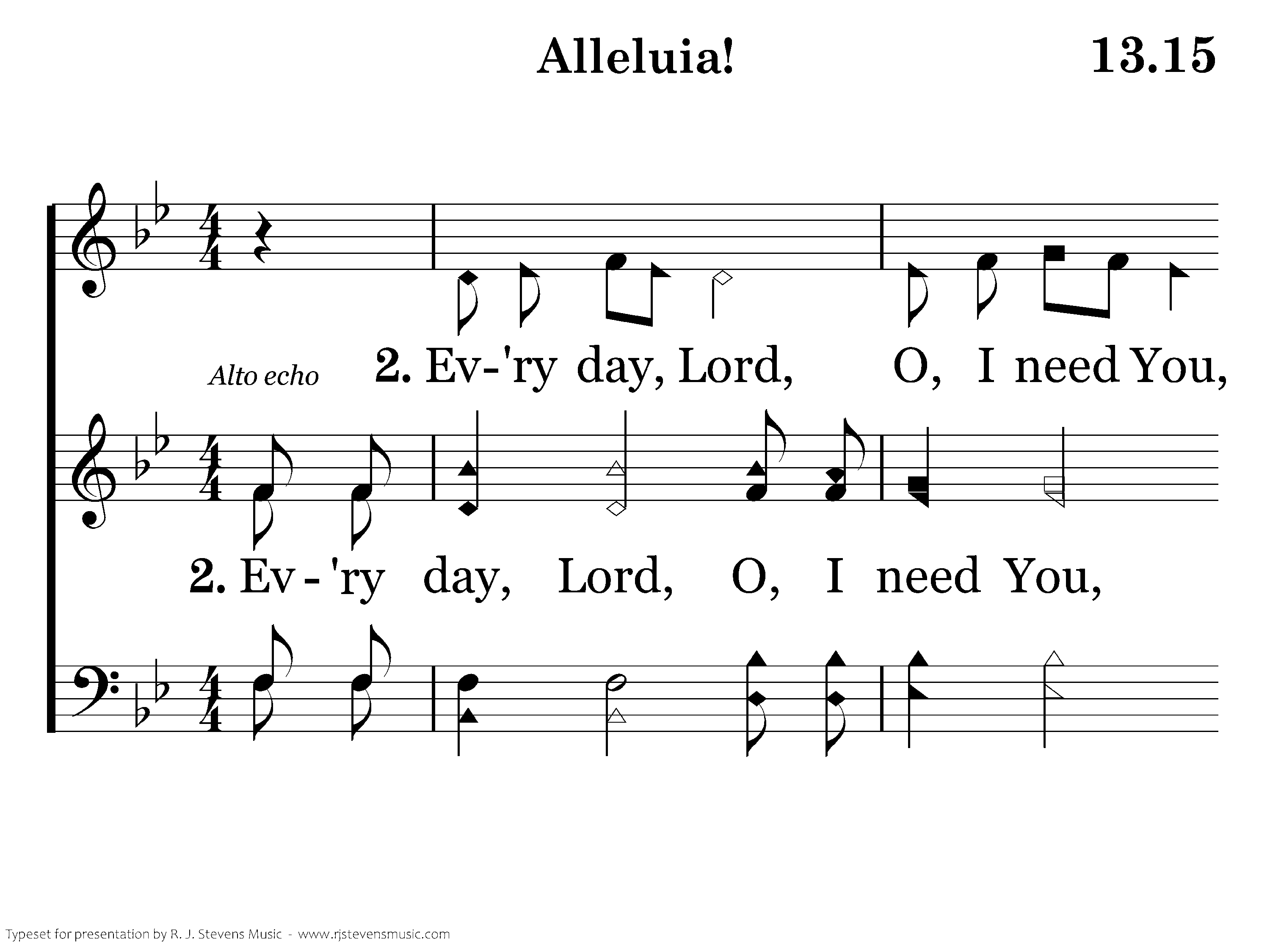 Ev'ry day, Lord, O, I need You, In my home, Lord, Alleluia! Ev'ry day, Lord, O, I need You, I am Yours, Lord, Alleluia!