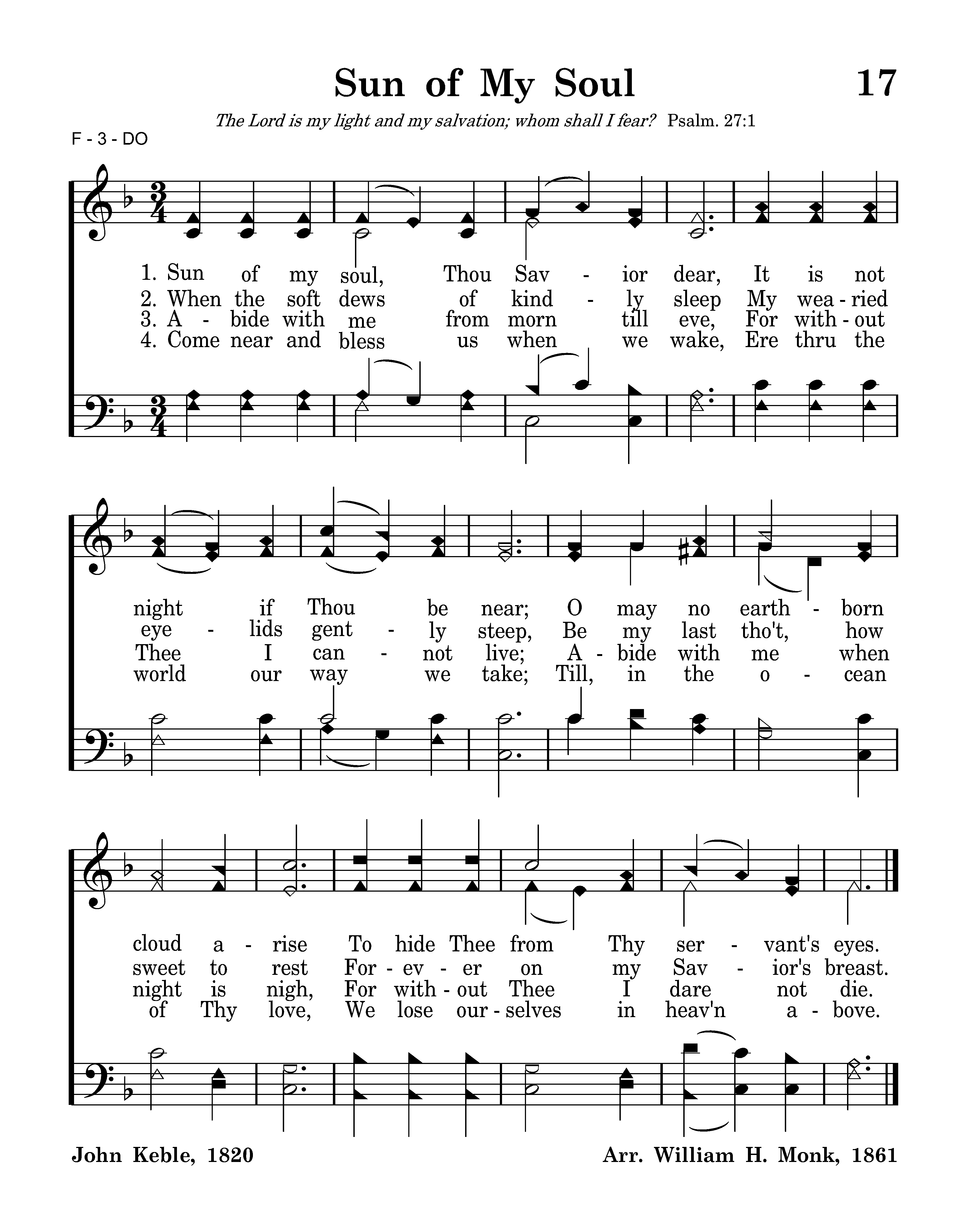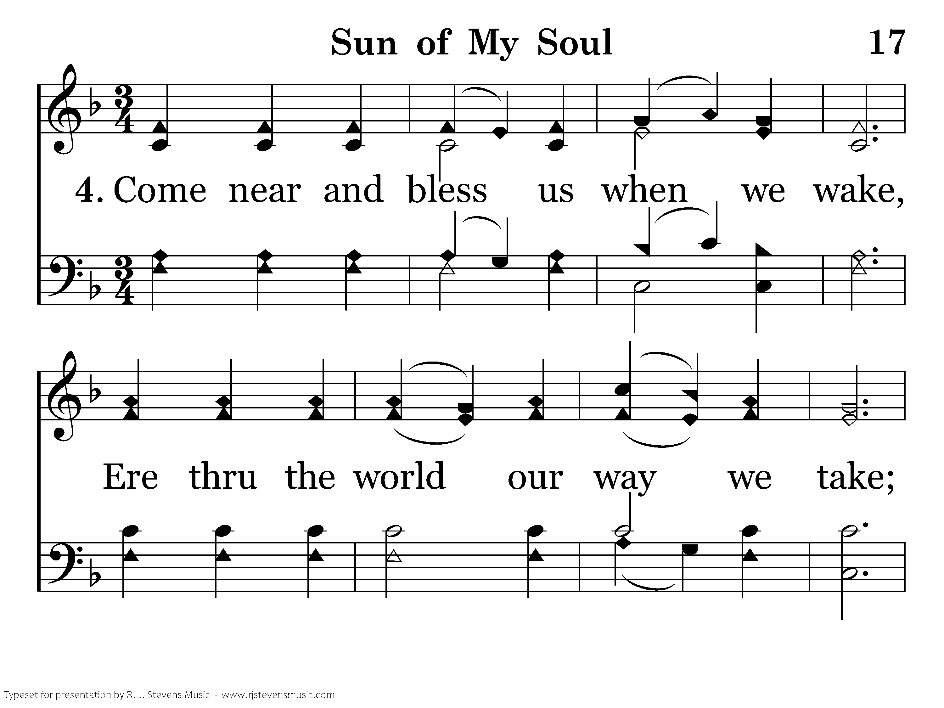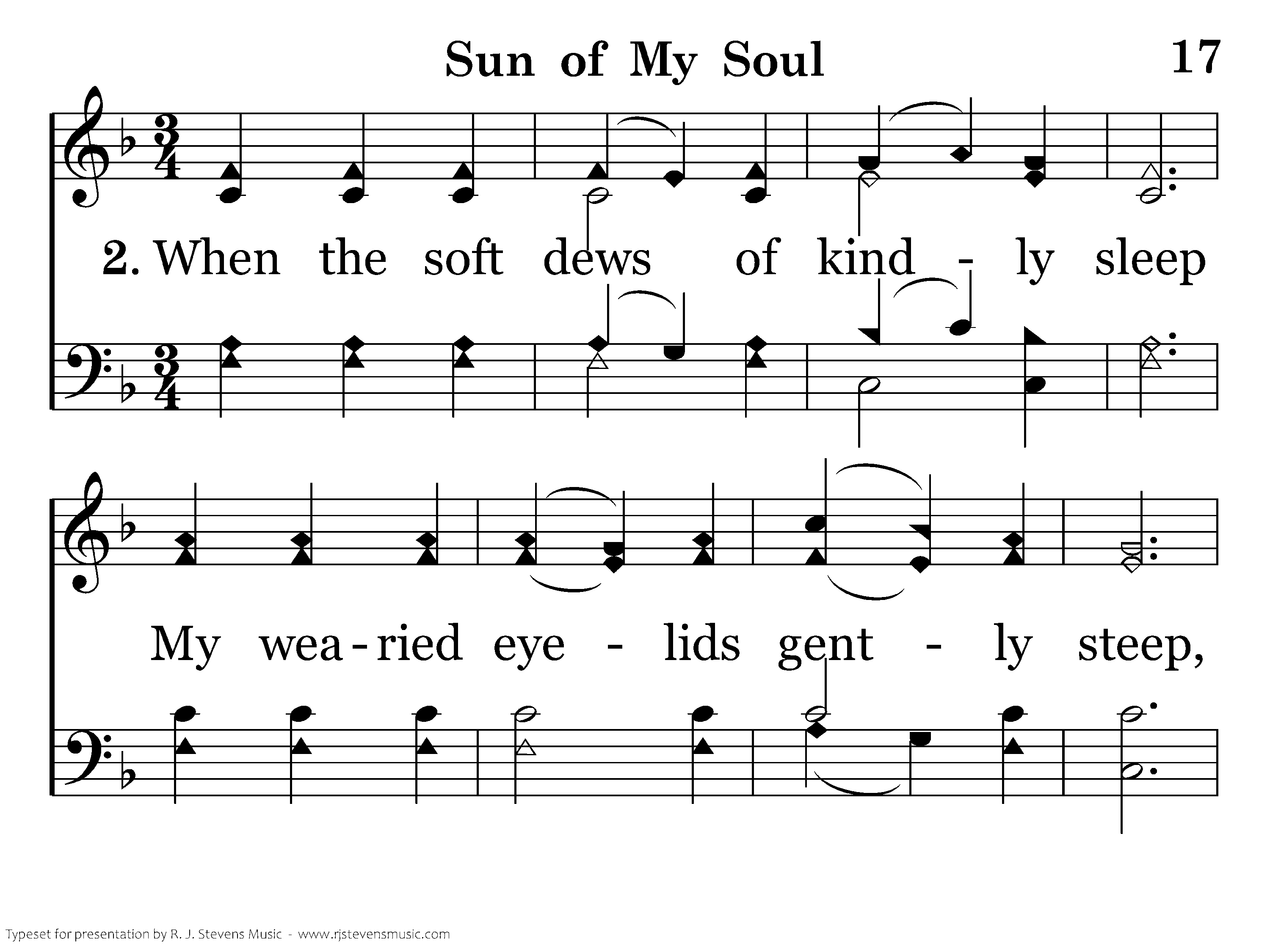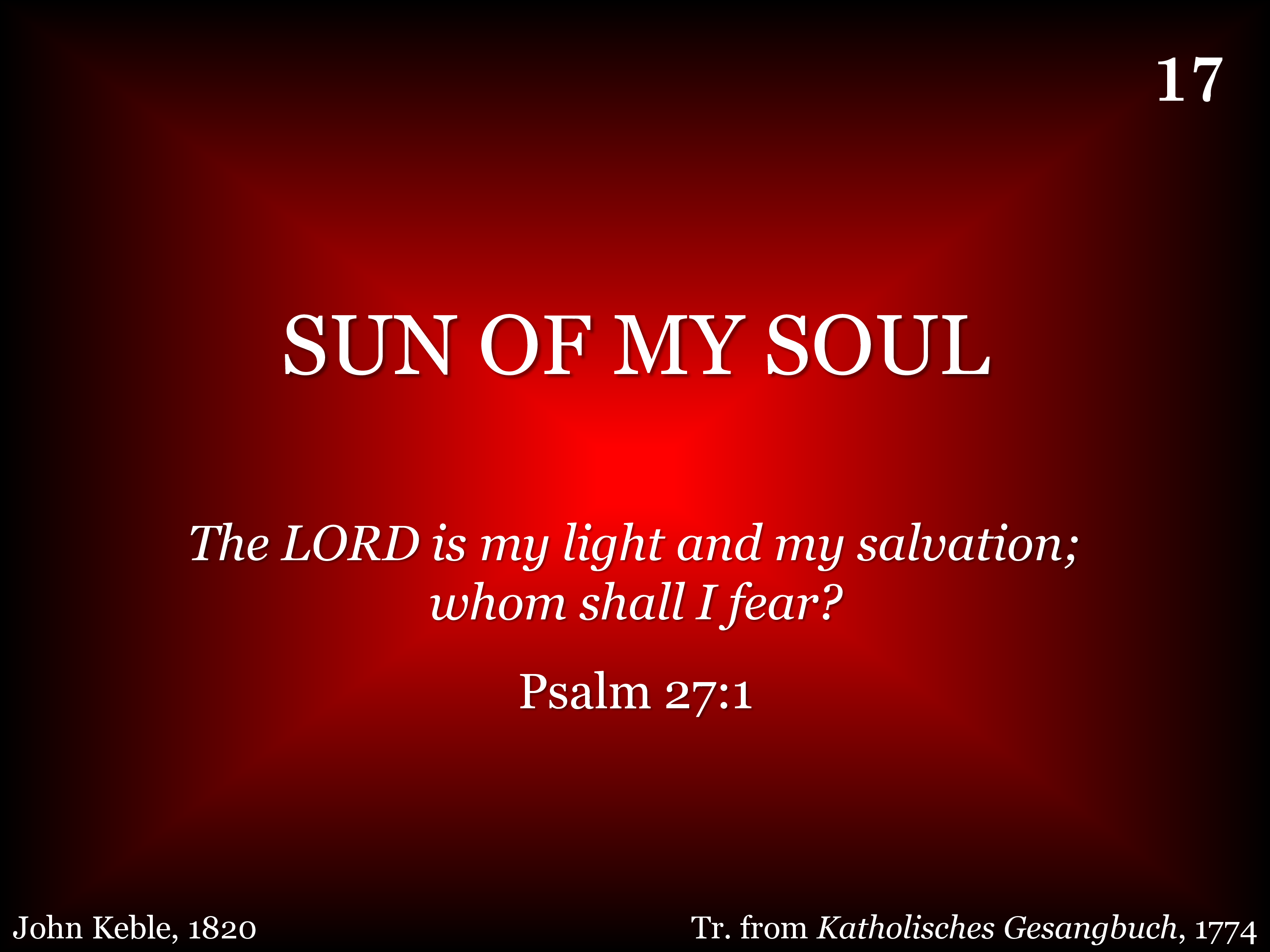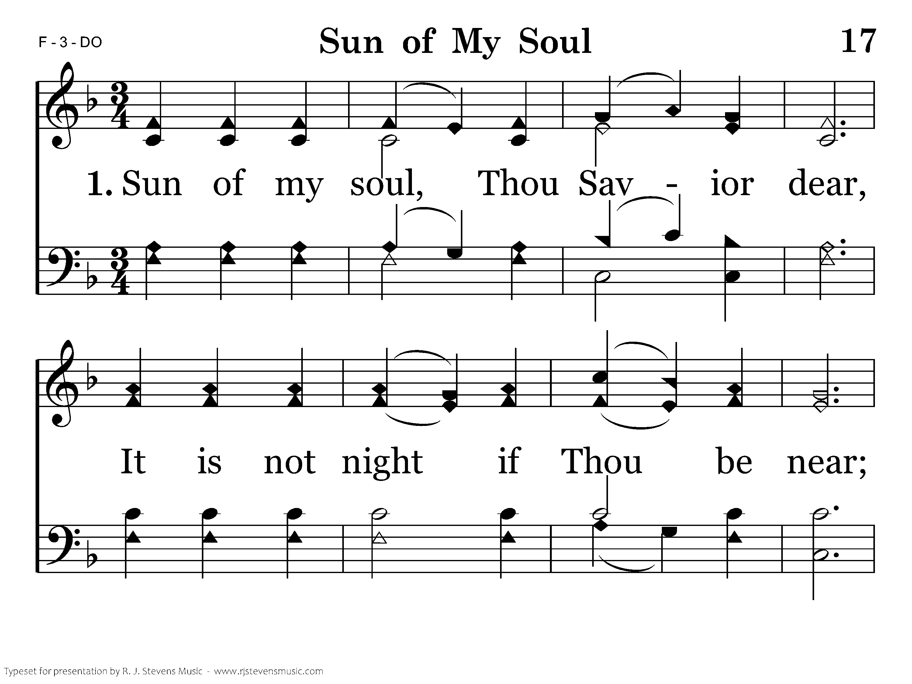 Sun of my soul, Thou Savior dear, It is not night if Thou be near; O may no earthborn cloud arise To hide Thee from Thy servant's eyes.