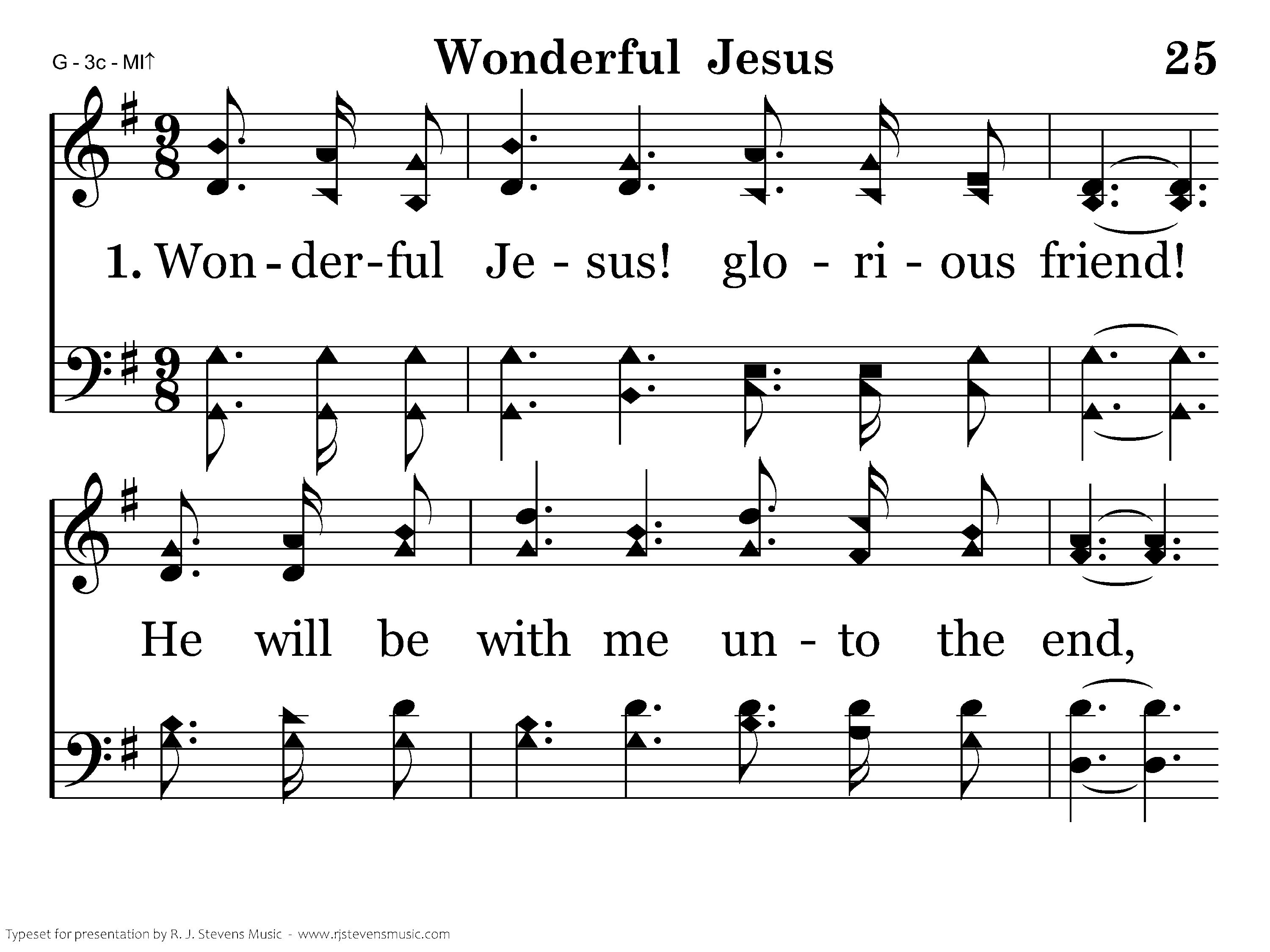 Wonderful Jesus! glorious friend! He will be with me unto the end, Cheering upholding, keeping me strong, Fearless and loyal, shielding from wrong.