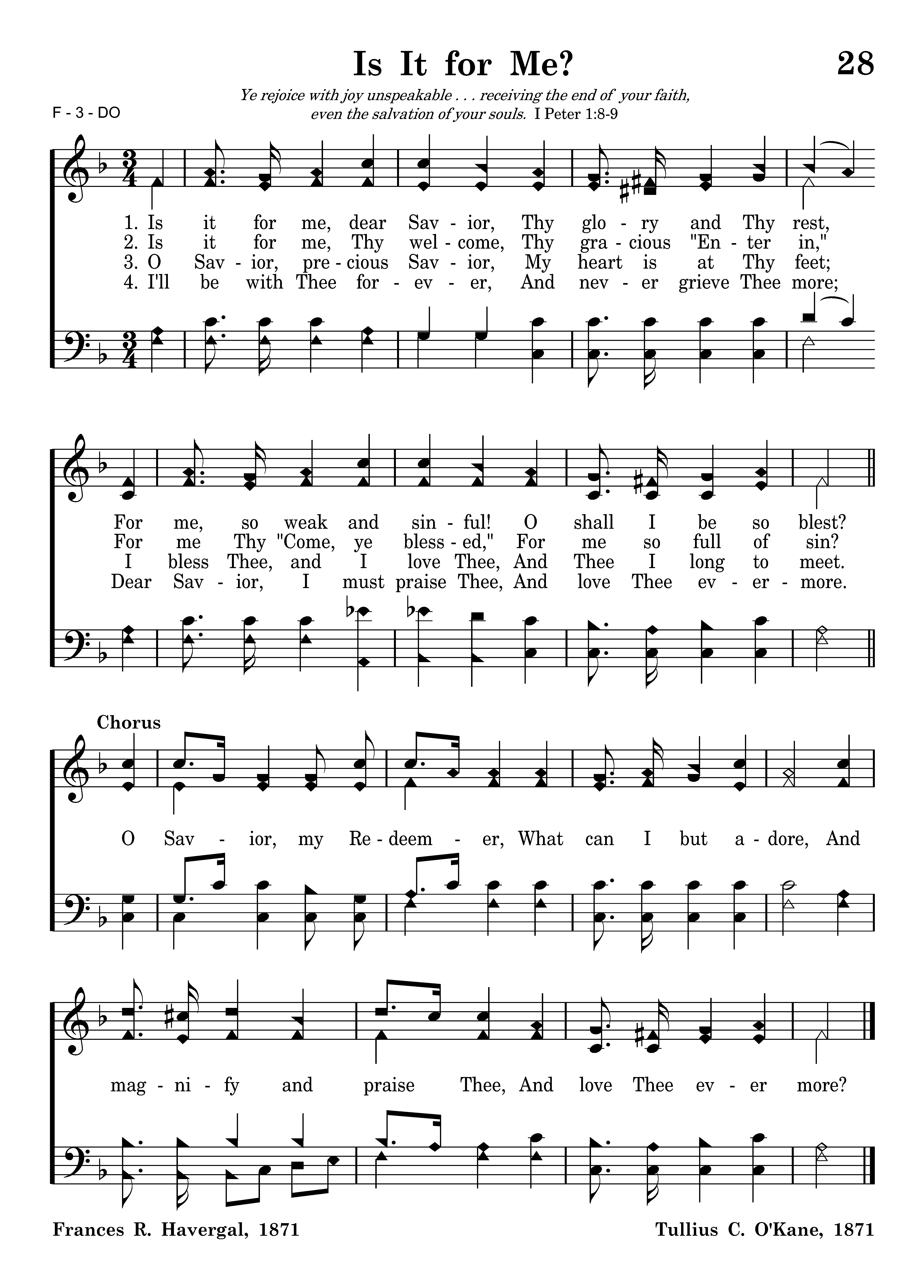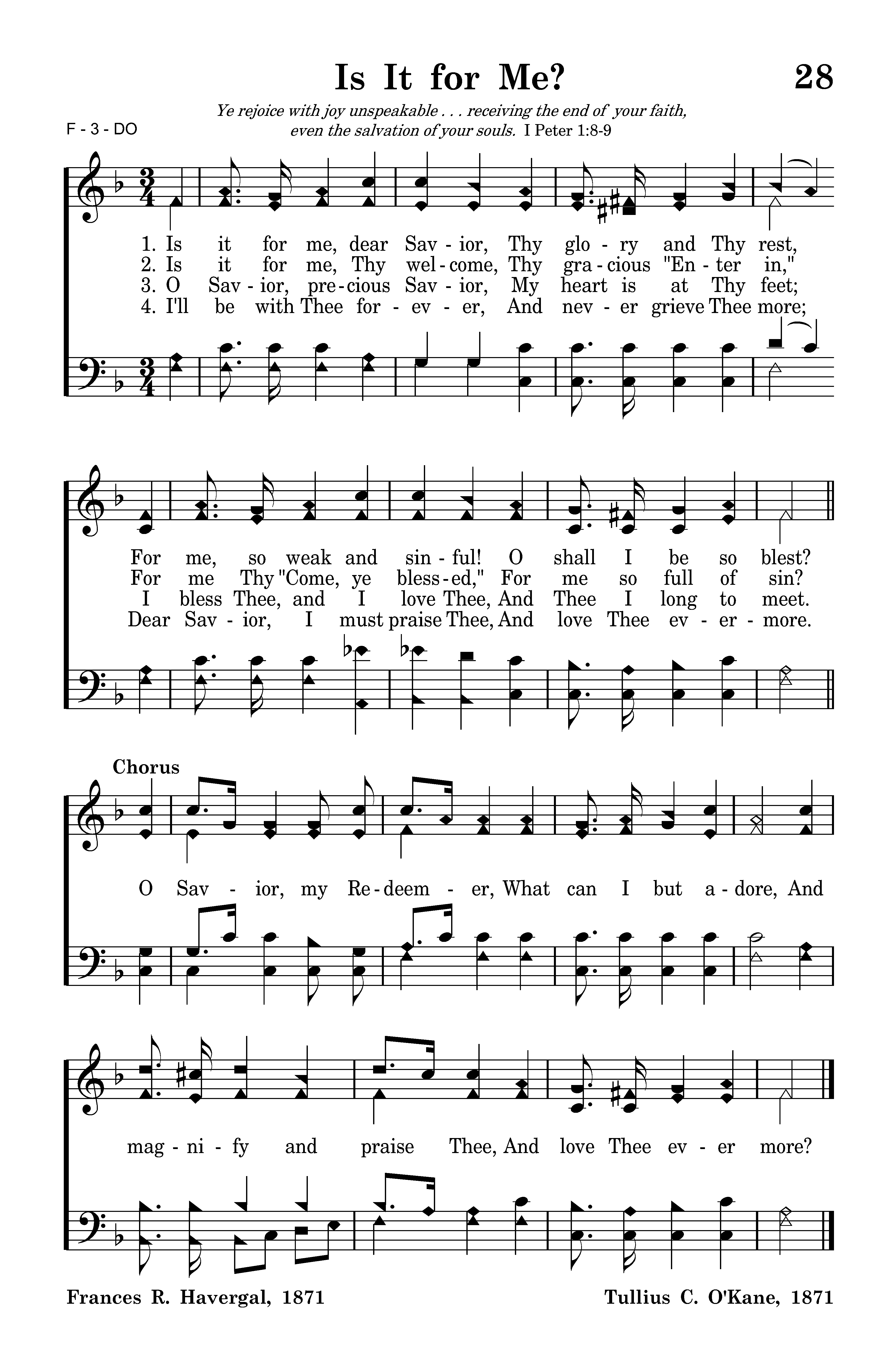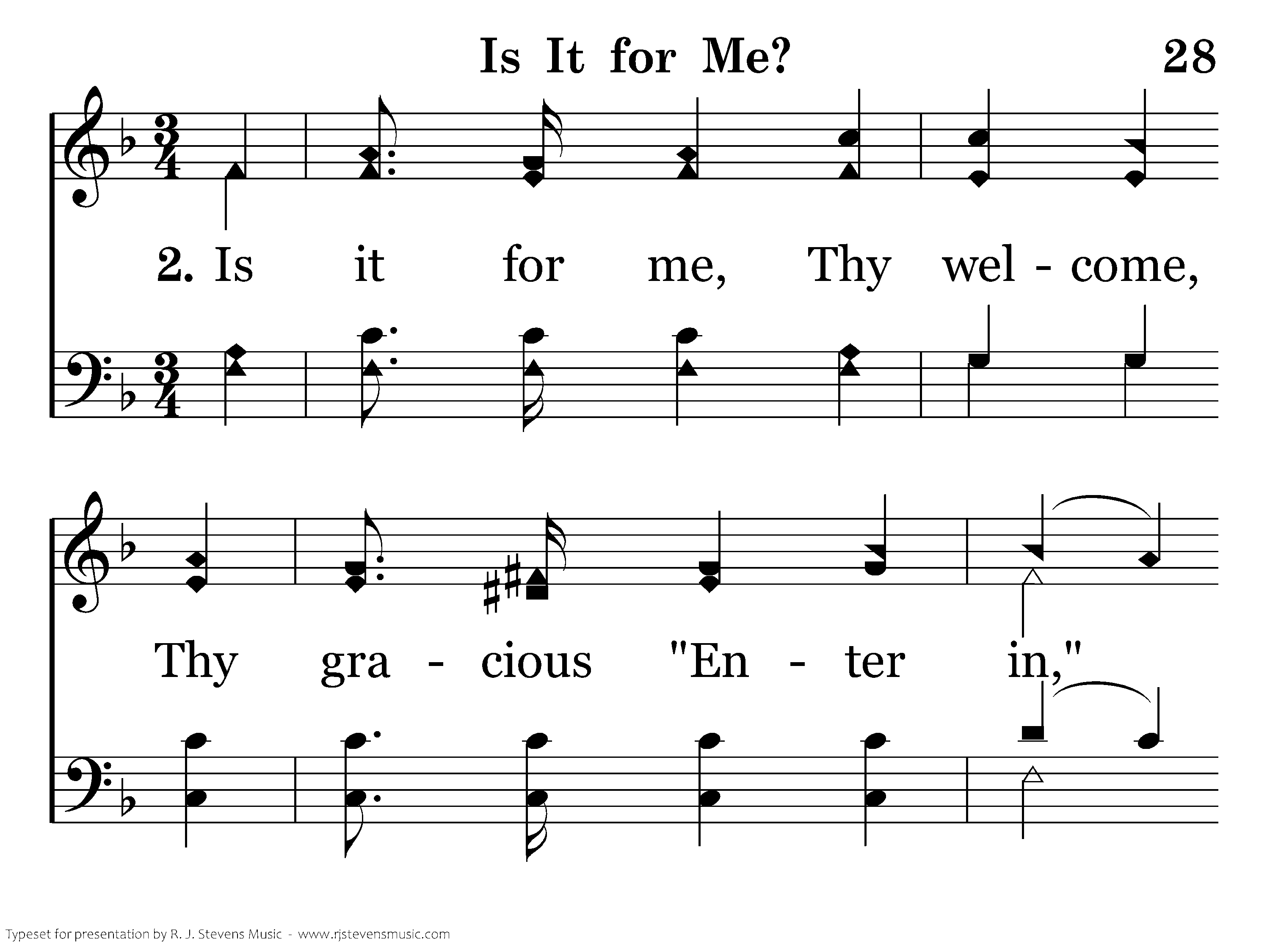 Is it for me, Thy welcome, Thy gracious "Enter in," For me Thy "Come, ye blessed," For me so full of sin?