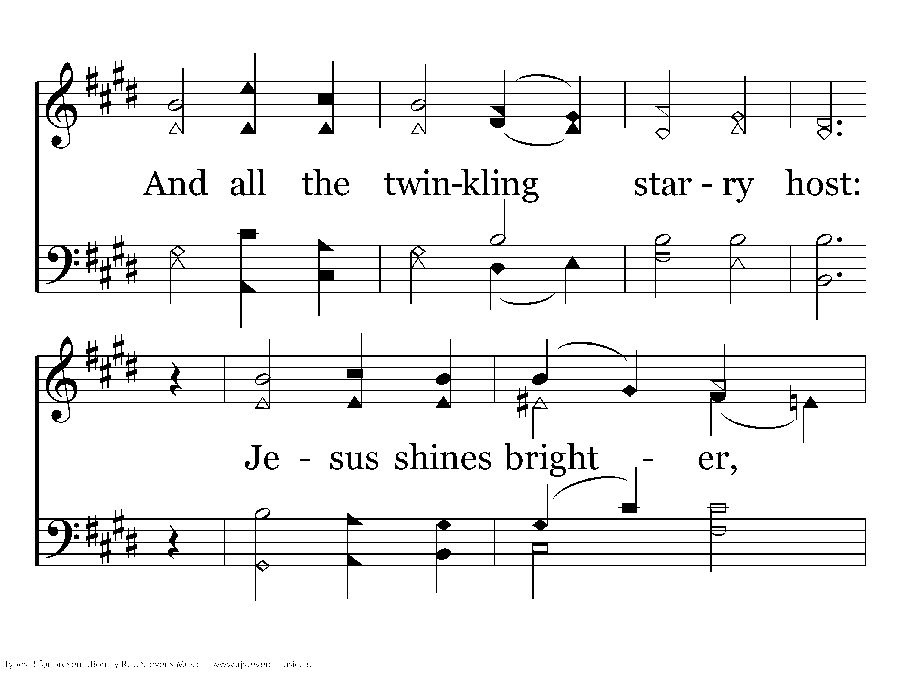 Fair is the sunshine, Fairer still the moonlight, And all the twinkling starry host: Jesus shines brighter, Jesus shines purer, Than all the angles heav'n can boast.