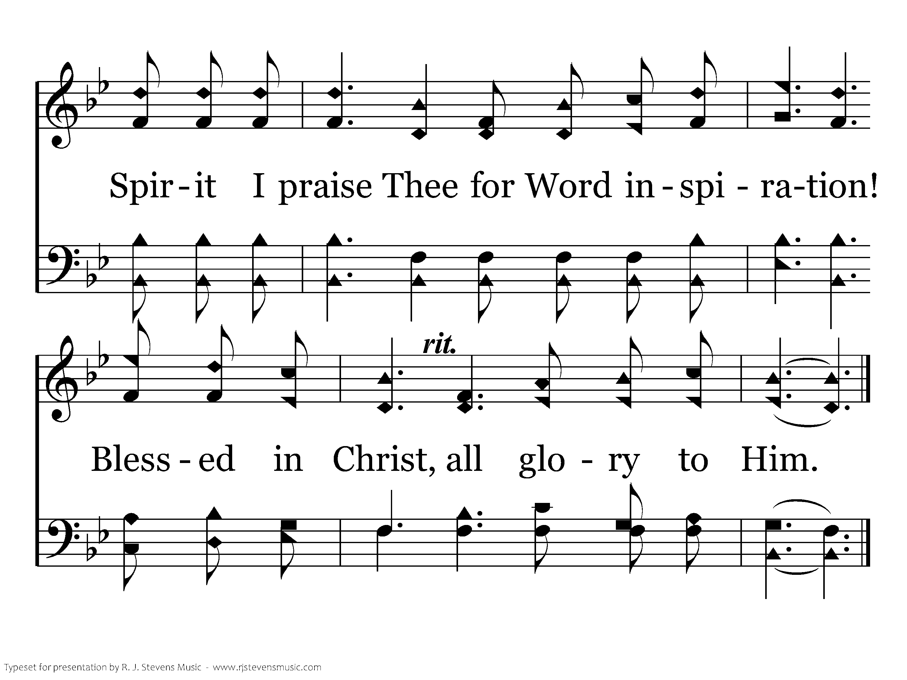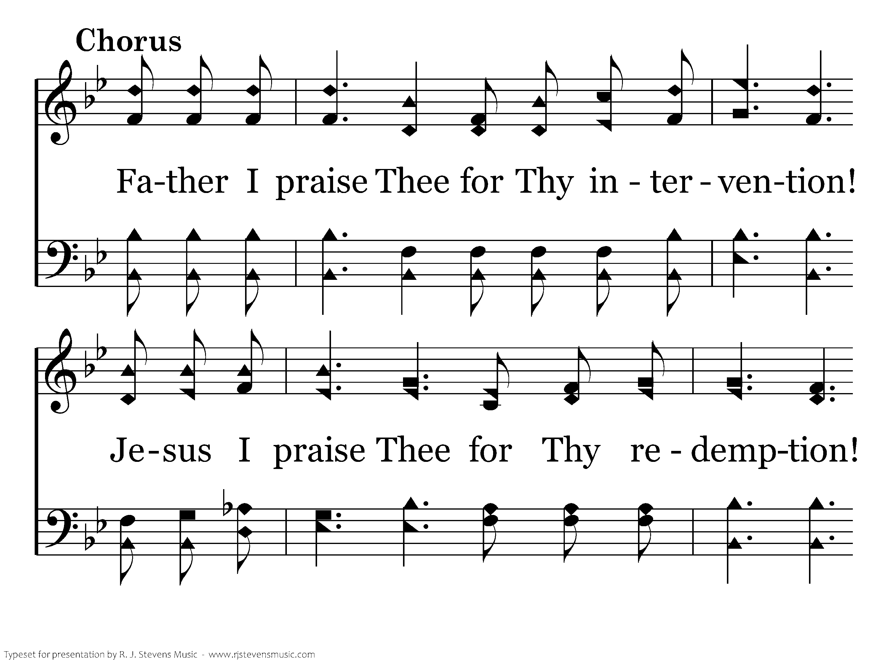 Father I praise Thee for Thy intervention! Jesus I praise Thee for Thy redemption! Spirit I praise Thee for Word Inspiration! Blessed in Christ, all glory to Him.