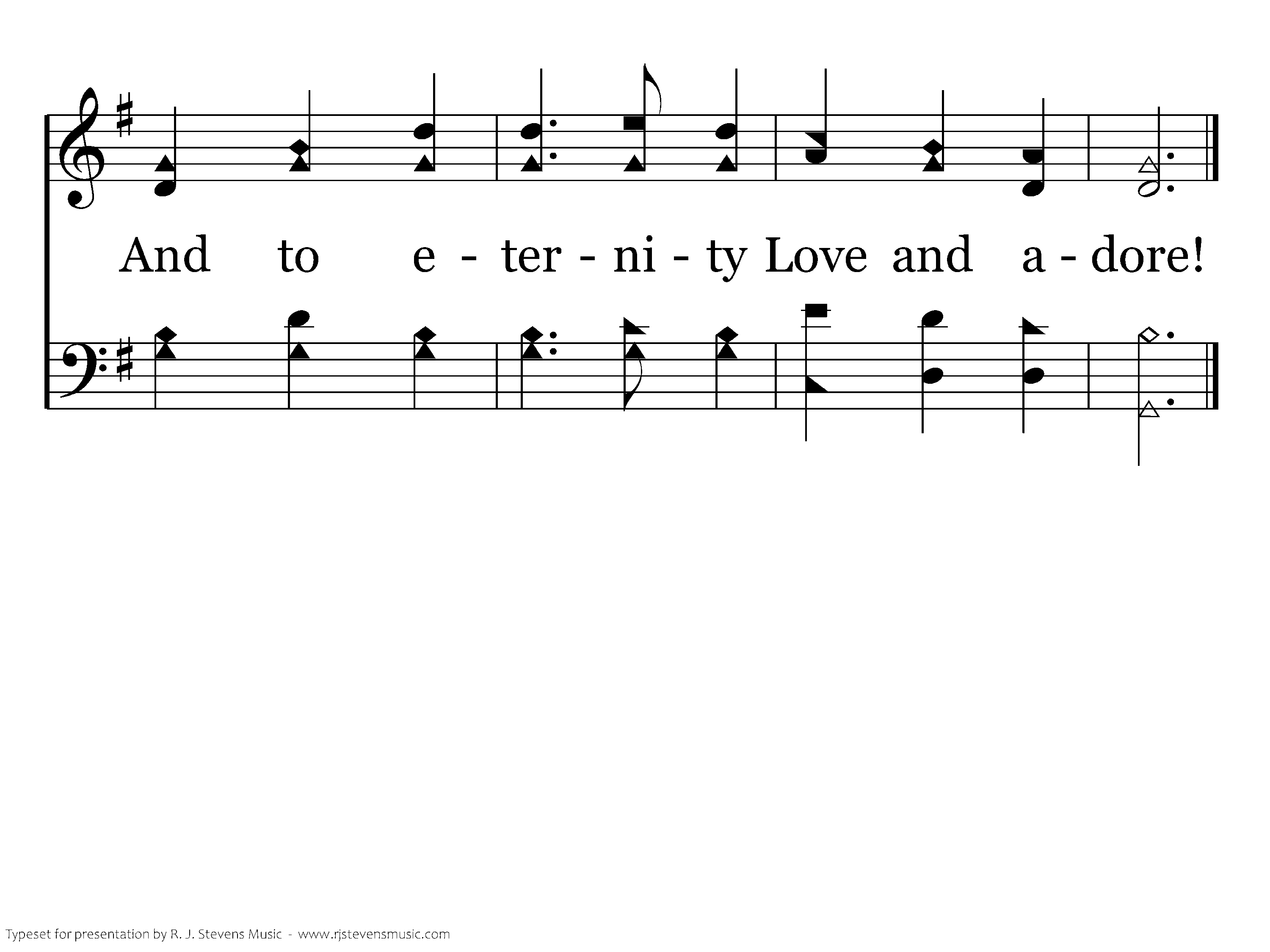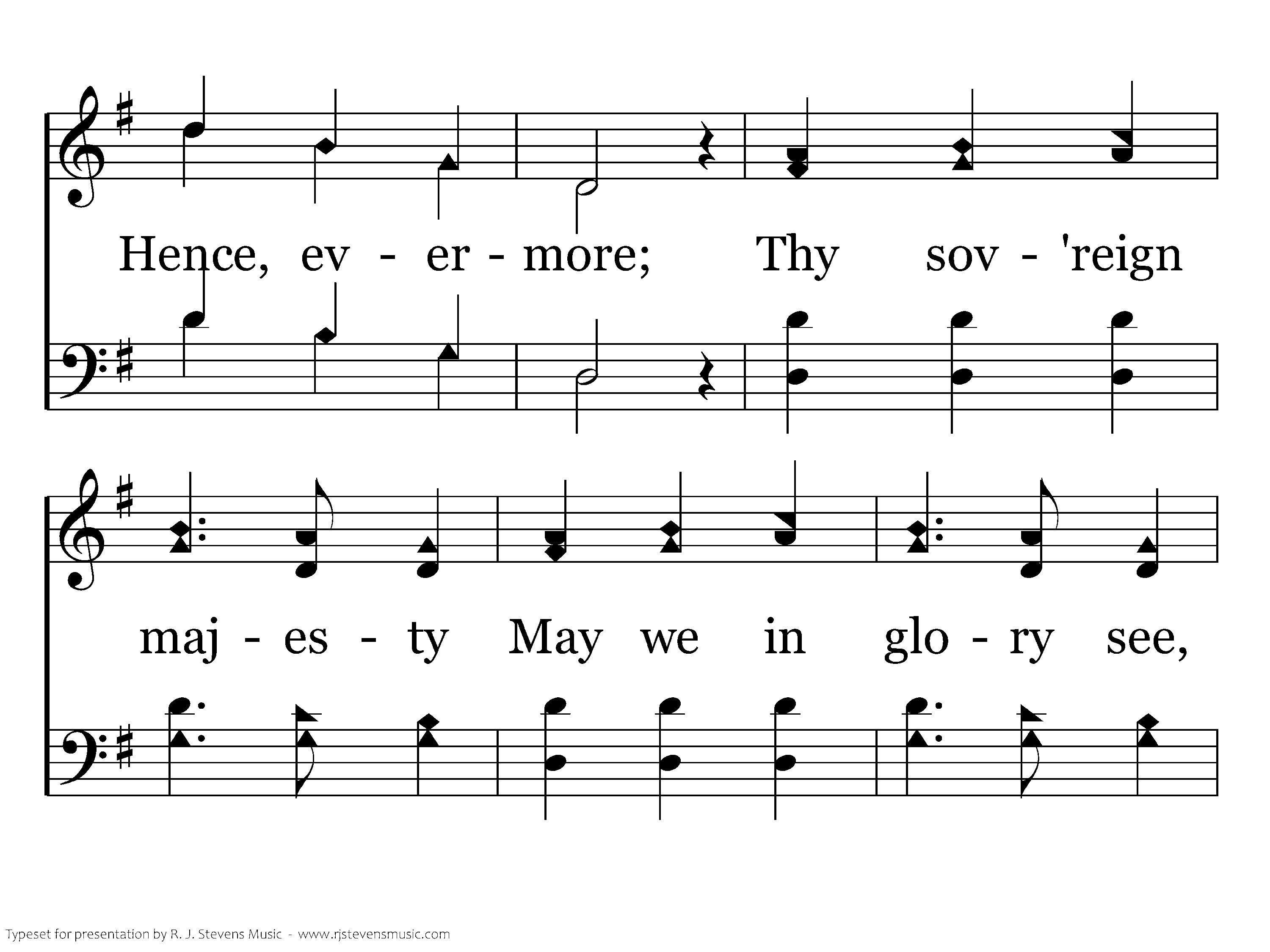 O Lord, our God, to Thee The highest praises be, Hence, evermore; Thy sov'reign majesty May we in glory see, And to eternity Love and adore!