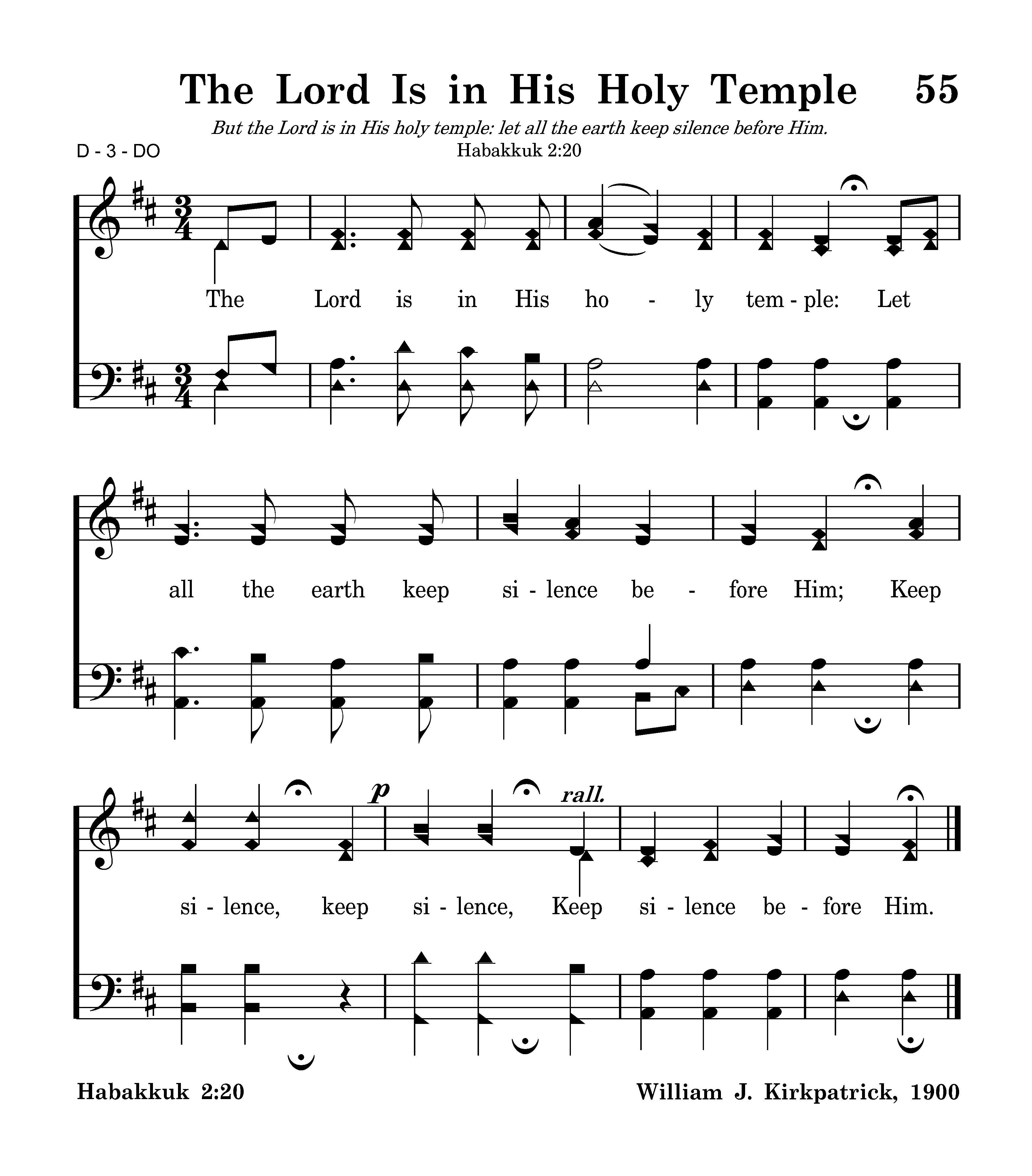 The Lord is in His holy temple: Let all the earth keep silence before Him; Keep silence, keep silence Keep silence before Him.