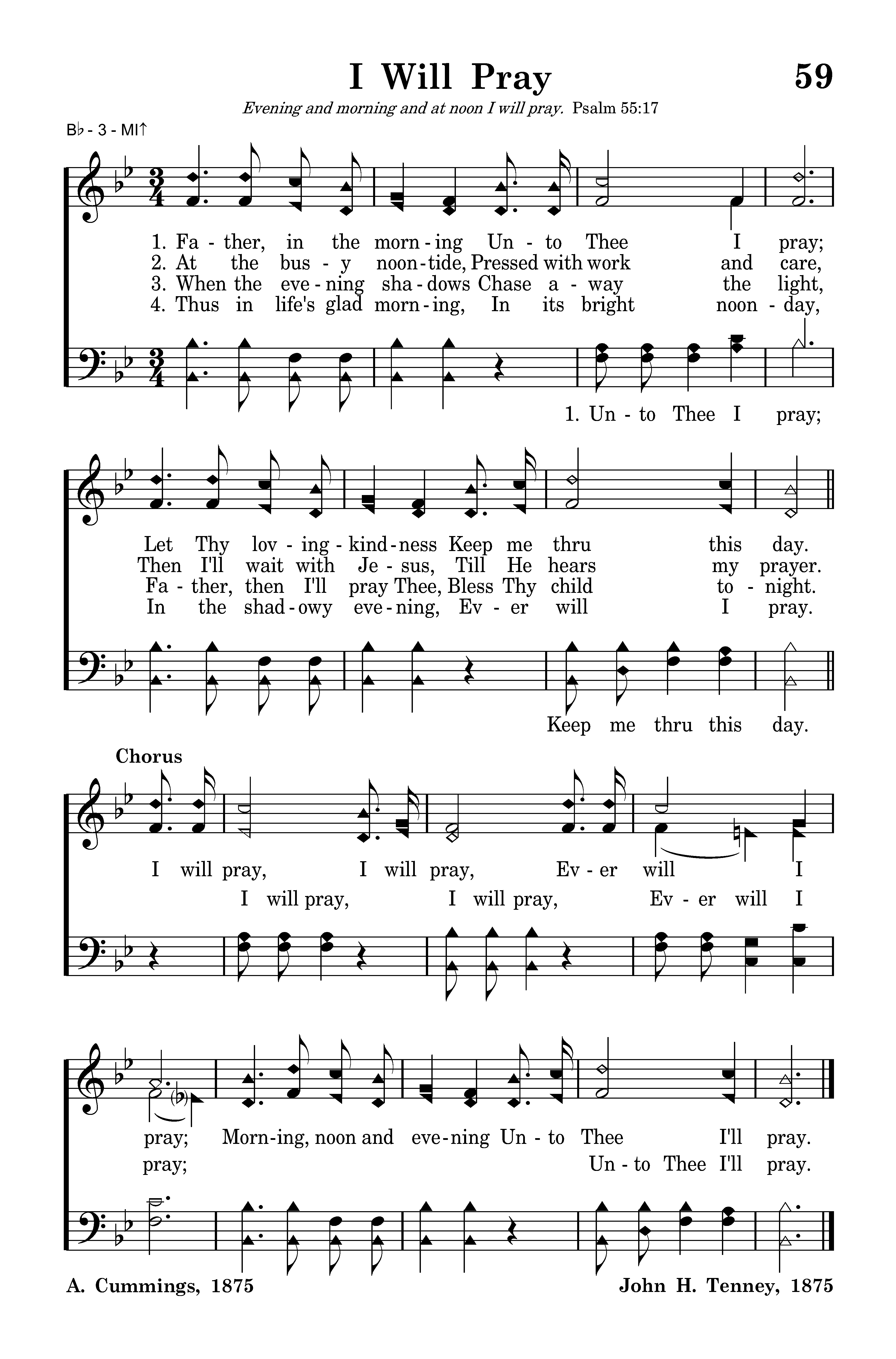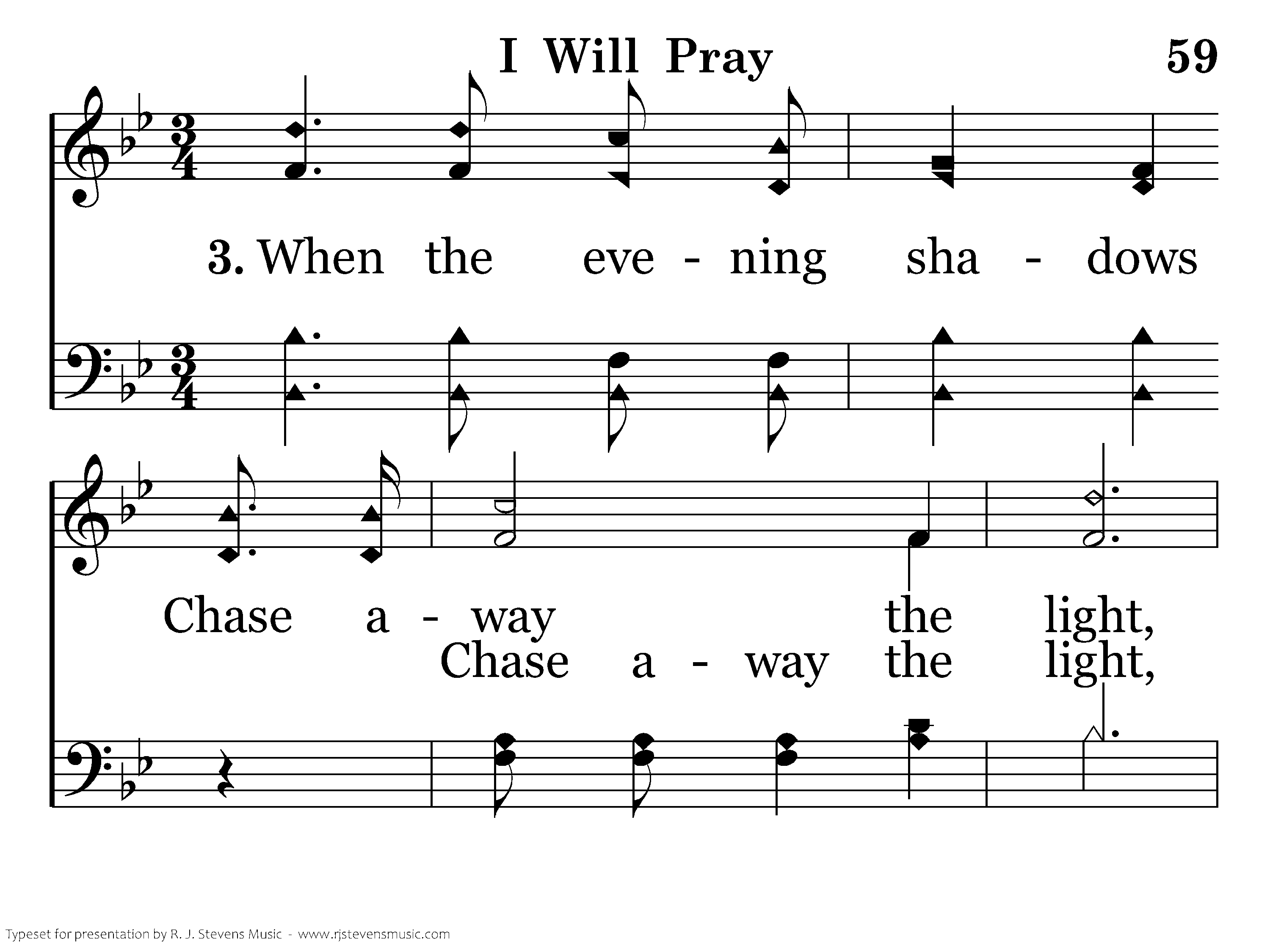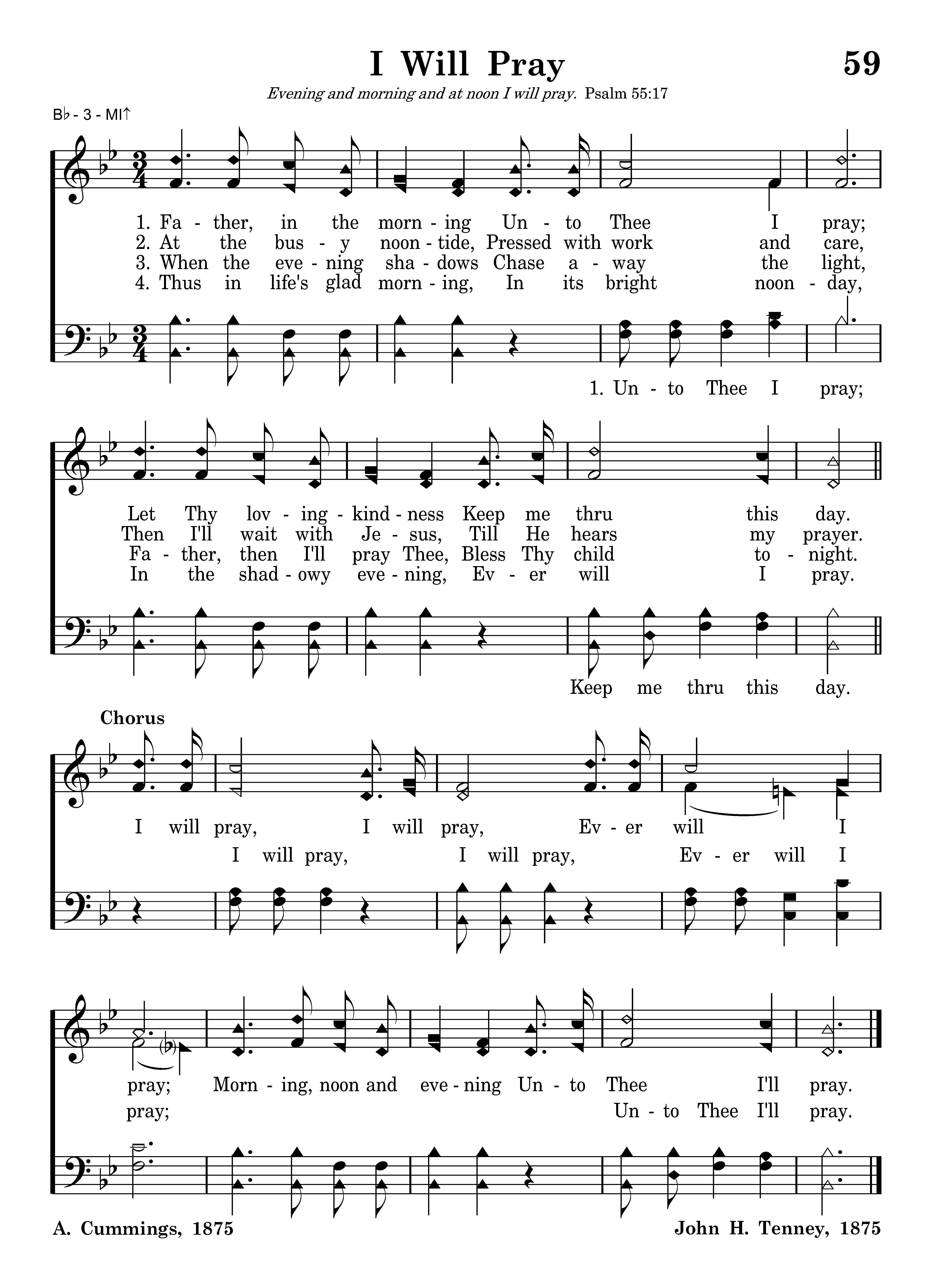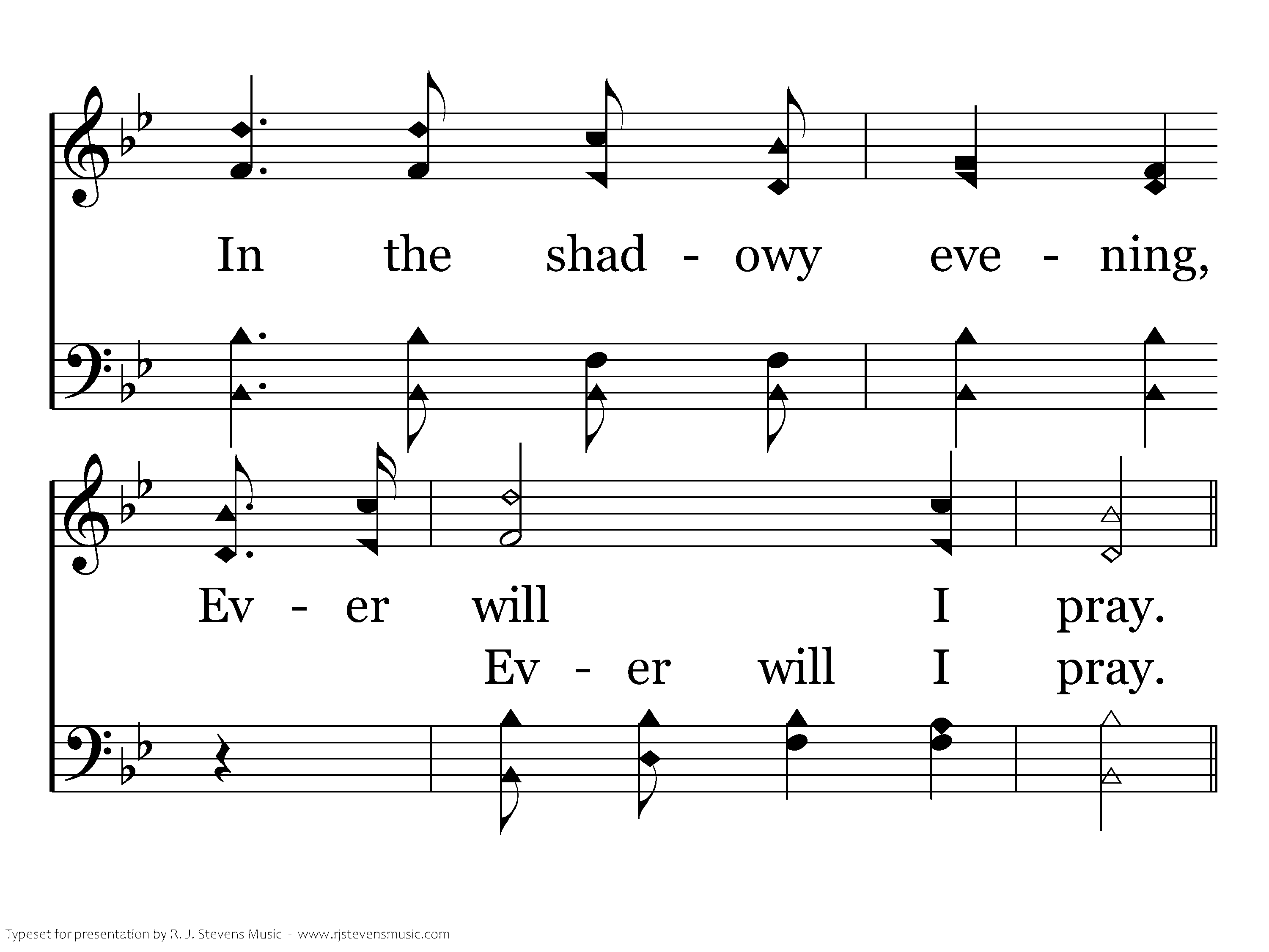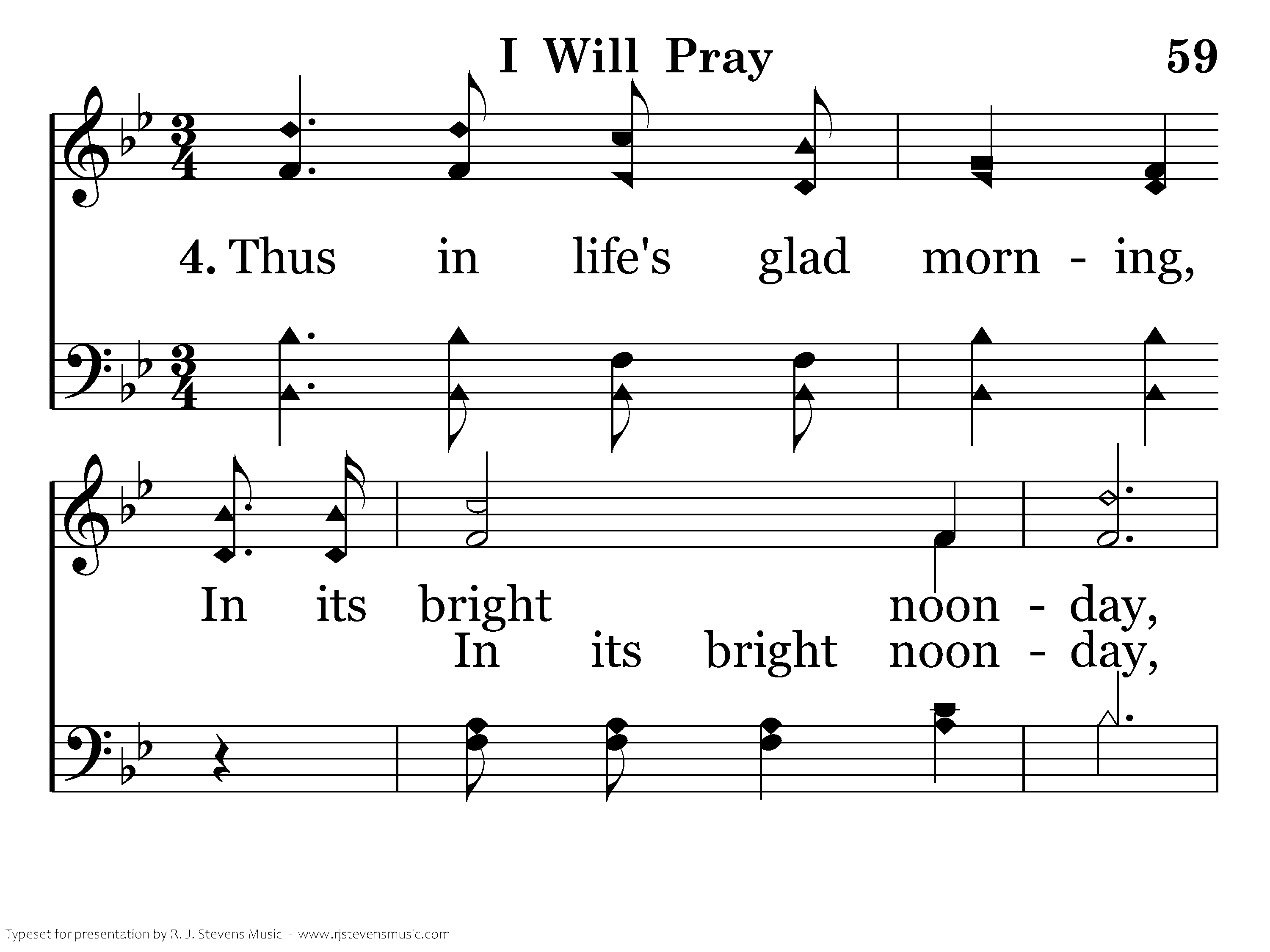 Thus in life's glad morning, In its bright noonday, In the shadowy evening, Ever will I pray.