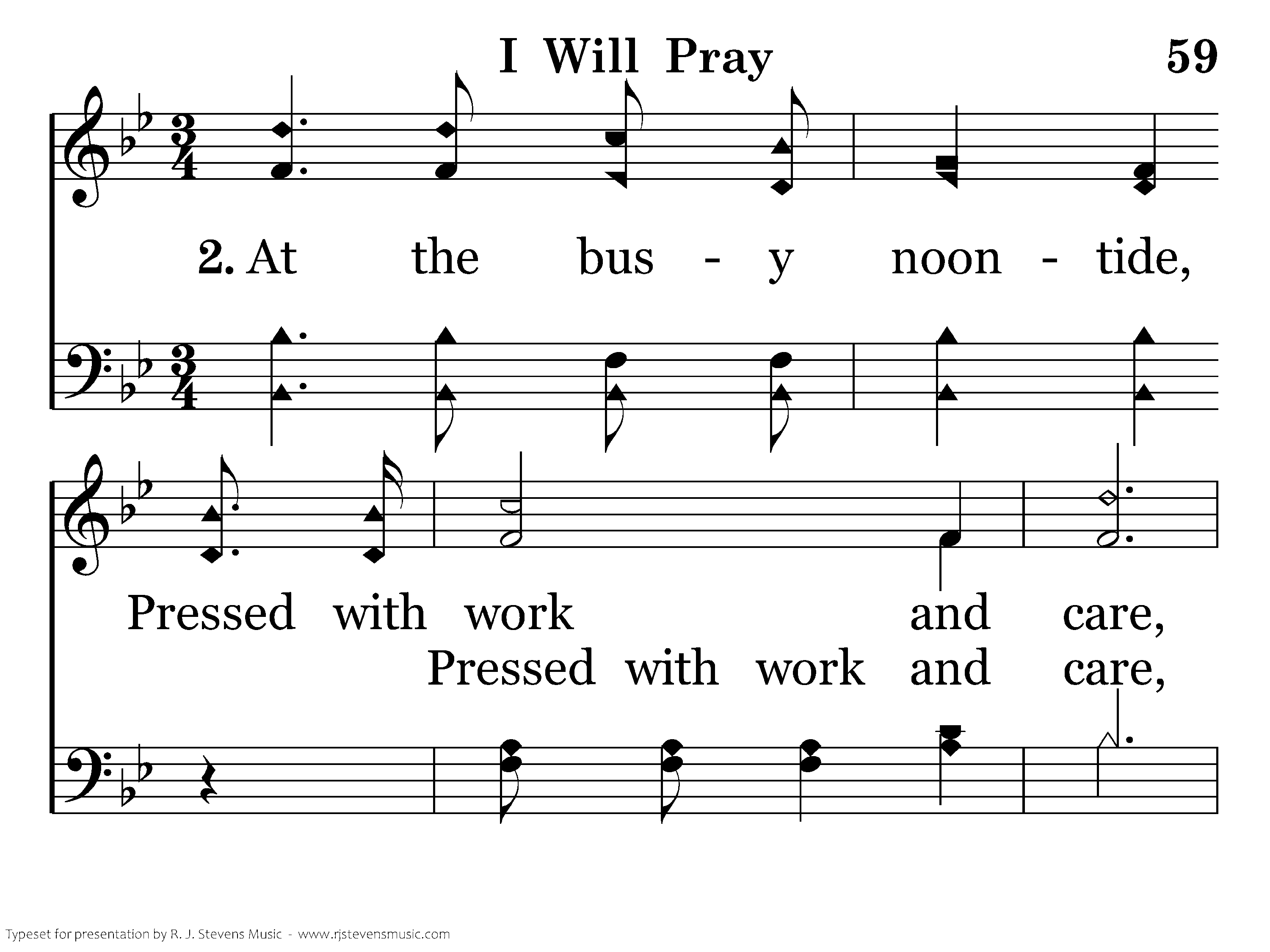 At the busy noontide, Pressed with work and care, Then I'll wait with Jesus, Till He hears my prayer.