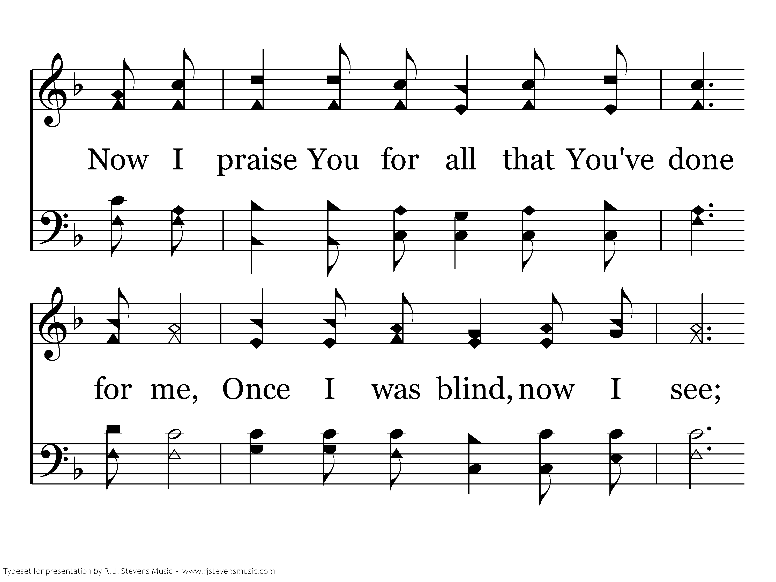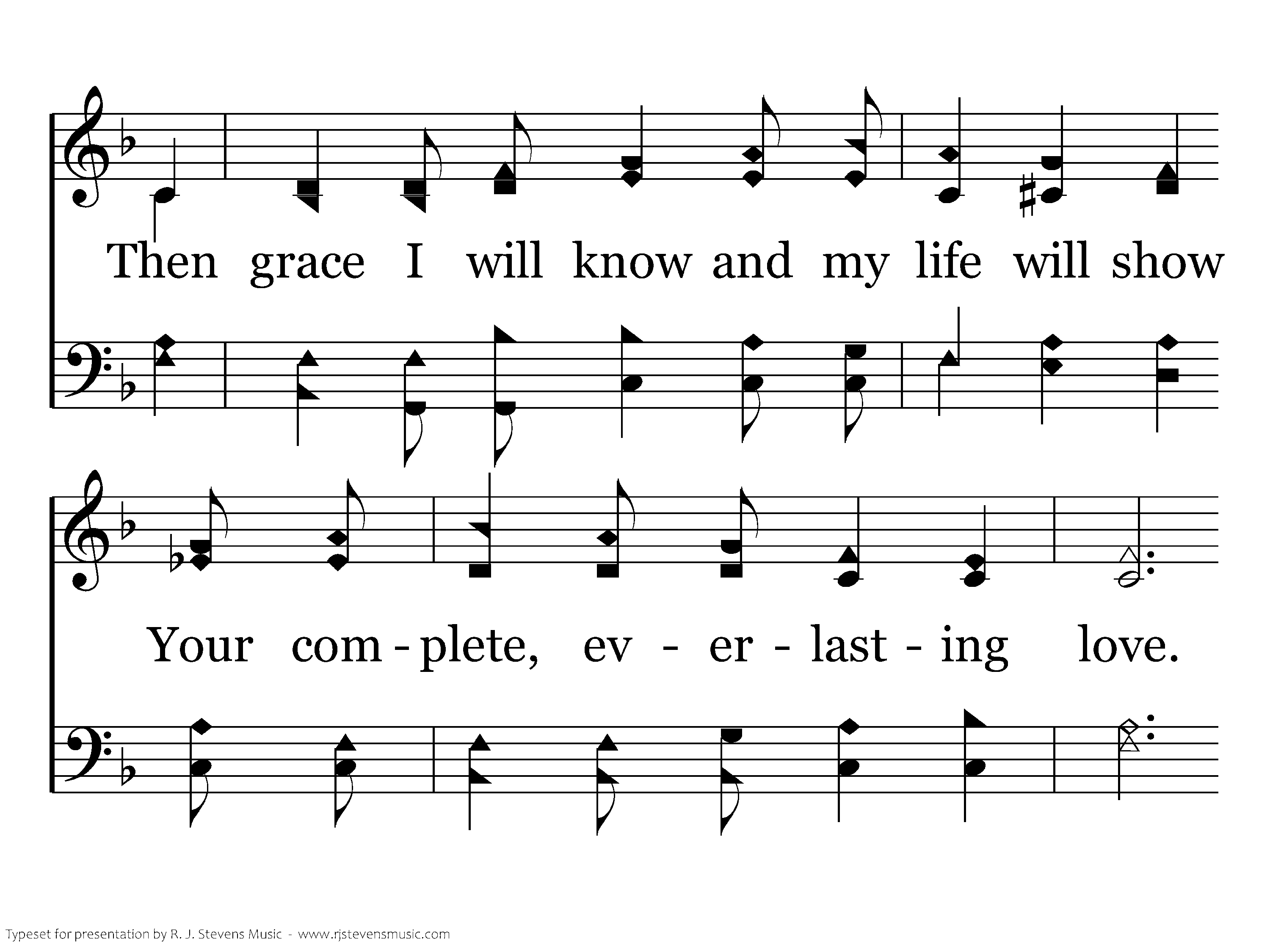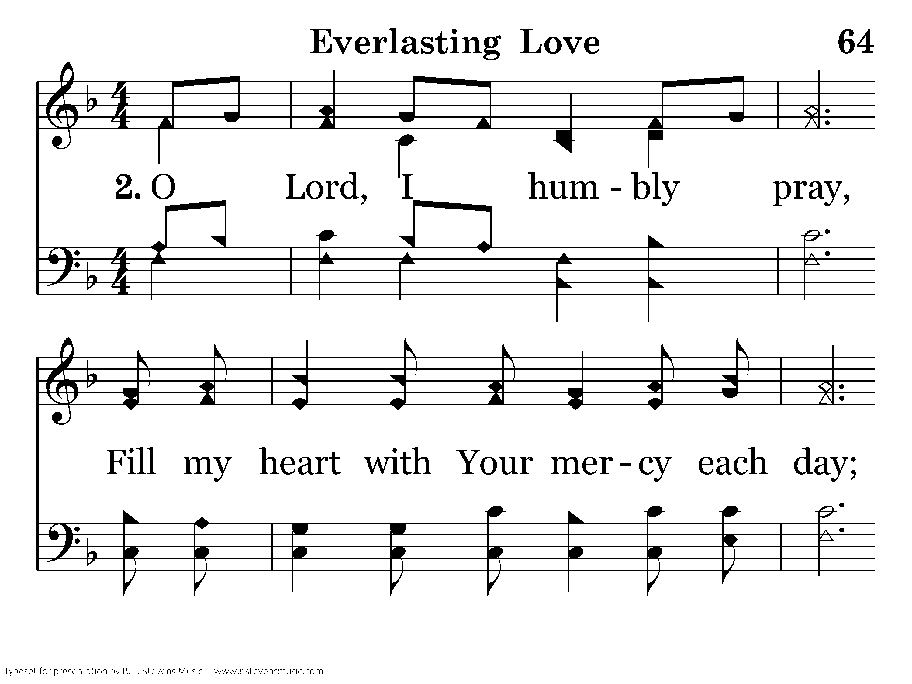 O Lord, I humbly pray, Fill my heart with Your mercy each day; Then grace I will know and my life will show Your complete, everlasting love. Now I praise You for all that You've done for me, Once I was blind, now I see; You emptied Yourself, left Your throne above, And brought me everlasting love; You are love, everlasting love.