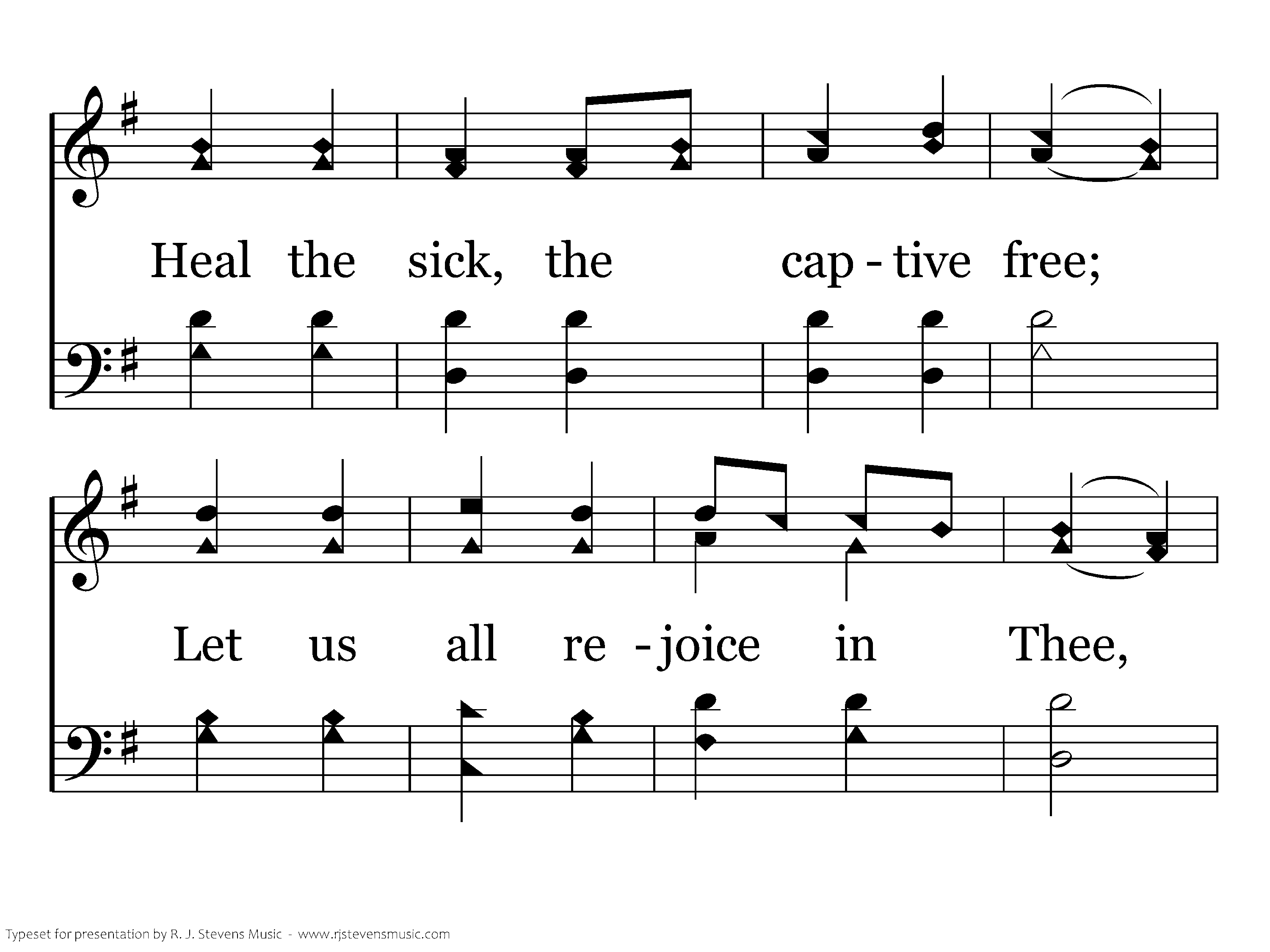Grant that all may seek and find Thee a God supremely kind; Heal the sick, the captive free; Let us all rejoice in Thee, Let us all rejoice in Thee.