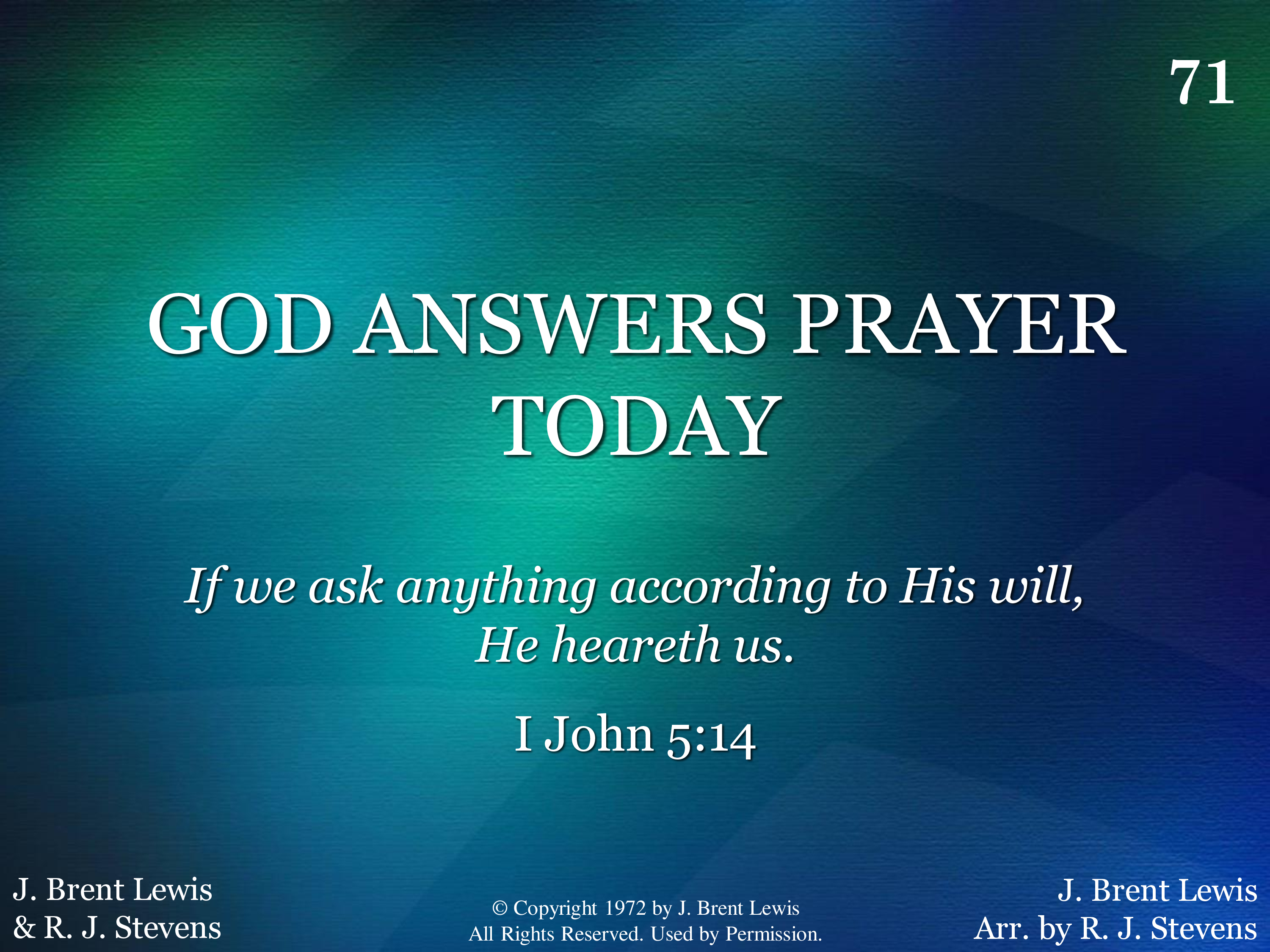 - Copyright © 1972 by J. Brent Lewis. All Rights Reserved. Used by Permission.