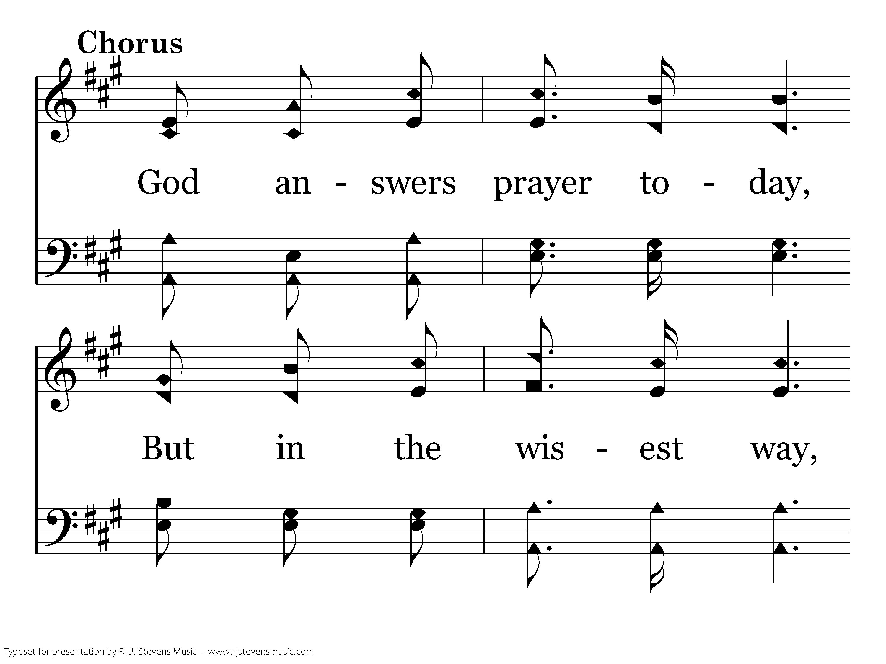 God answers prayer today, But in the wisest way, He knows what's best for us, from day to day.