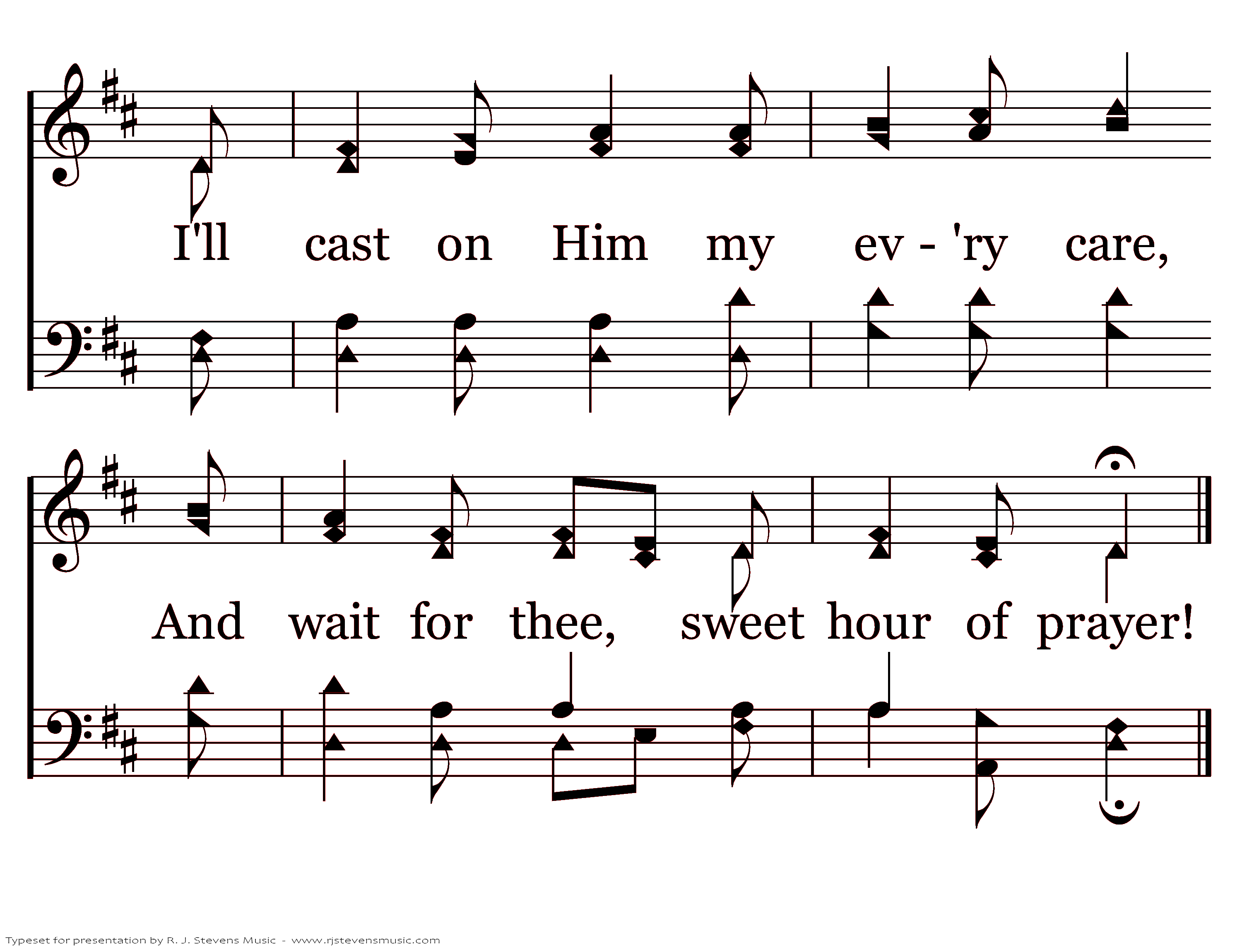 Key Value Title Sweet Hour of Prayer Number 073 Hymnal Hymns For Worship (Revised) Key Signature D Starting Pitch DO