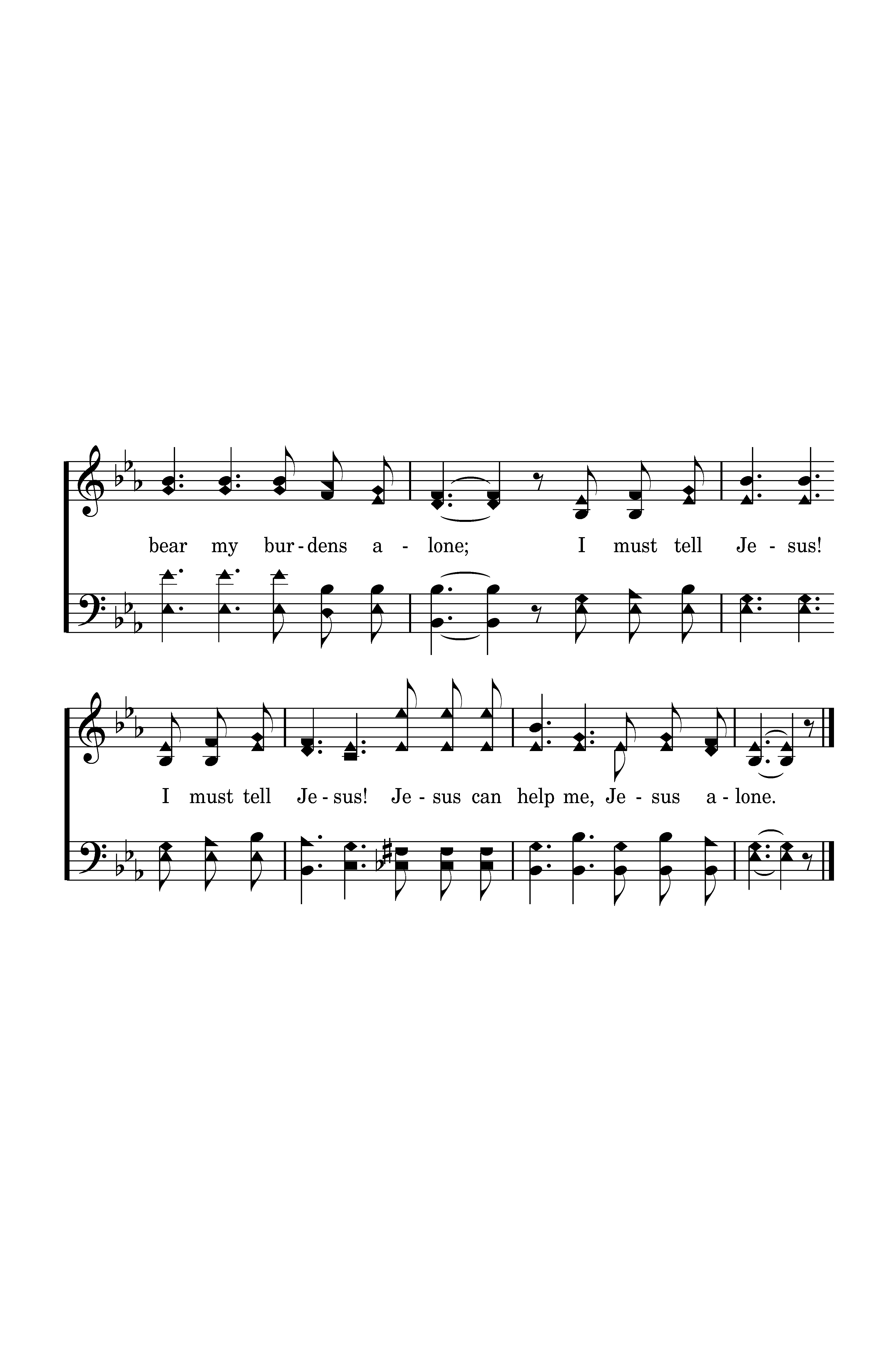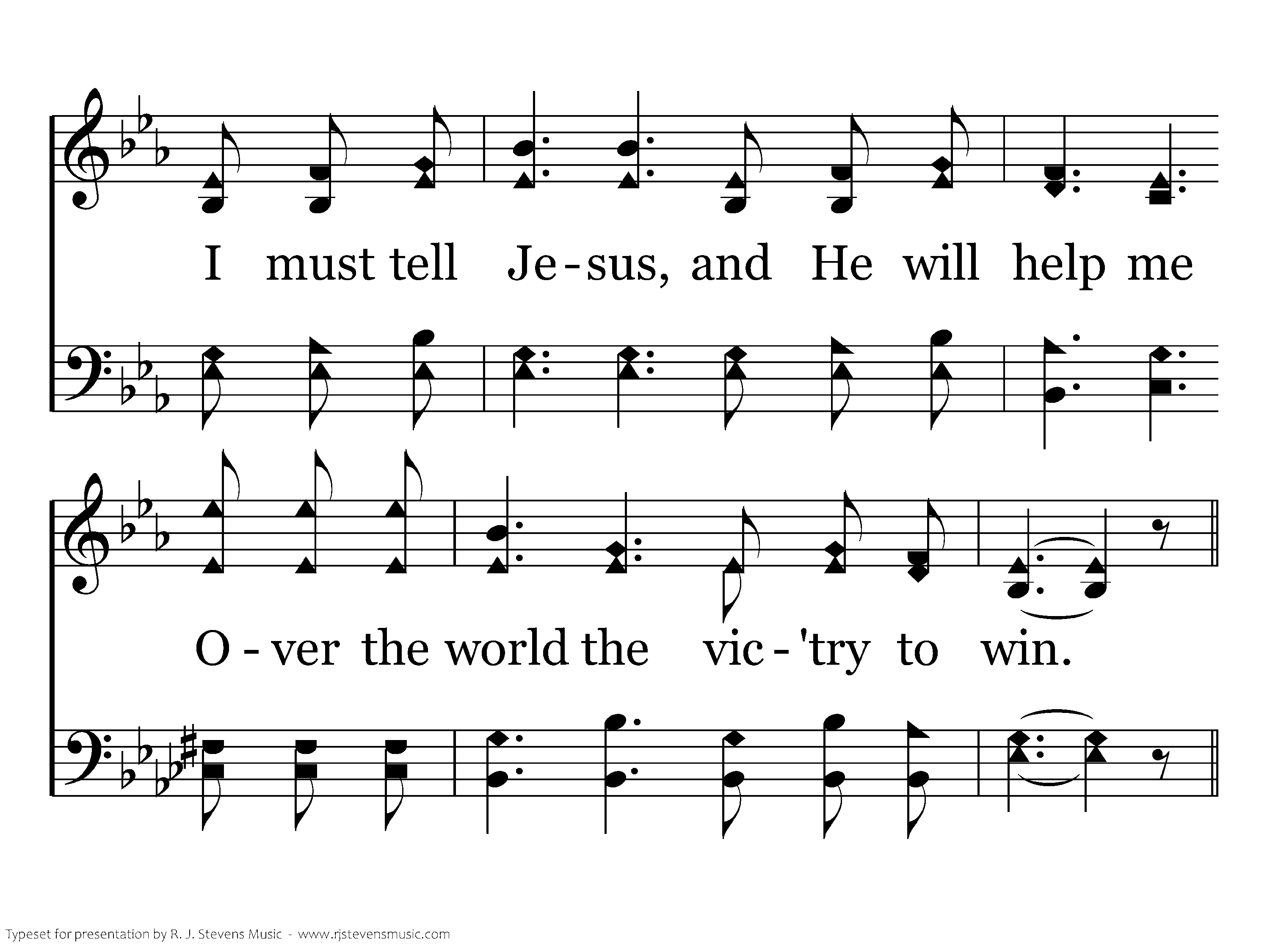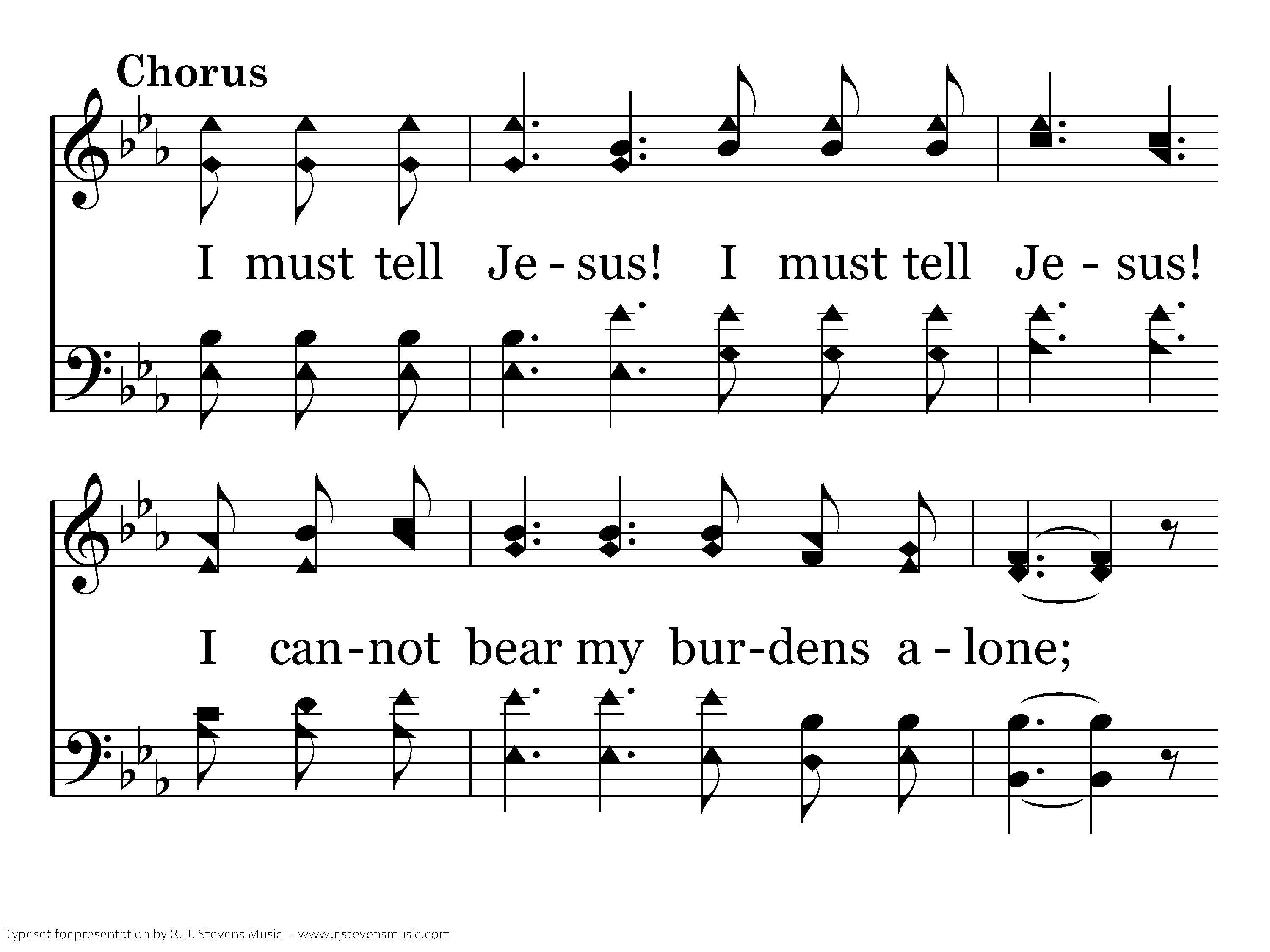 I must tell Jesus! I must tell Jesus! I cannot bear my burdens alone; I must tell Jesus! I must tell Jesus! Jesus can help me, Jesus alone.