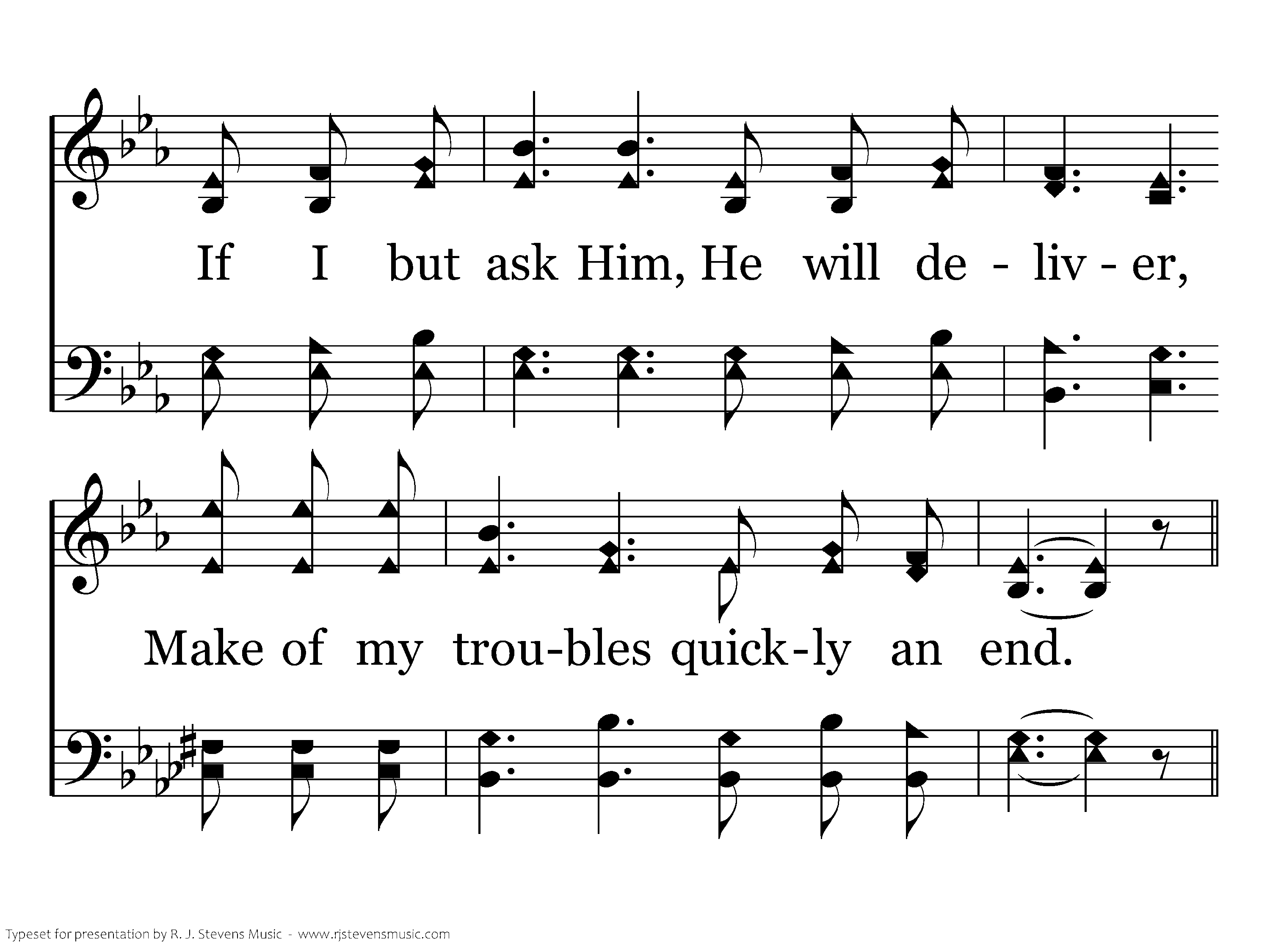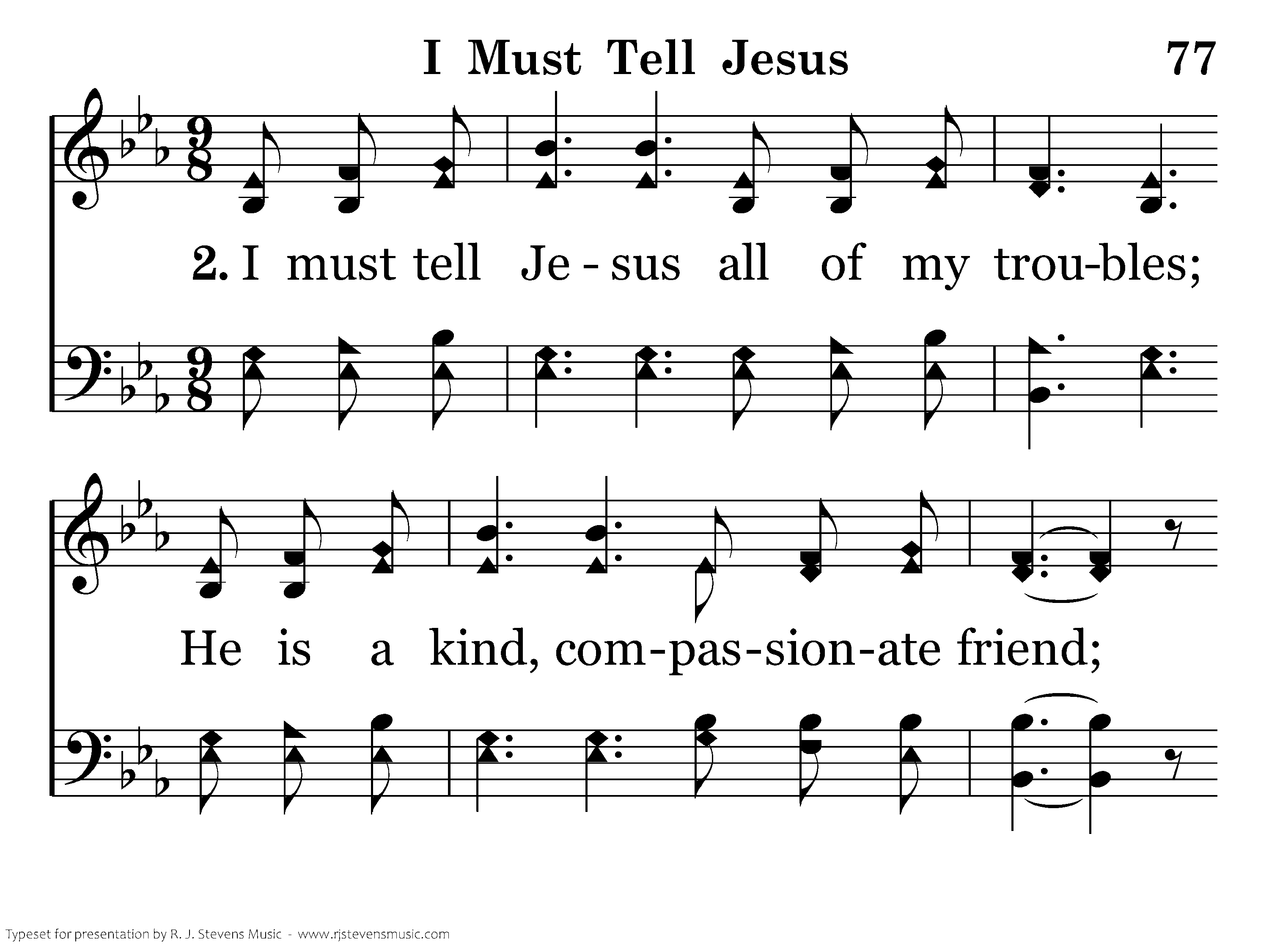 I must tell Jesus all of my troubles; He is a kind, compassionate friend; If I but ask Him, He will deliver, Make of my troubles quickly an end.