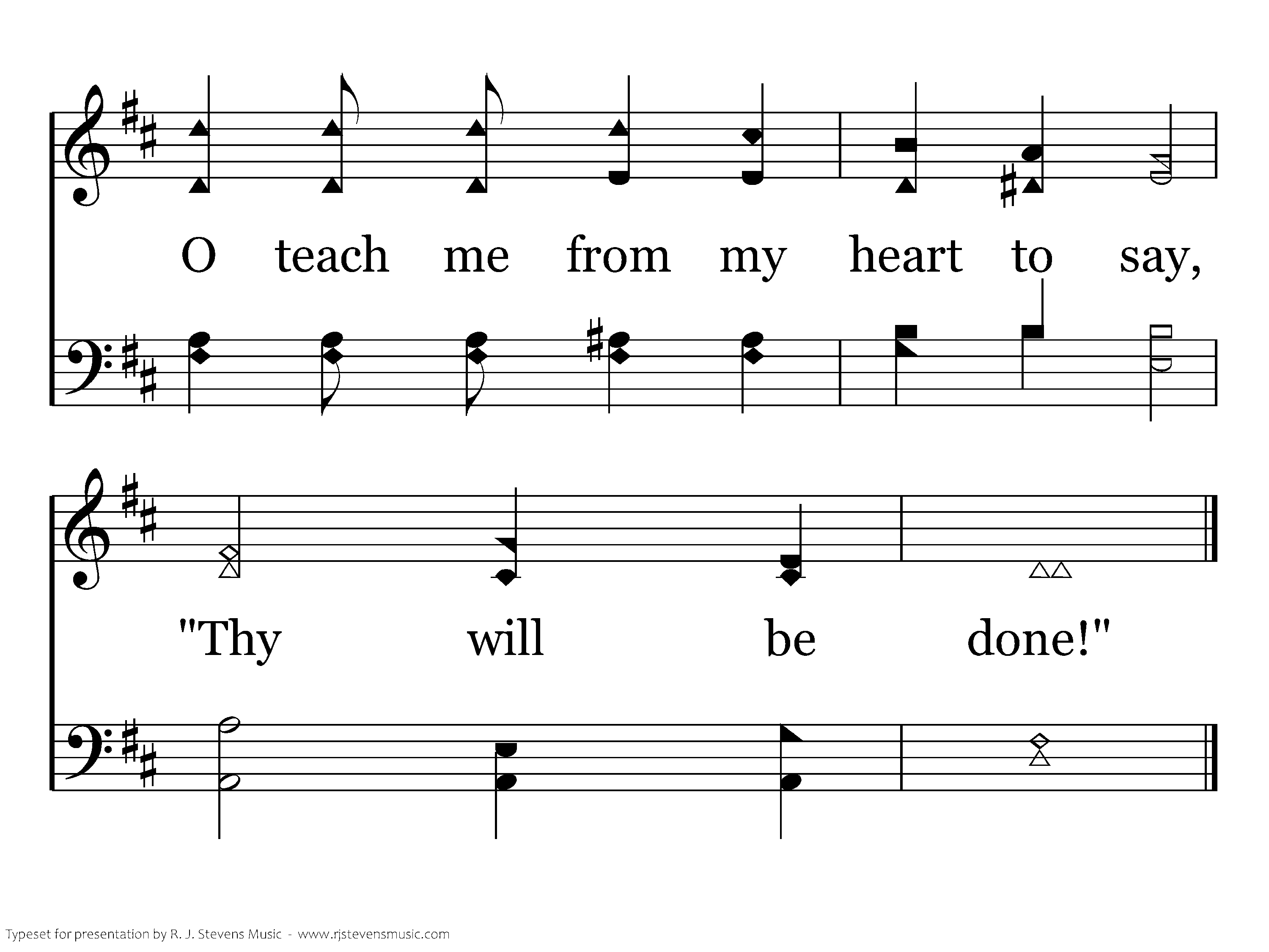 My God, my Father, tho' I stray Far from my home, on life's rough way, O teach me from my heart to say, "Thy will be done!"
