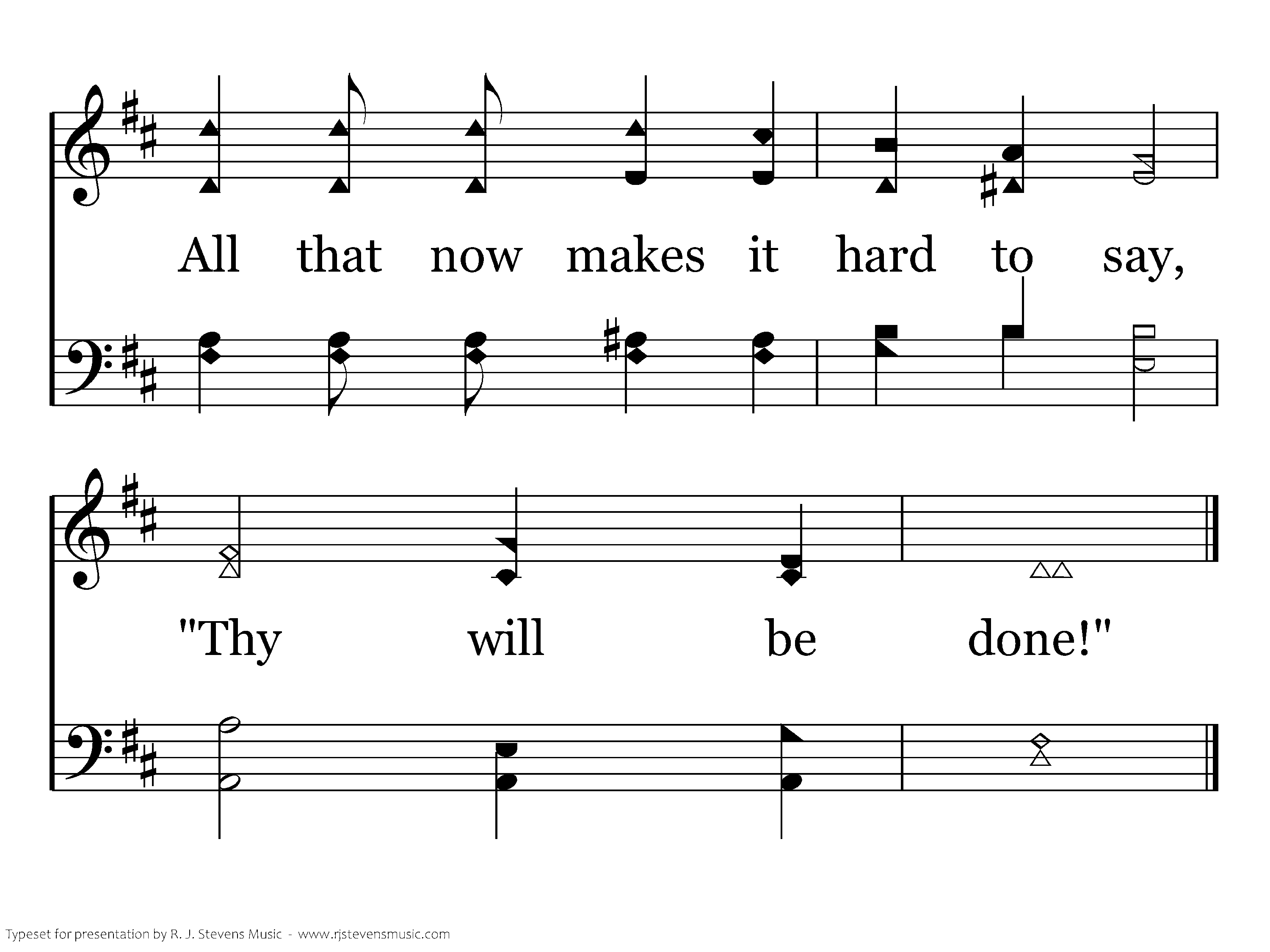 Renew my will from day to day; Blend it with Thine, and take away All that now takes it hard to say, "Thy will be done!"