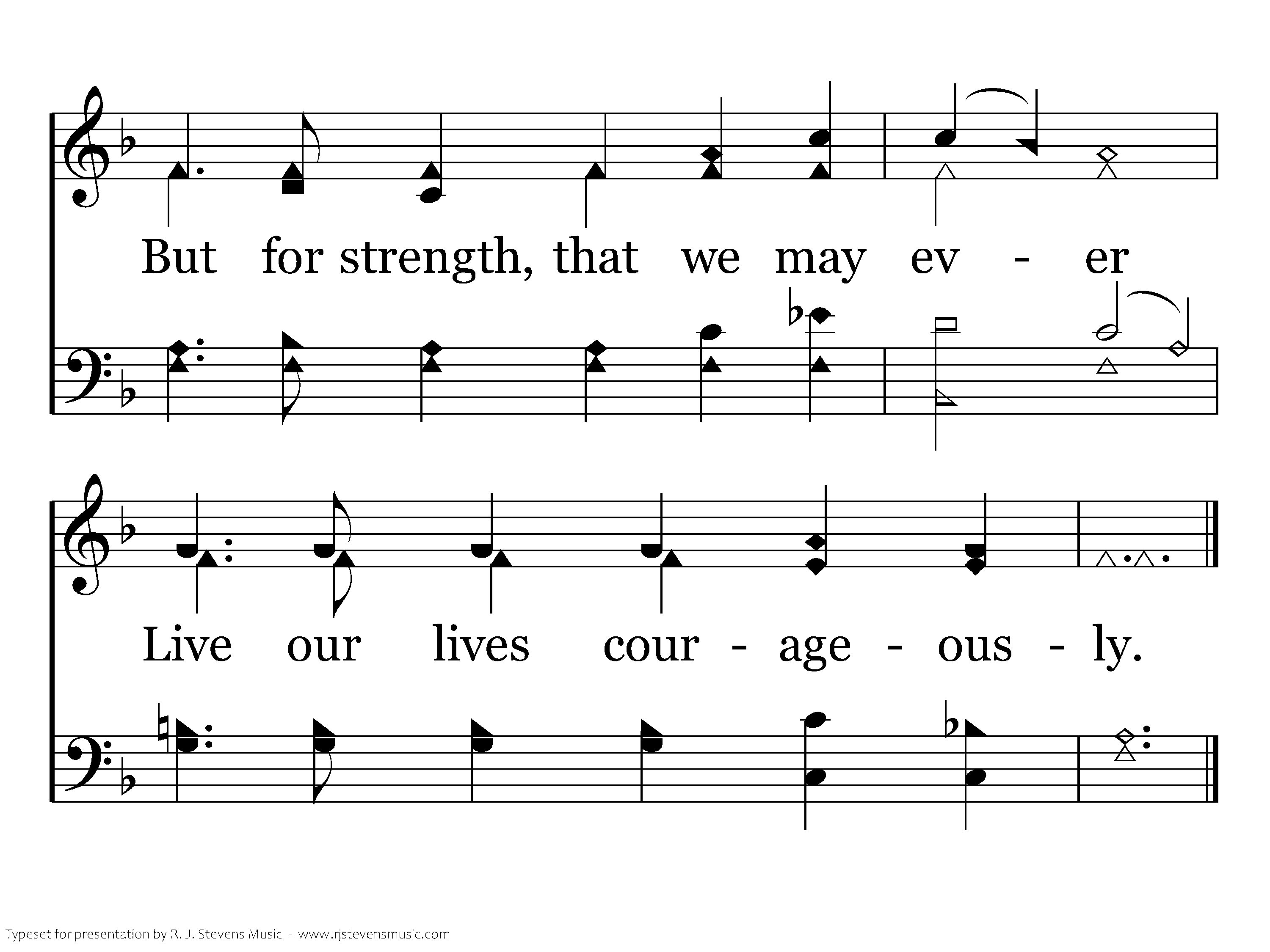 Father, hear the prayer we offer: Nor for ease that prayer shall be, But for strength, that we may ever Live our lives courageously.
