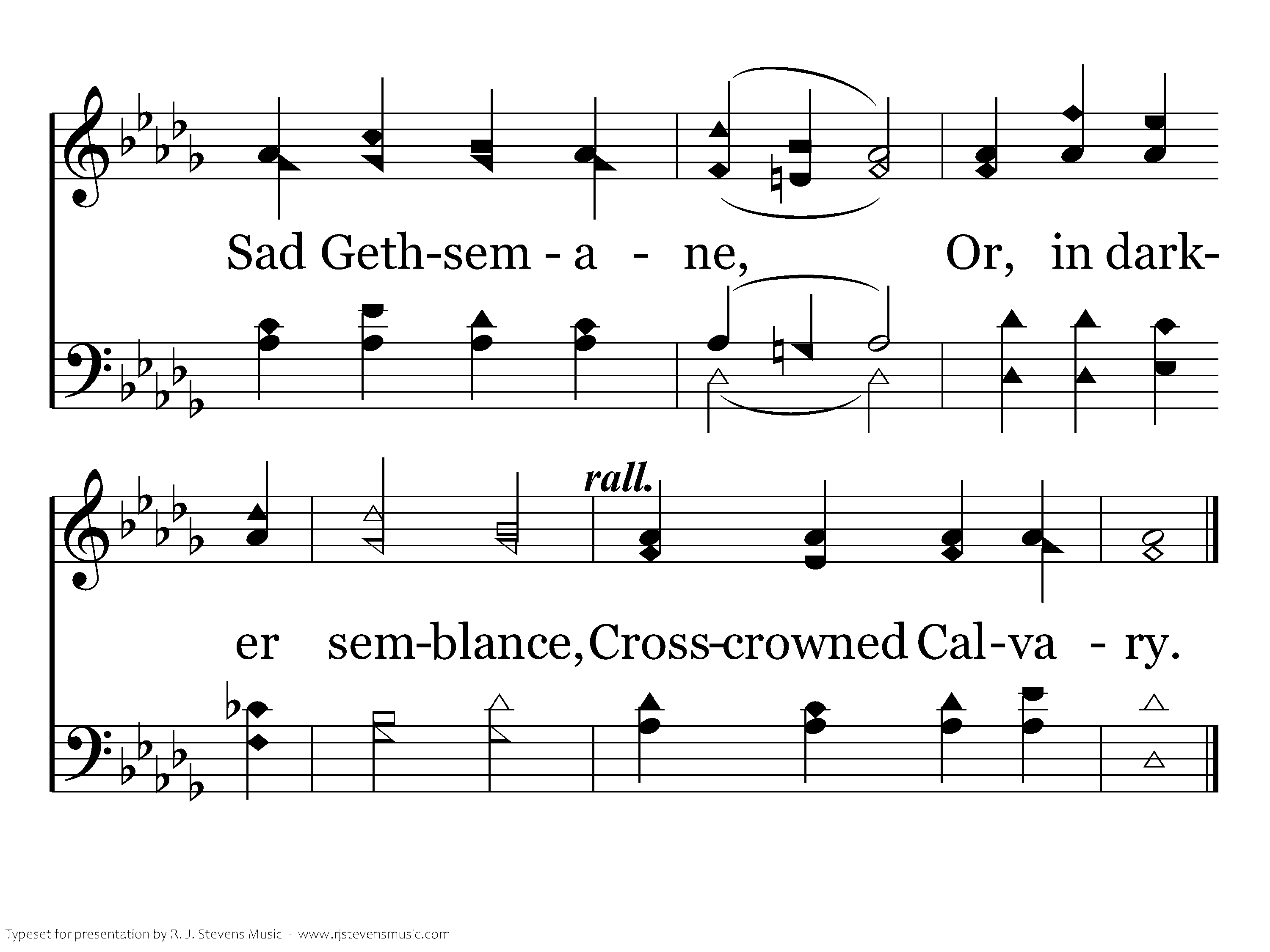 With forbidden pleasures Would this vain world charm; Or its sordid treasures Spread to work me harm; Bring to my remembrence Sad Gethsemane, Or, in darker semblence, Crosscrown'd Calvary.