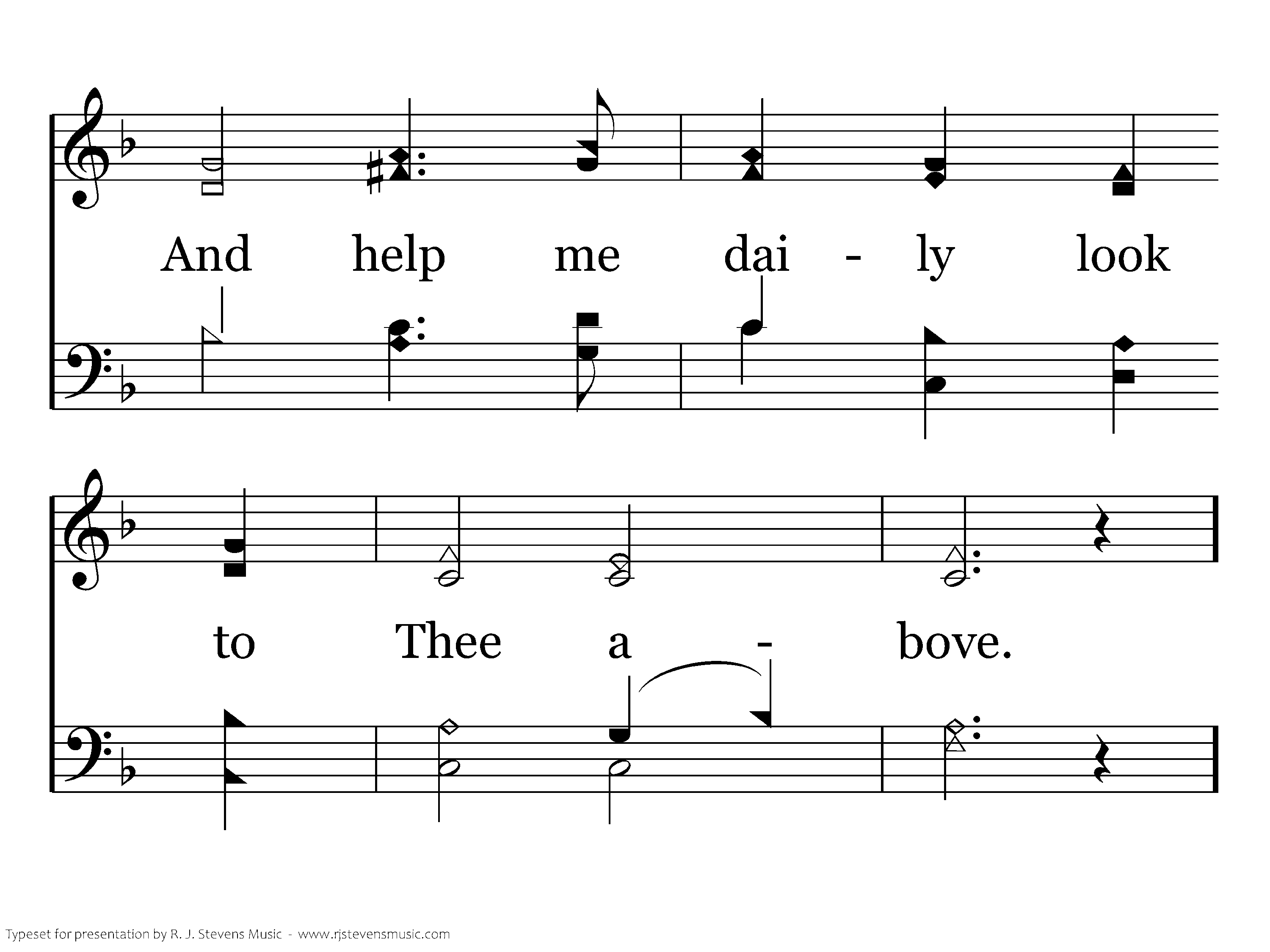 O Lord, our God, In mercy look upon me; I am unworthy of Thy tender love. O Holy One, Forgive me of my sinning, And help me daily look to Thee above.