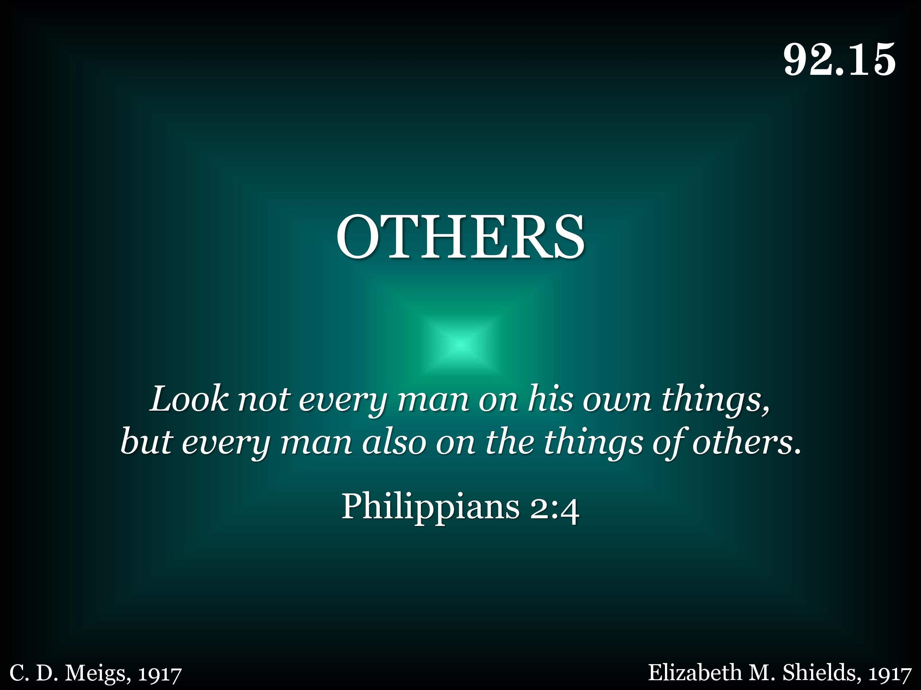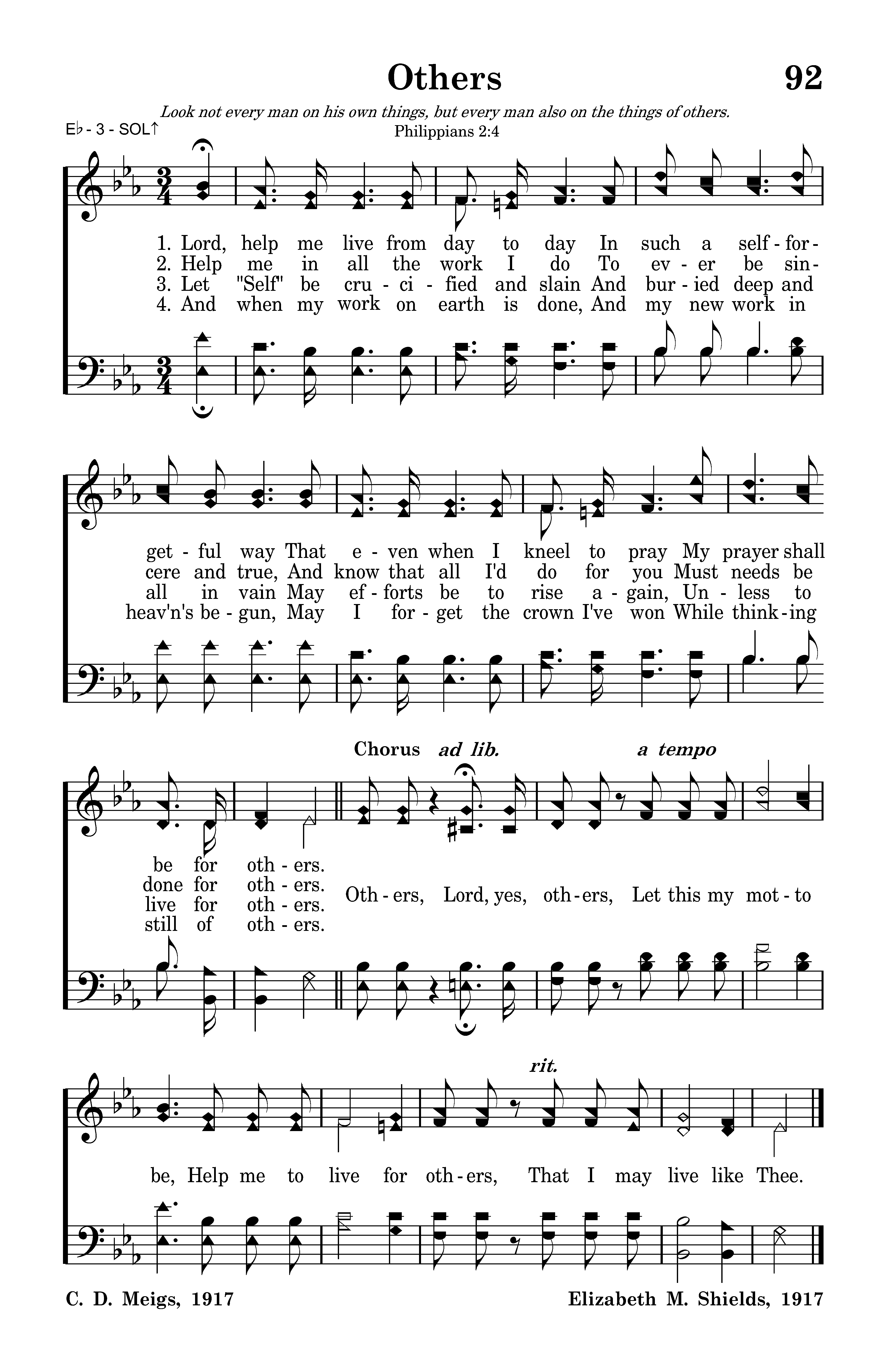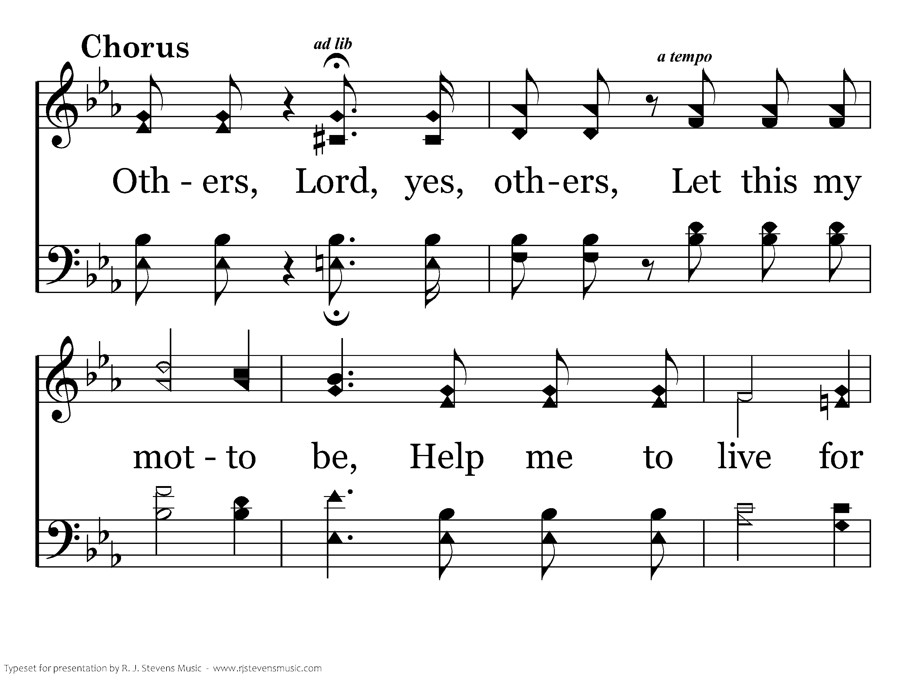 Others, Lord, yes, others, Let this my motto be, Help me to live for others, That I may live like Thee.