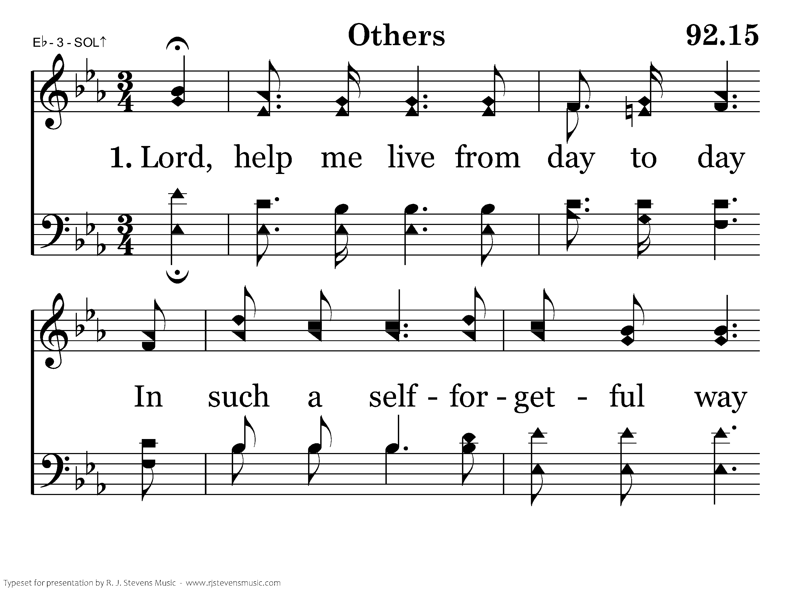 Lord, help me live from day to day In such a selfforgetful way That even when I kneel to pray My prayer shall be for others.