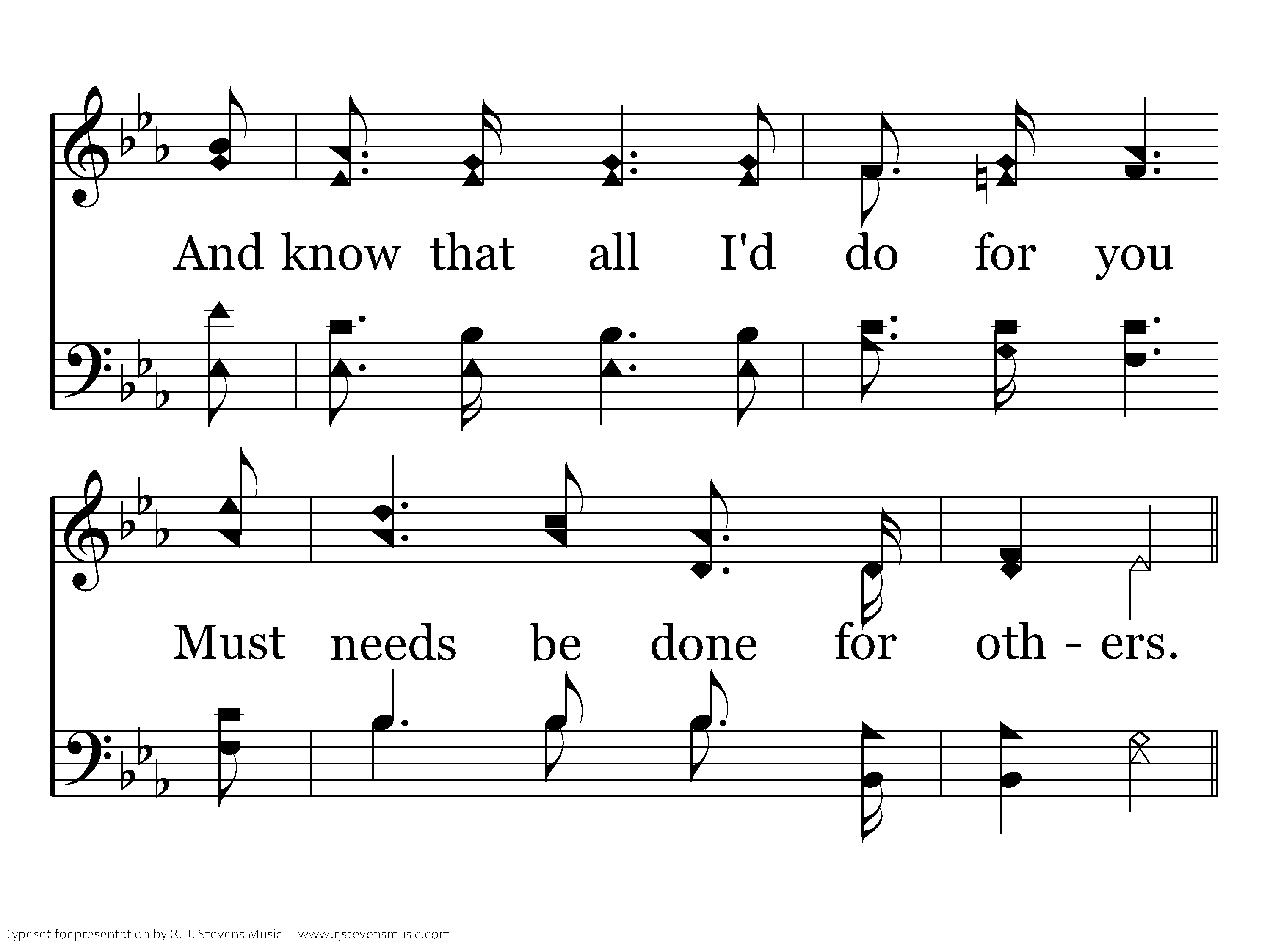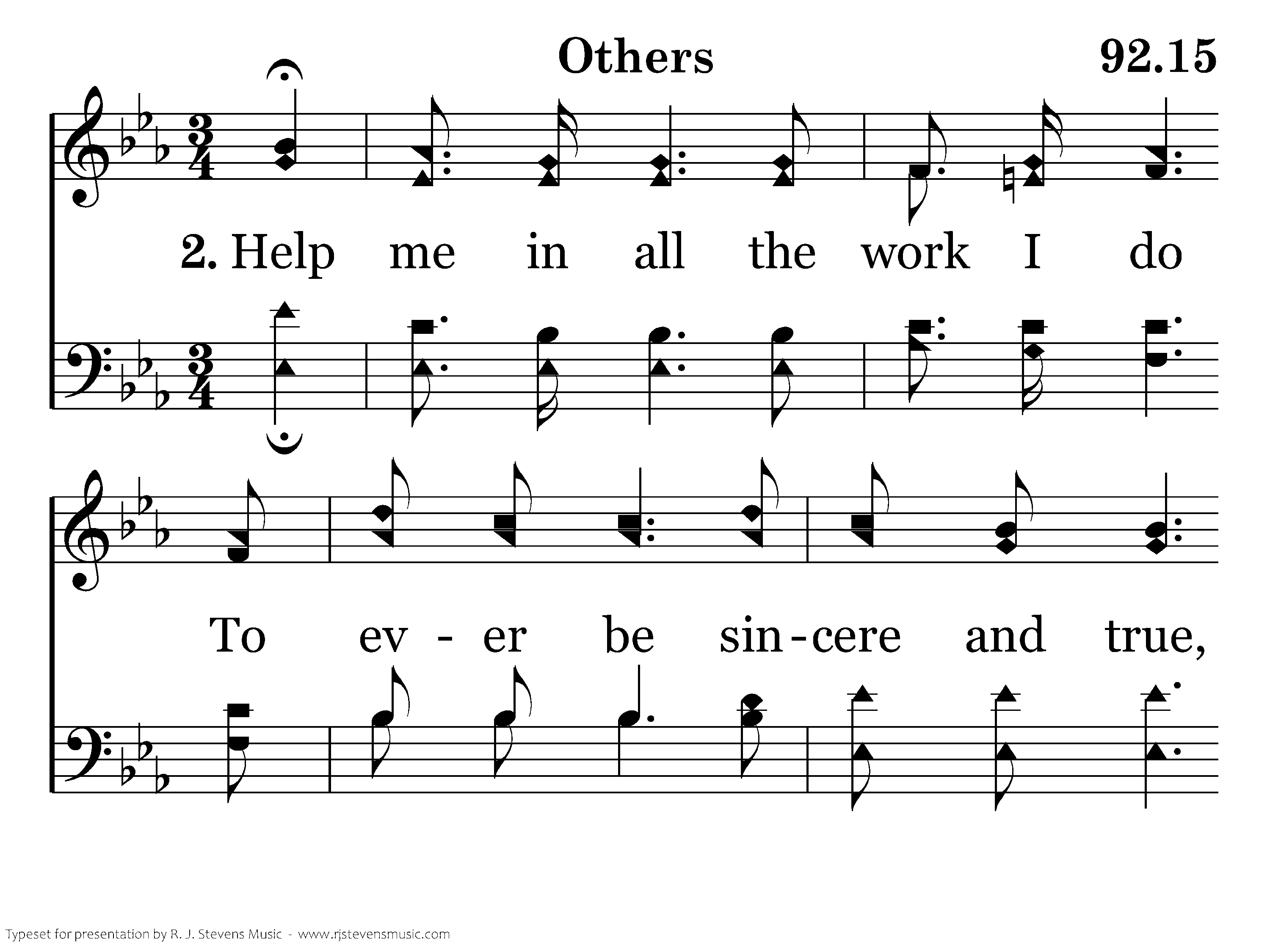 Help me in all the work I do To ever be sincere and true, And know that all I'd do for you Must needs be done for others.