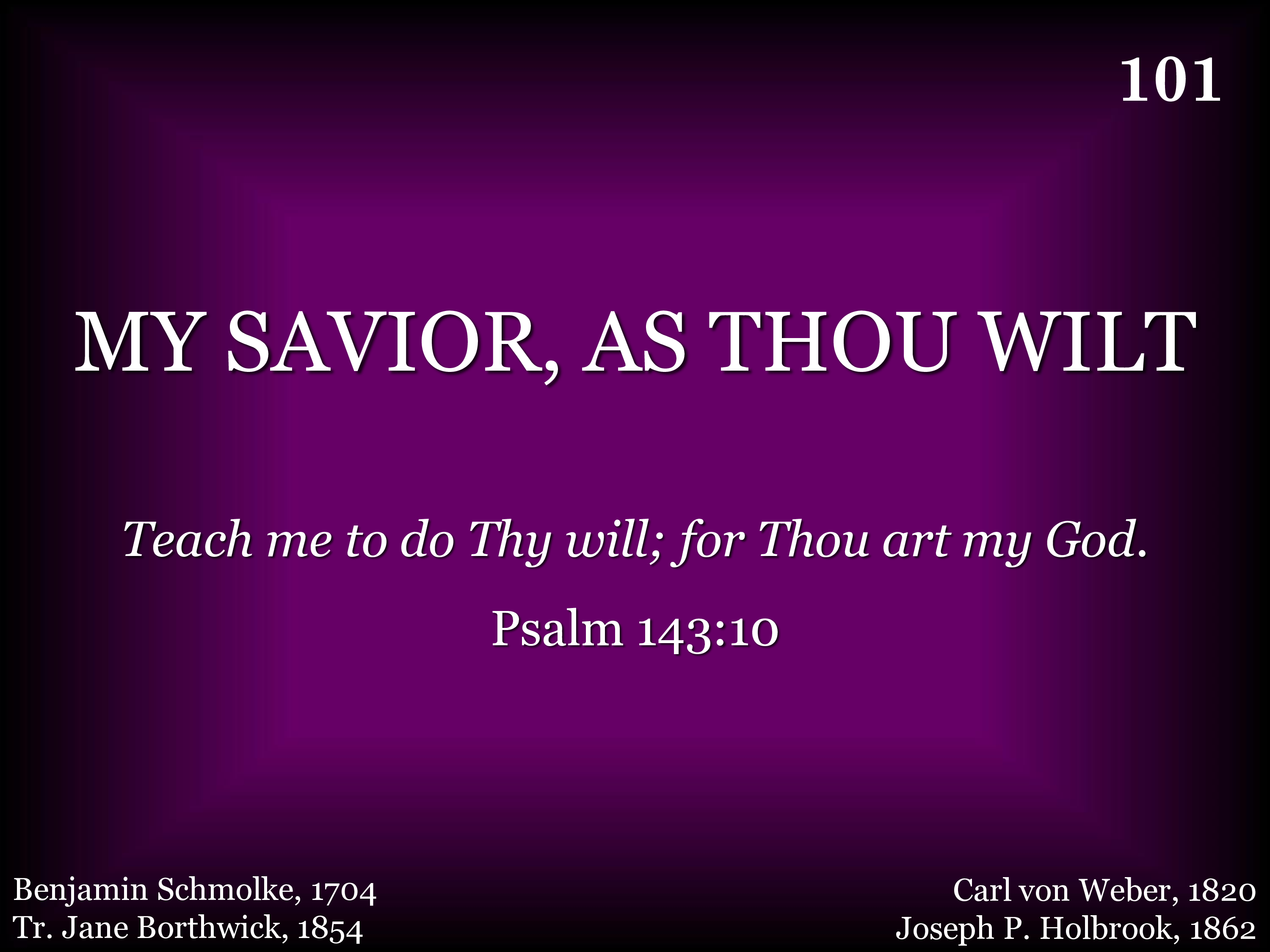 | Title | My Savior, as Thou Wilt |