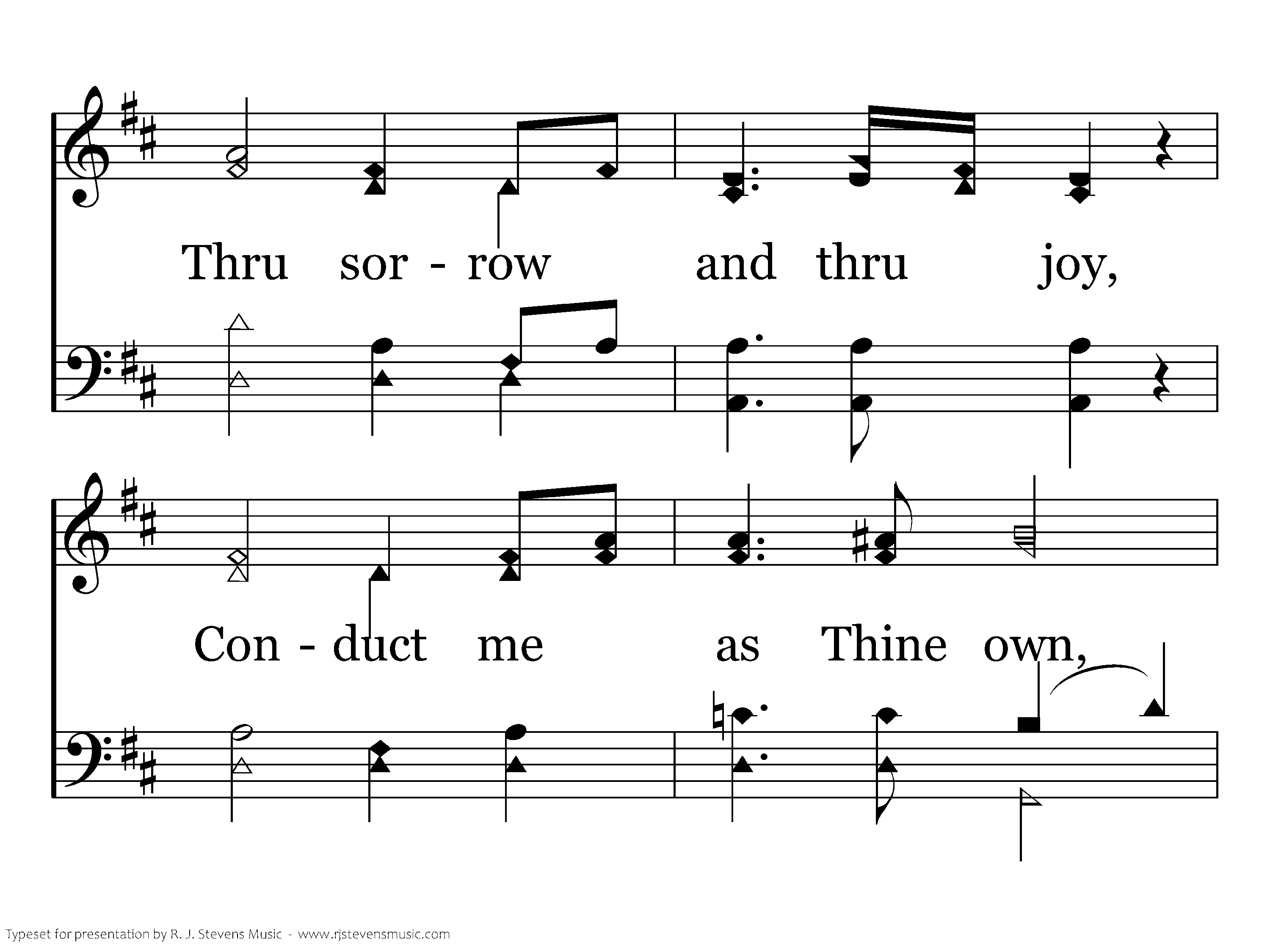 My Savior, as Thou wilt! O may Thy will be mine; Into Thy hand of love I would my all resign; Thru sorrow and thru joy, Conduct me as Thine own, And help me still to say, "My Lord, Thy will be done."