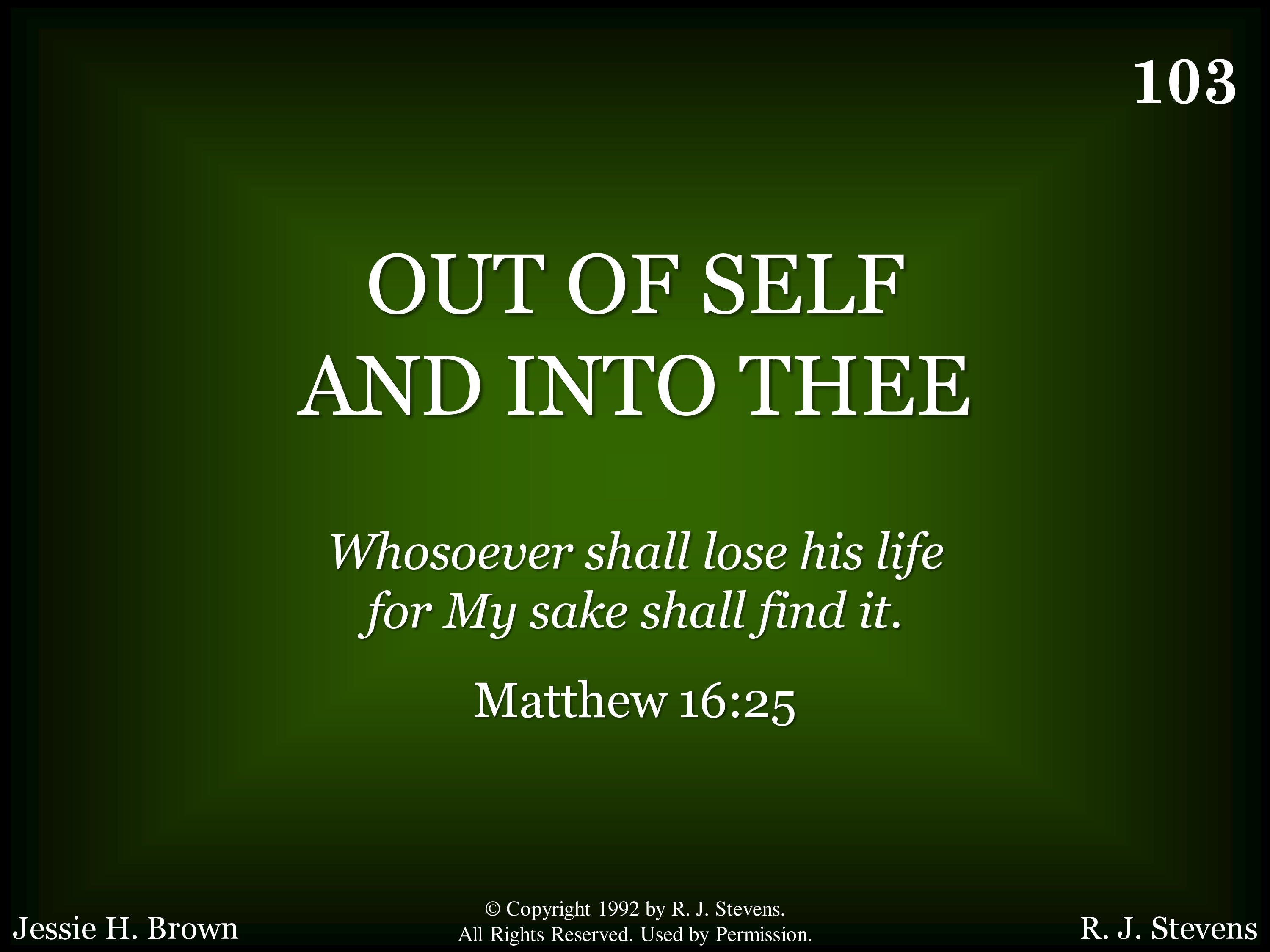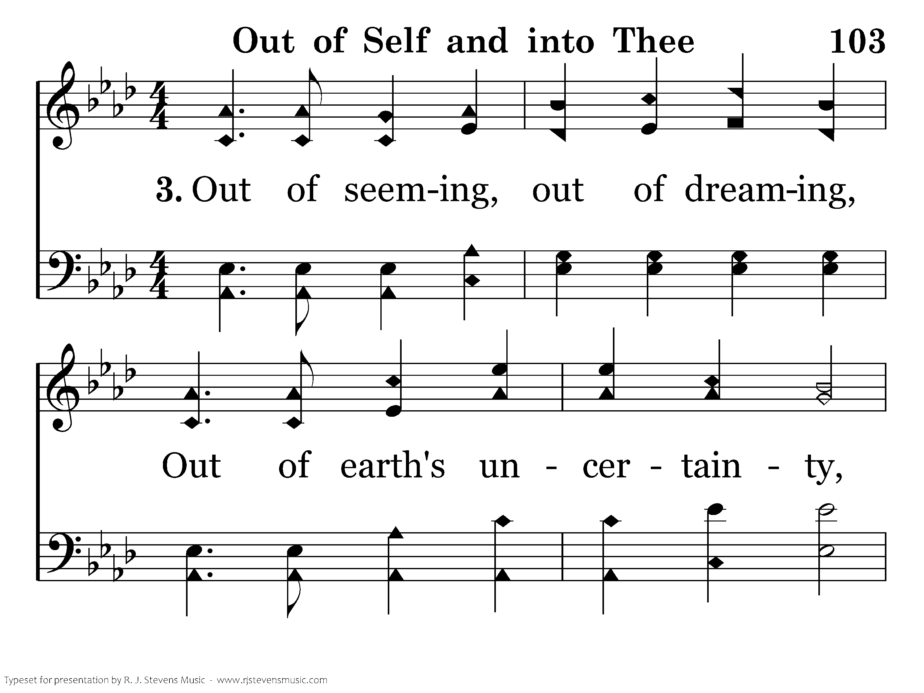 Out of self and into Thee; Lord, Thy wondrous love I see, let me daily farther flee, out of self and into Thee.