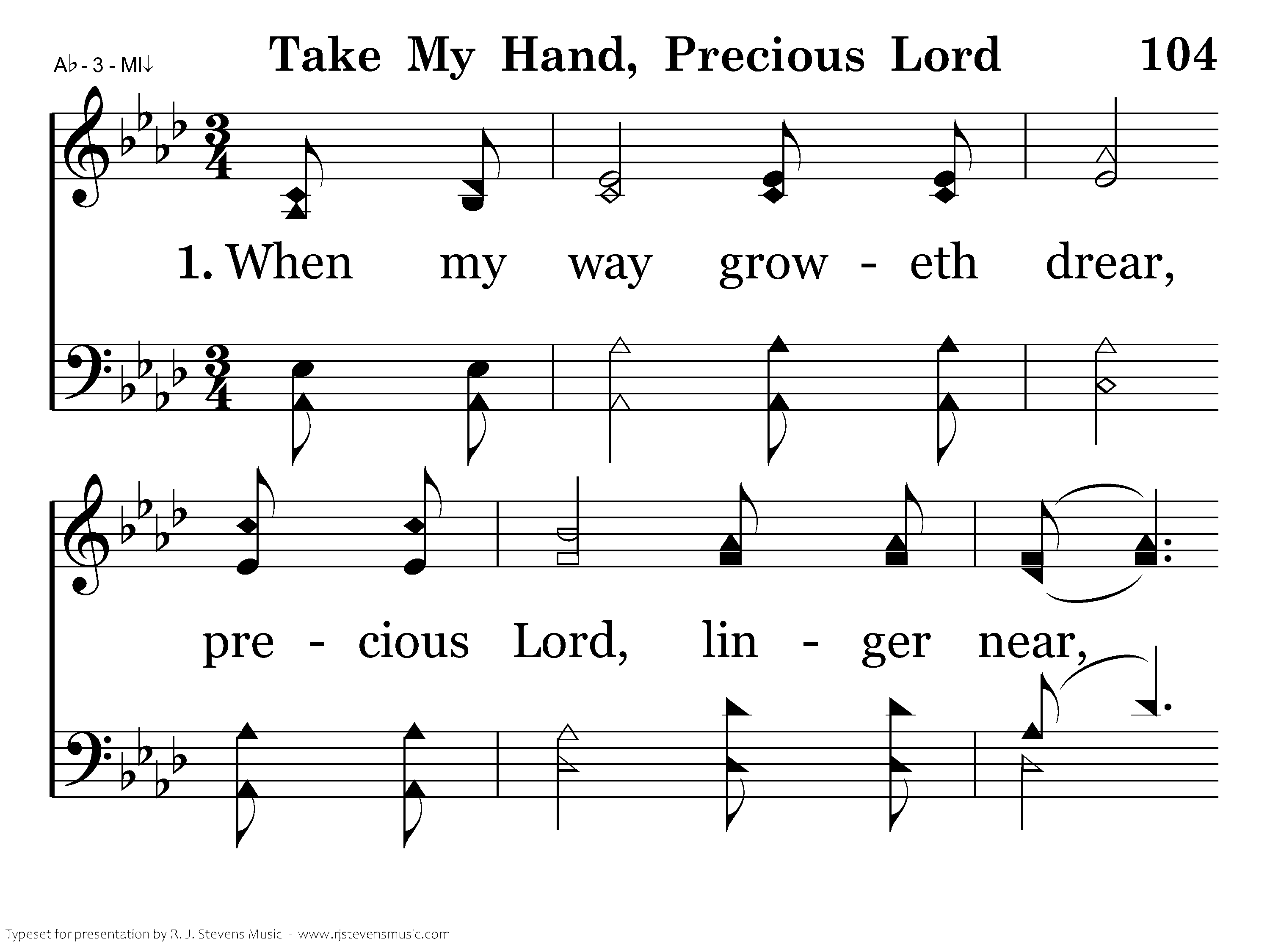 When my way groweth drear, precious Lord, linger near, When my llife is almost gone; Hear my cry, hear my call, hold my hand lest I fall; Take my hand, precious Lord, lead me home.
