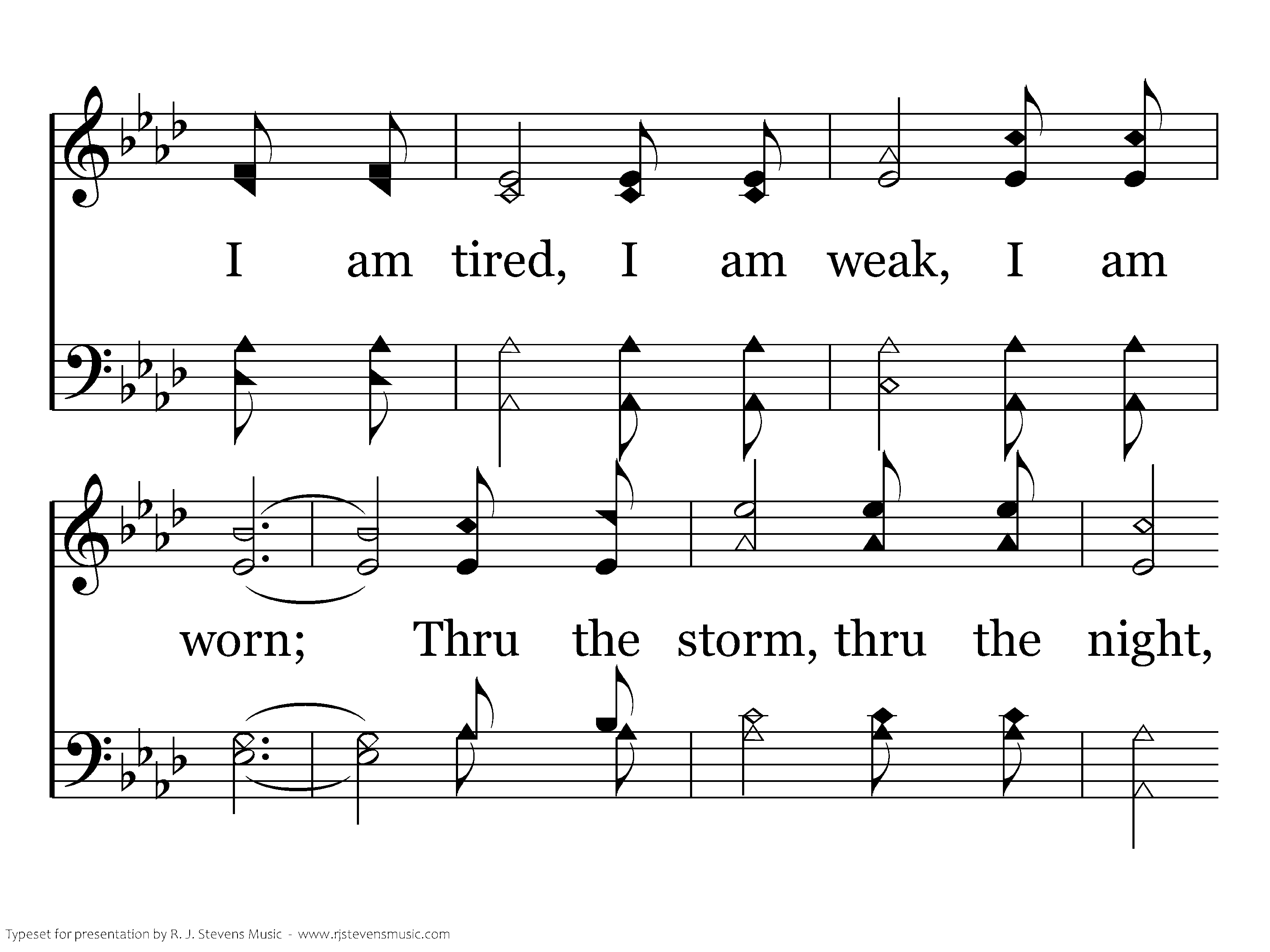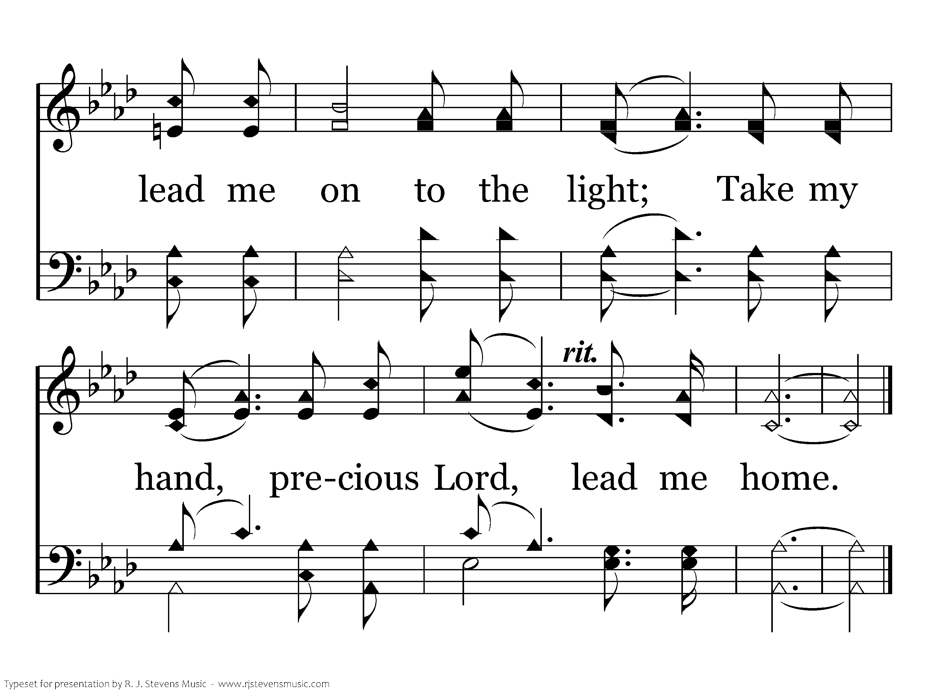 Precious Lord, take my hand, lead me on, let me stand, I am tired, I am weak, I am worn; Thru the storm, thru the night, lead me on to the light; Take my hand, precious Lord, lead me home.