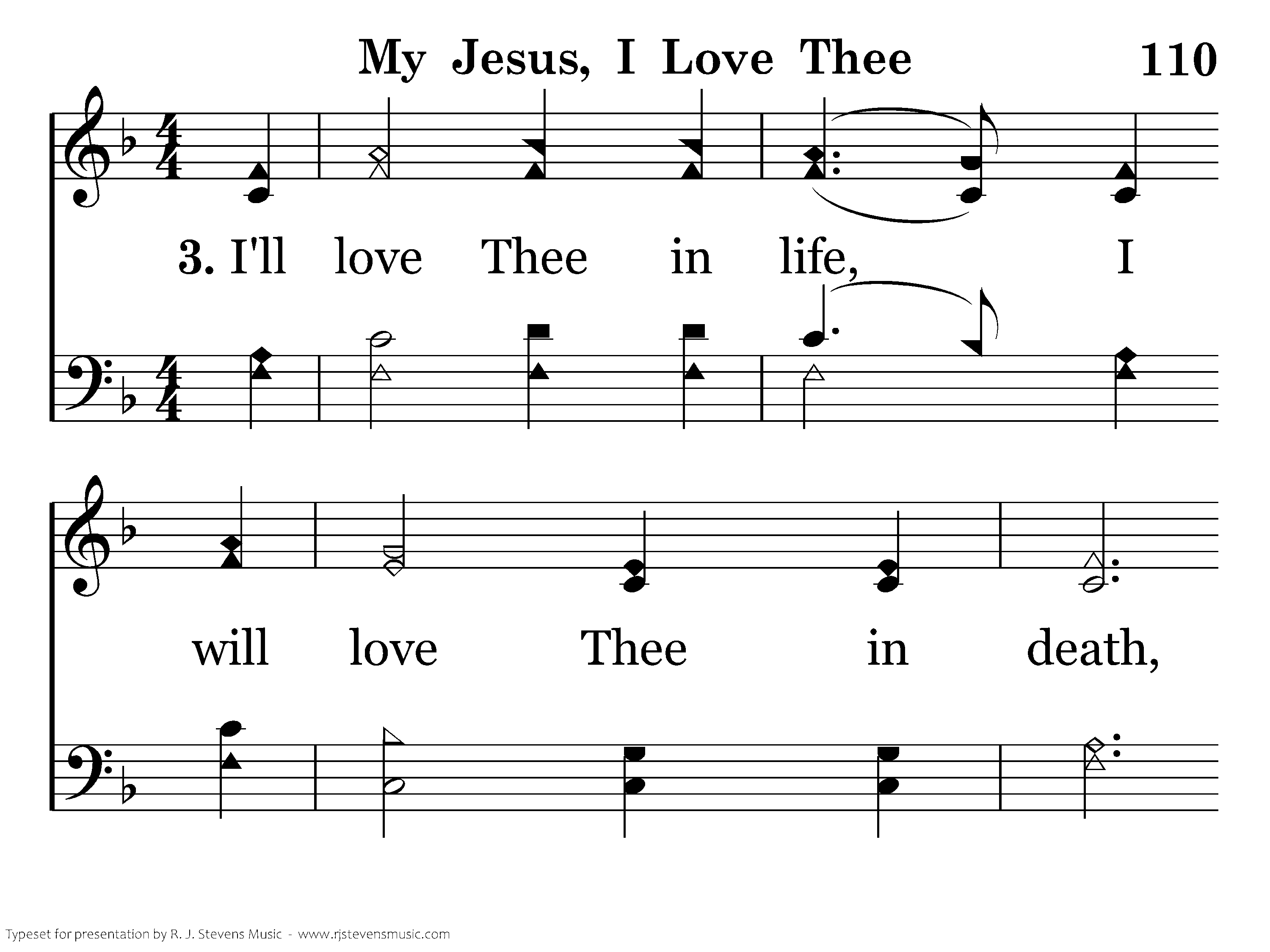 I'll love Thee in life, I will love Thee in death, And praise Thee as long as Thou lendest me breath; And say when the death dew lies cold on my brow; If ever I loved Thee, my Jesus 'tis now.