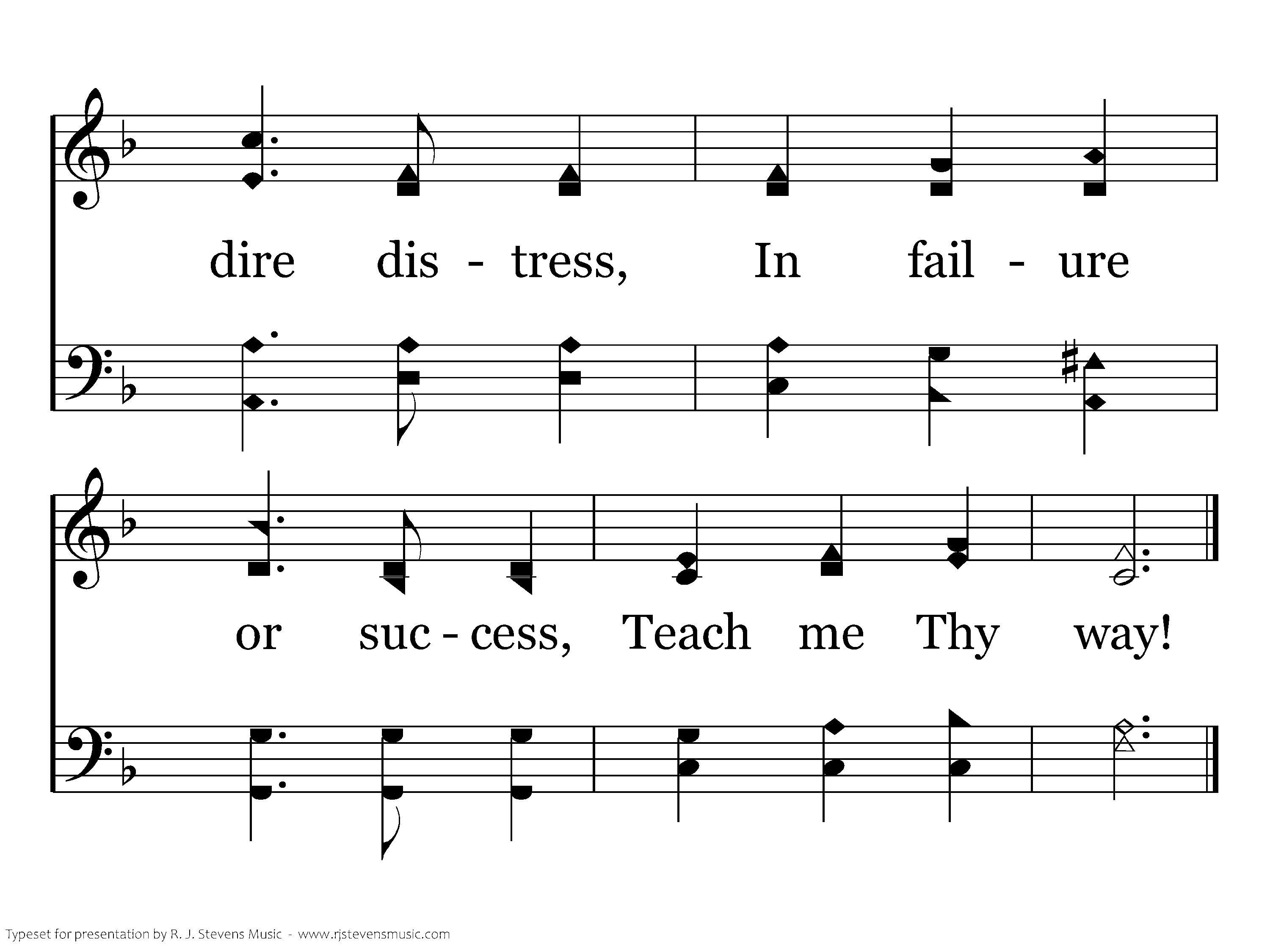 When I am sad at heart, teach me Thy way! When earthly joys depart, teach me Thy way! In hours of loneliness, in times of dire distress, in failure or success, teach me Thy way!