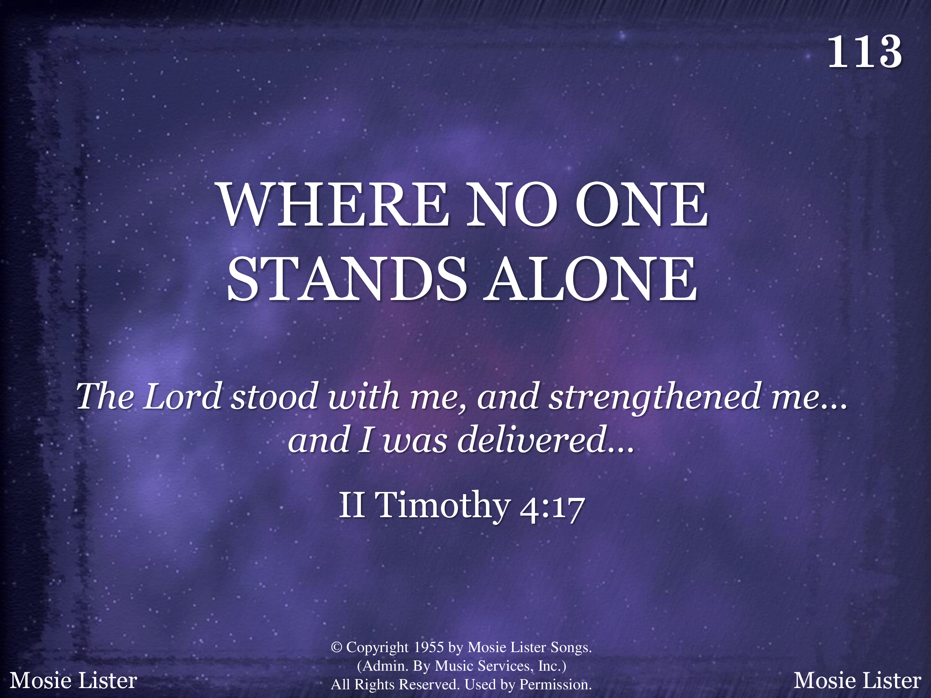 | Title | Where No One Stands Alone |