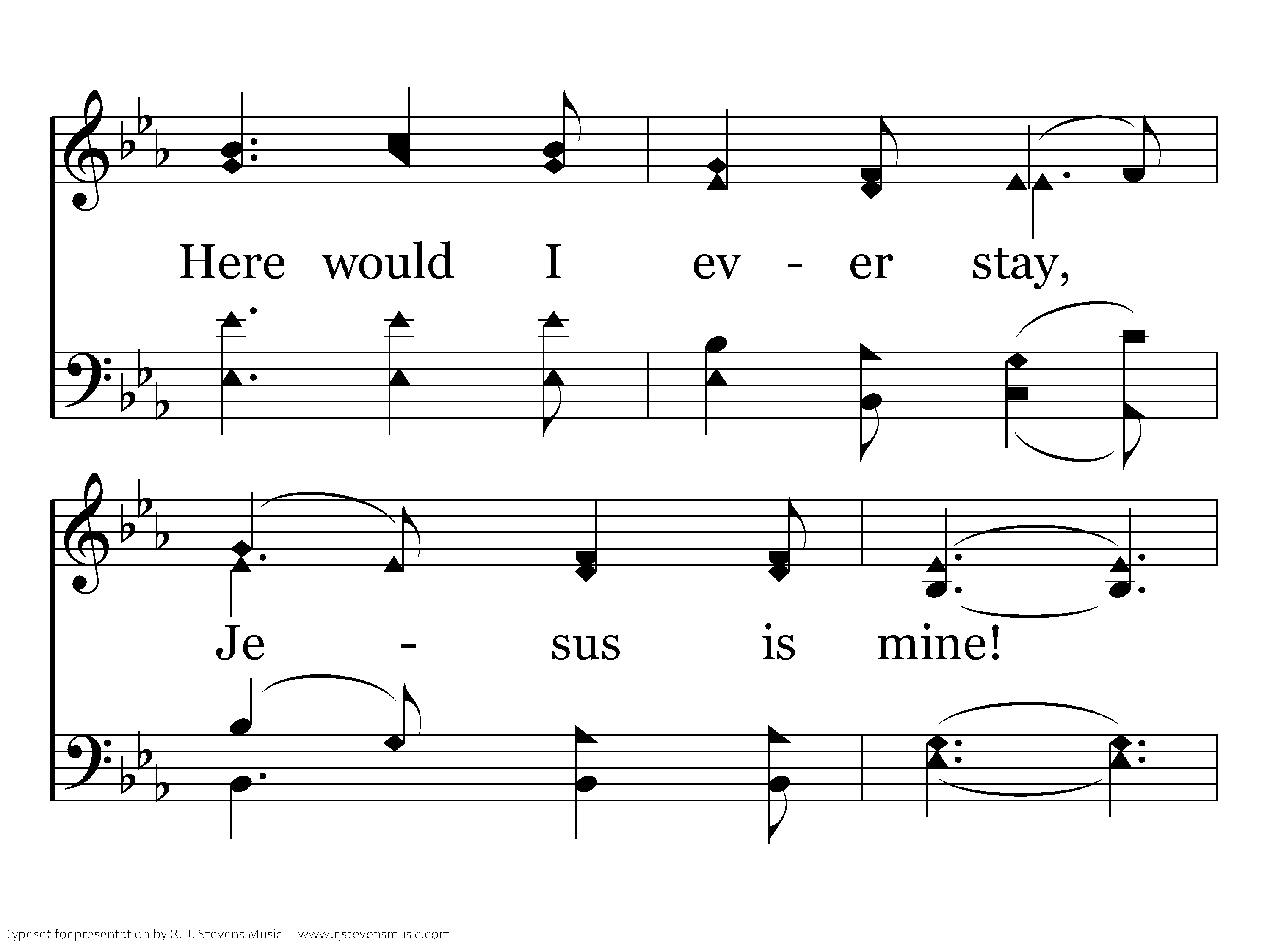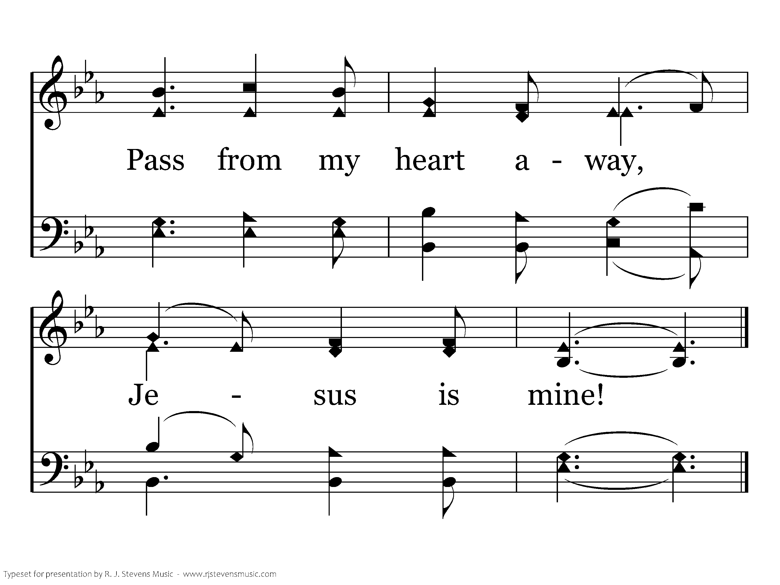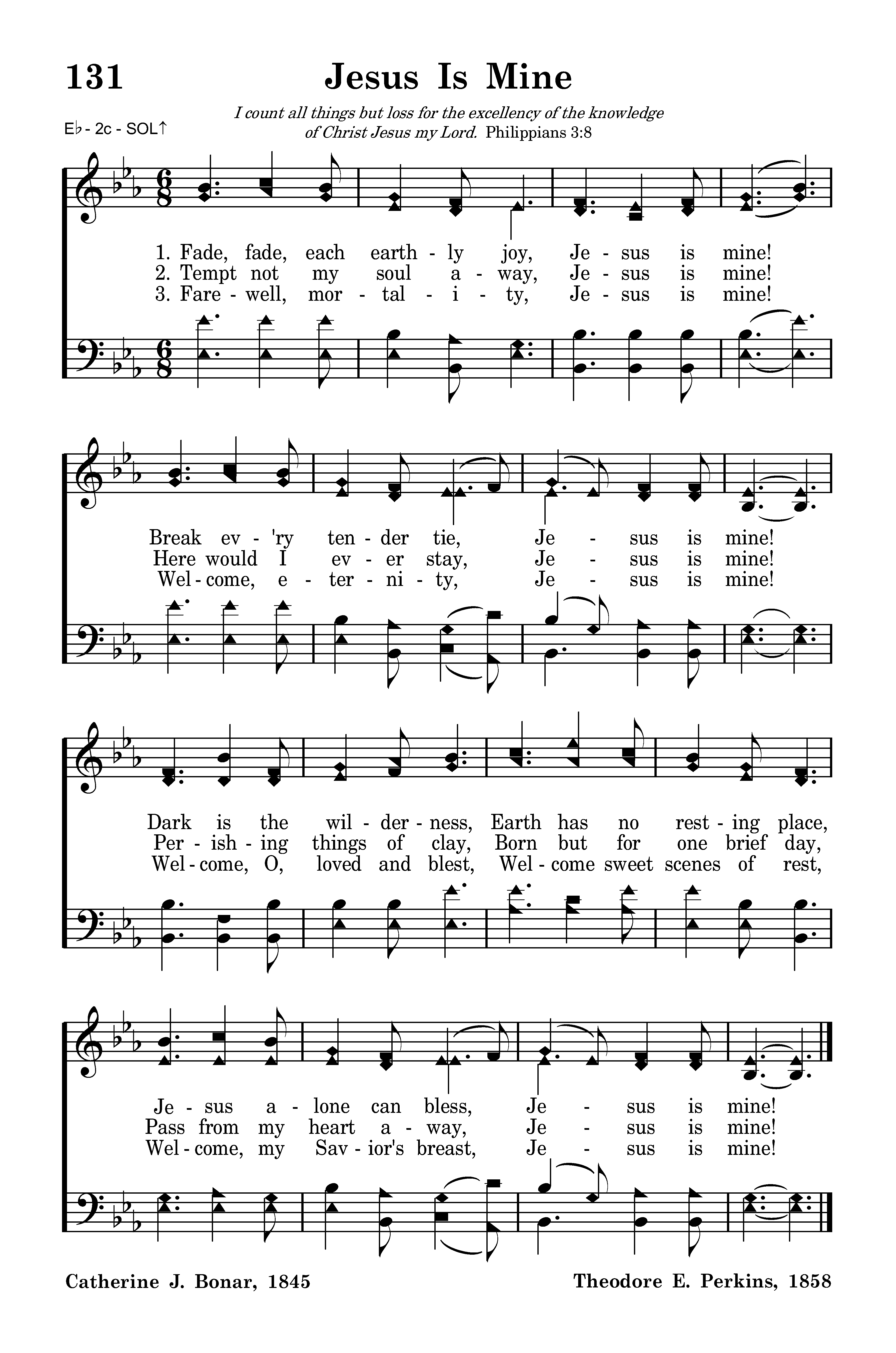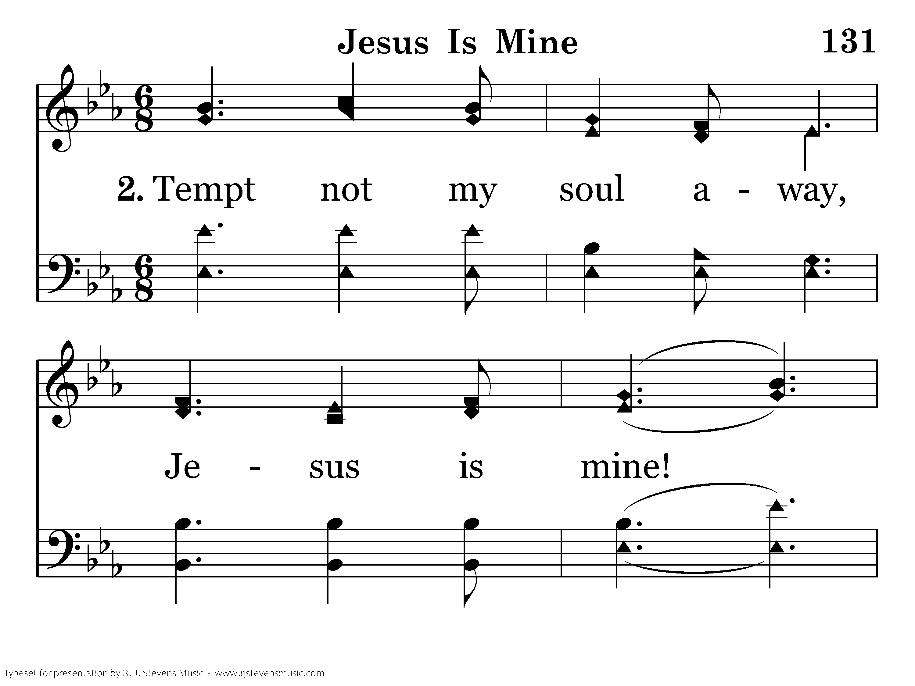 Tempt not my soul away, Jesus is mine! Here would I ever stay, Jesus is mine! Perishing things of clay, Born but for one brief day, Pass from my heart away, Jesus is mine!