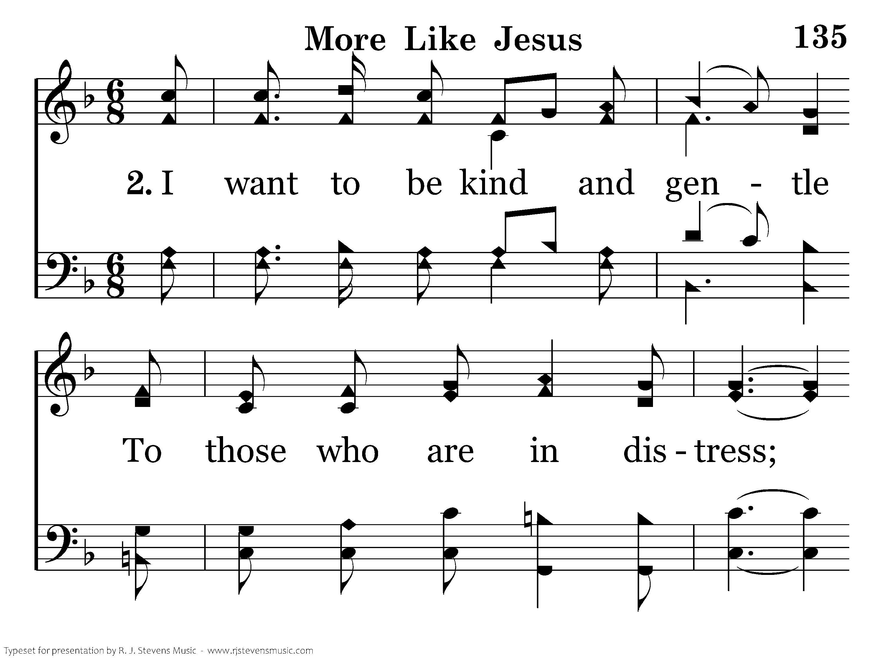 I want to be kind and gentle To those who are in distress; To comfort the brokenhearted with sweet words of tenderness.