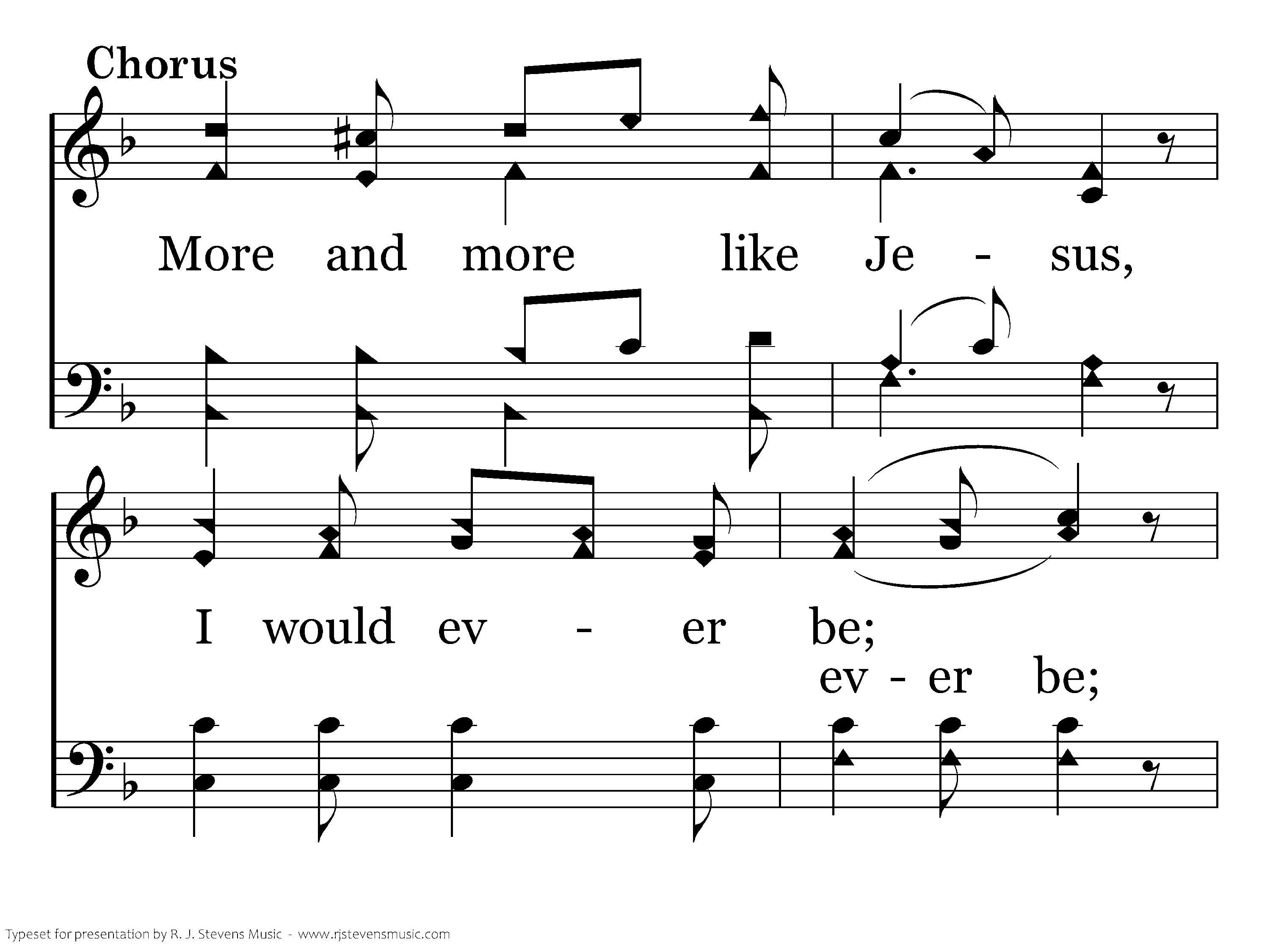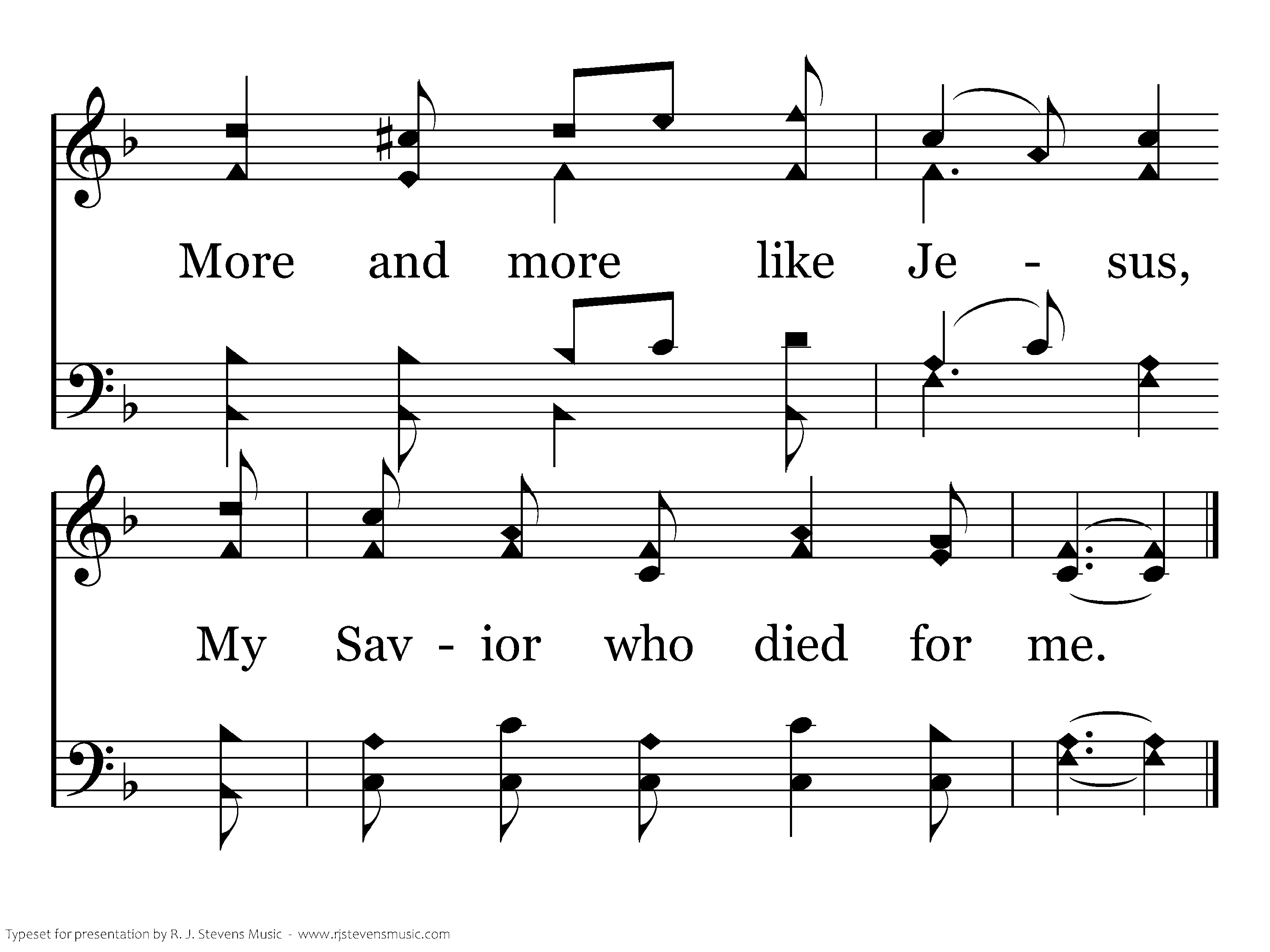 More and more like Jesus, I would ever be; More and more like Jesus, My Savior who died for me.