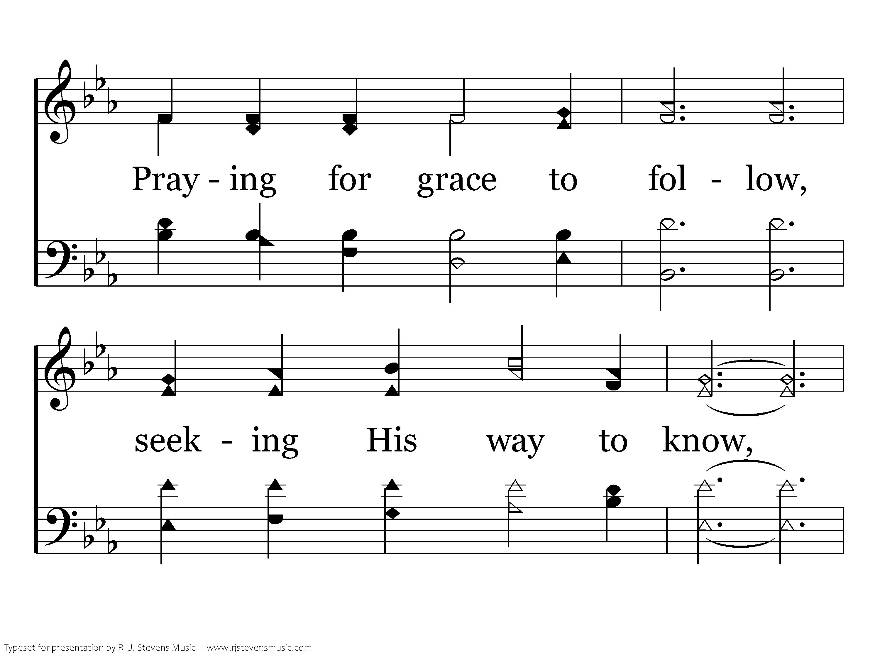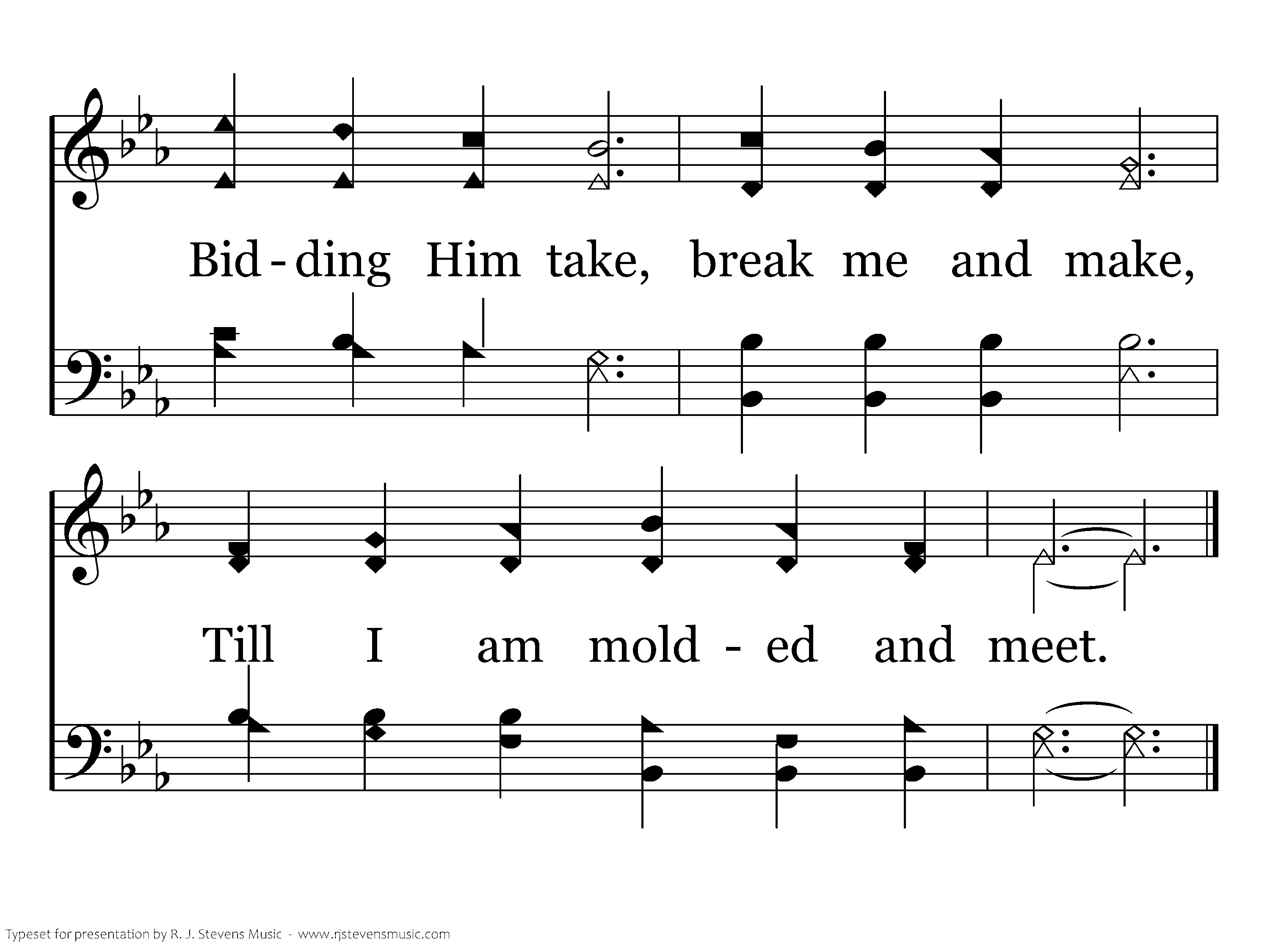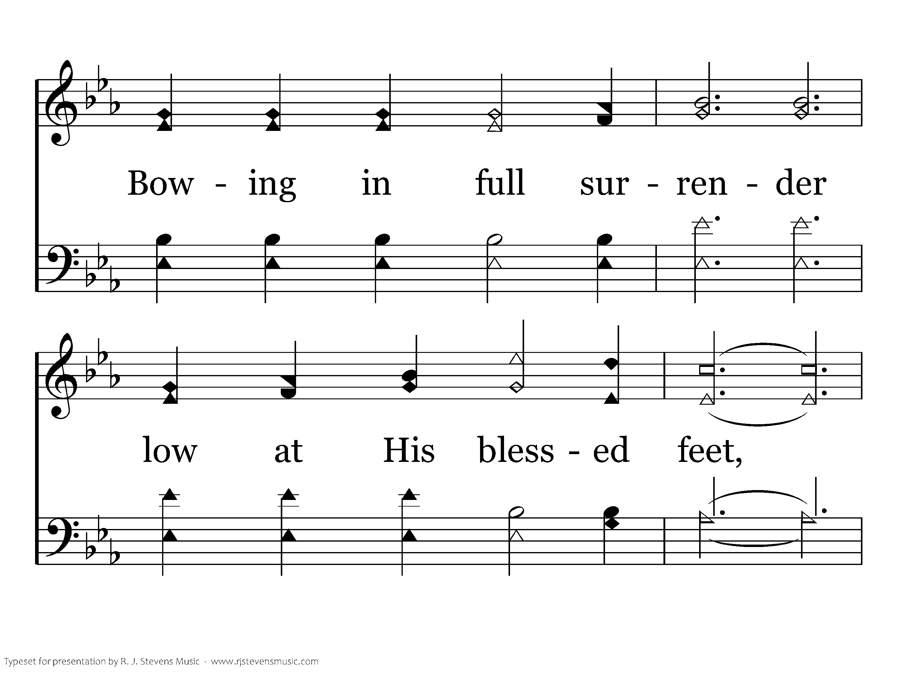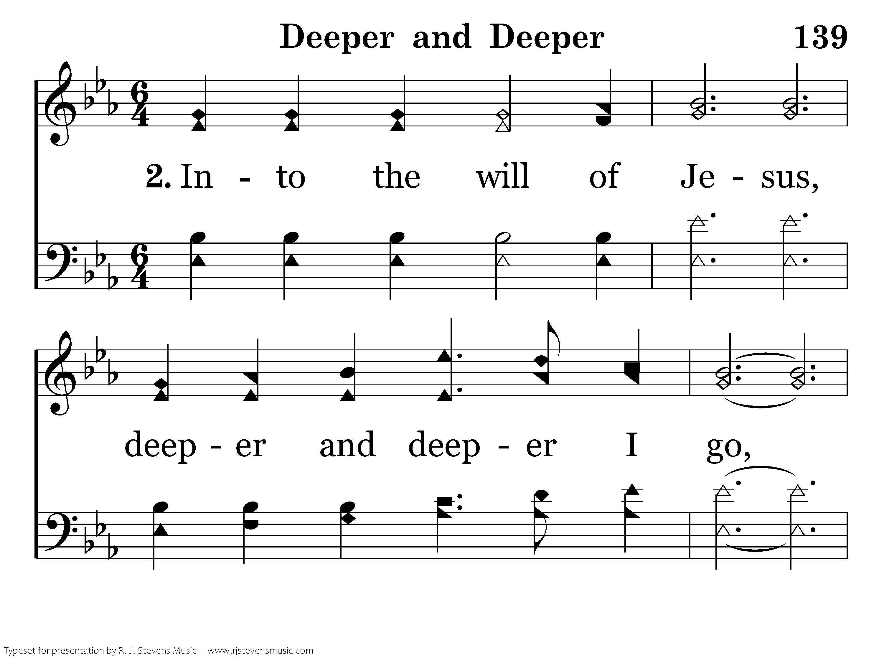 Into the heart of Jesus, Deeper and deeper I go, Praying for grace to follow, seeking His way to know, Bowing in full surrender low at His blessed feet, Bidding Him take, break me and make, Till I am molded and meet.