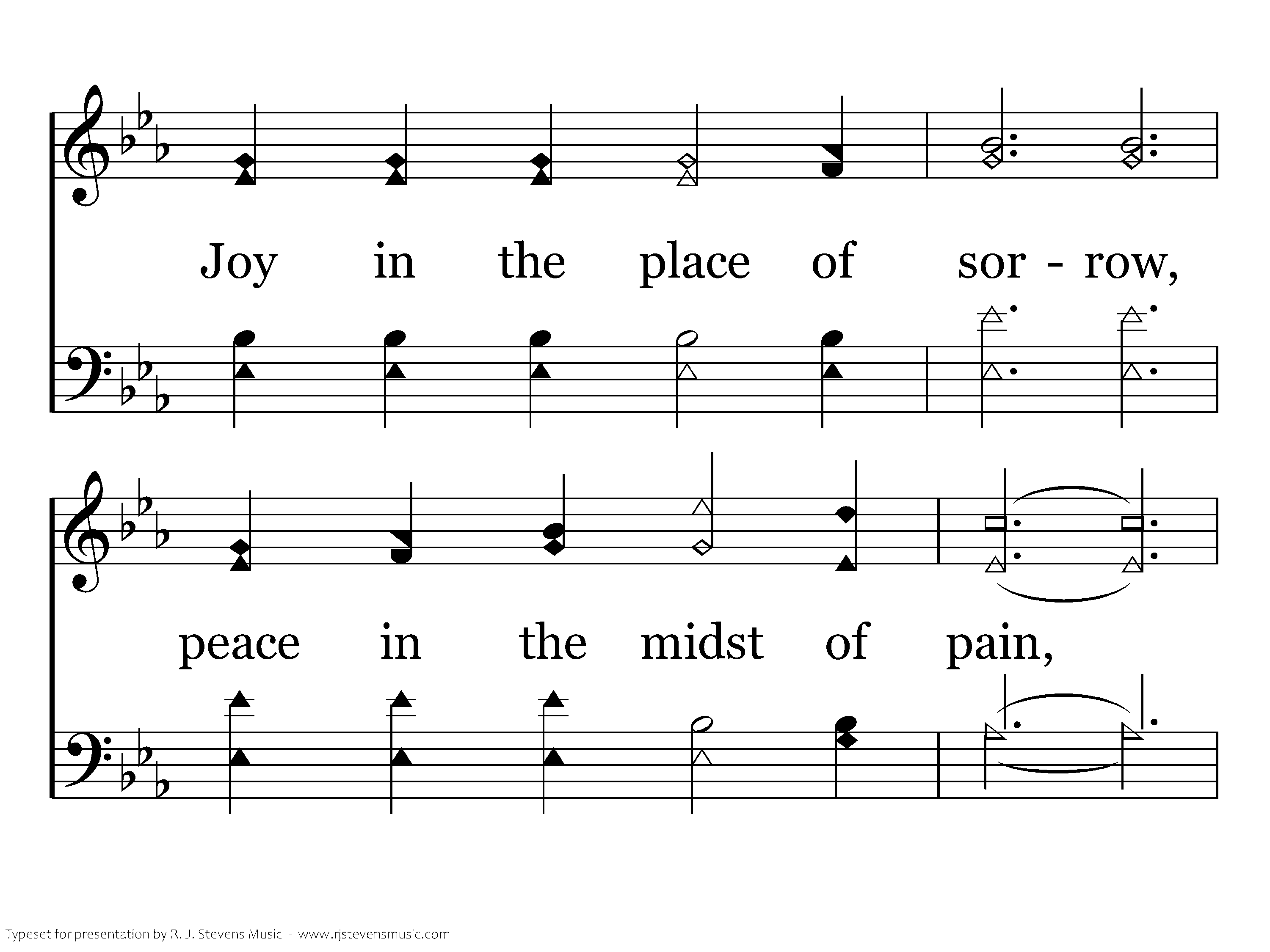 Into the heart of Jesus, Deeper and deeper I go, Rising with soul enraptured far from the world below, Joy in the place of sorrows, peace in the midst of pain, Jesus will give, Jesus will give; He will uphold and sustain.