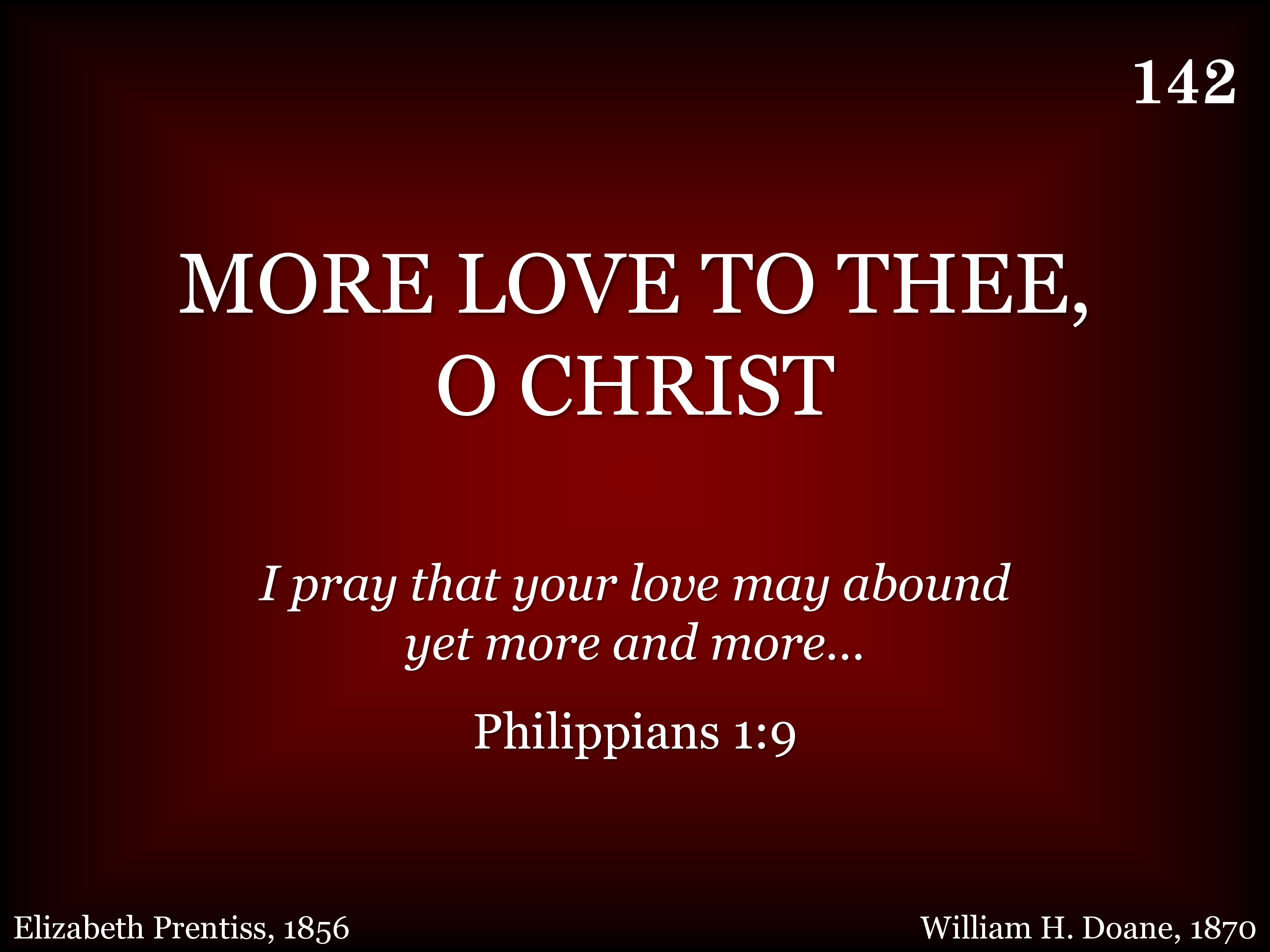 More love to Thee, O Christ, More love to Thee! Hear Thou the prayer I make On bended knee; This is my earnest plea, More love, O Christ to Thee, More love to Thee! More love to Thee.