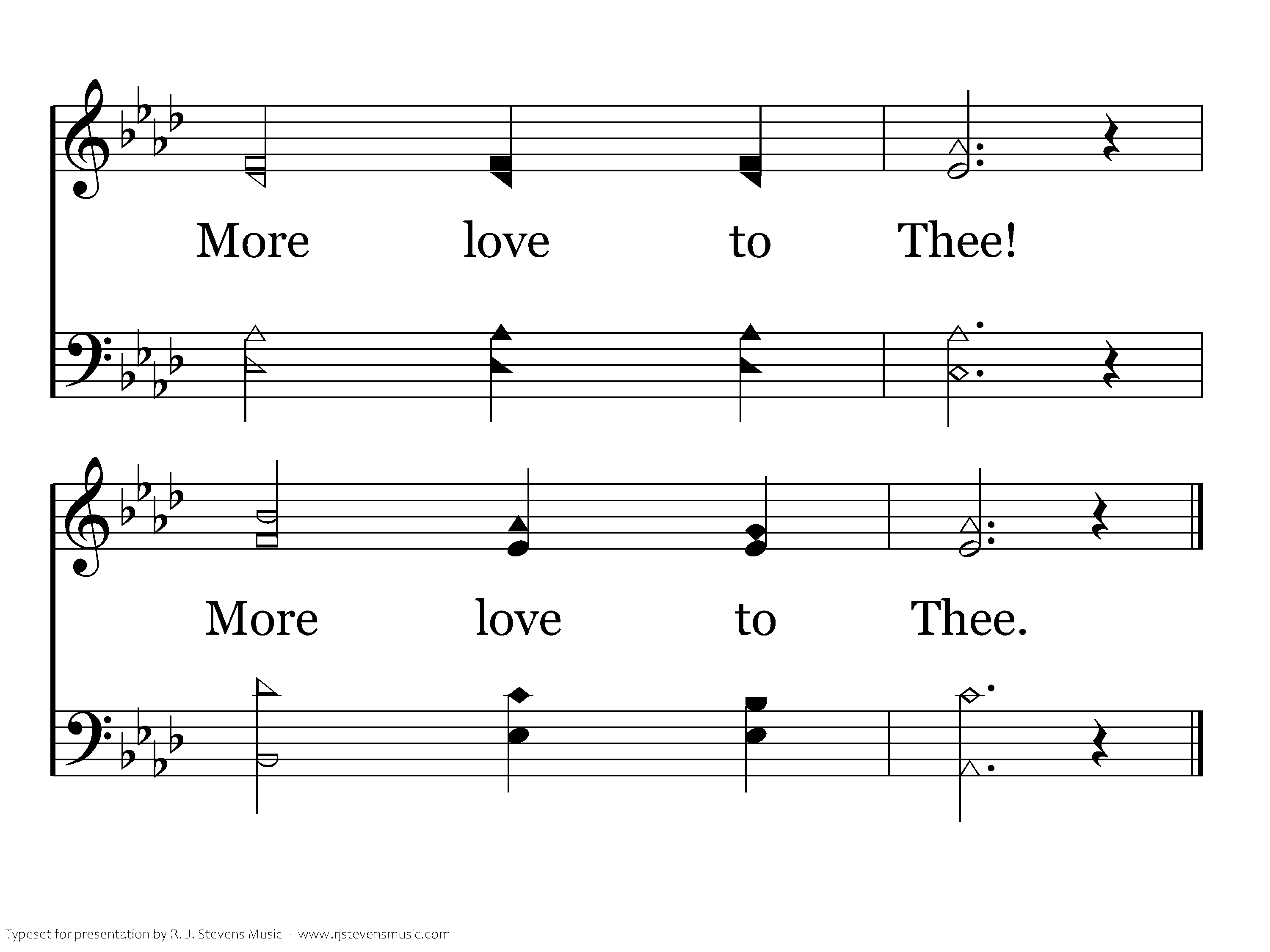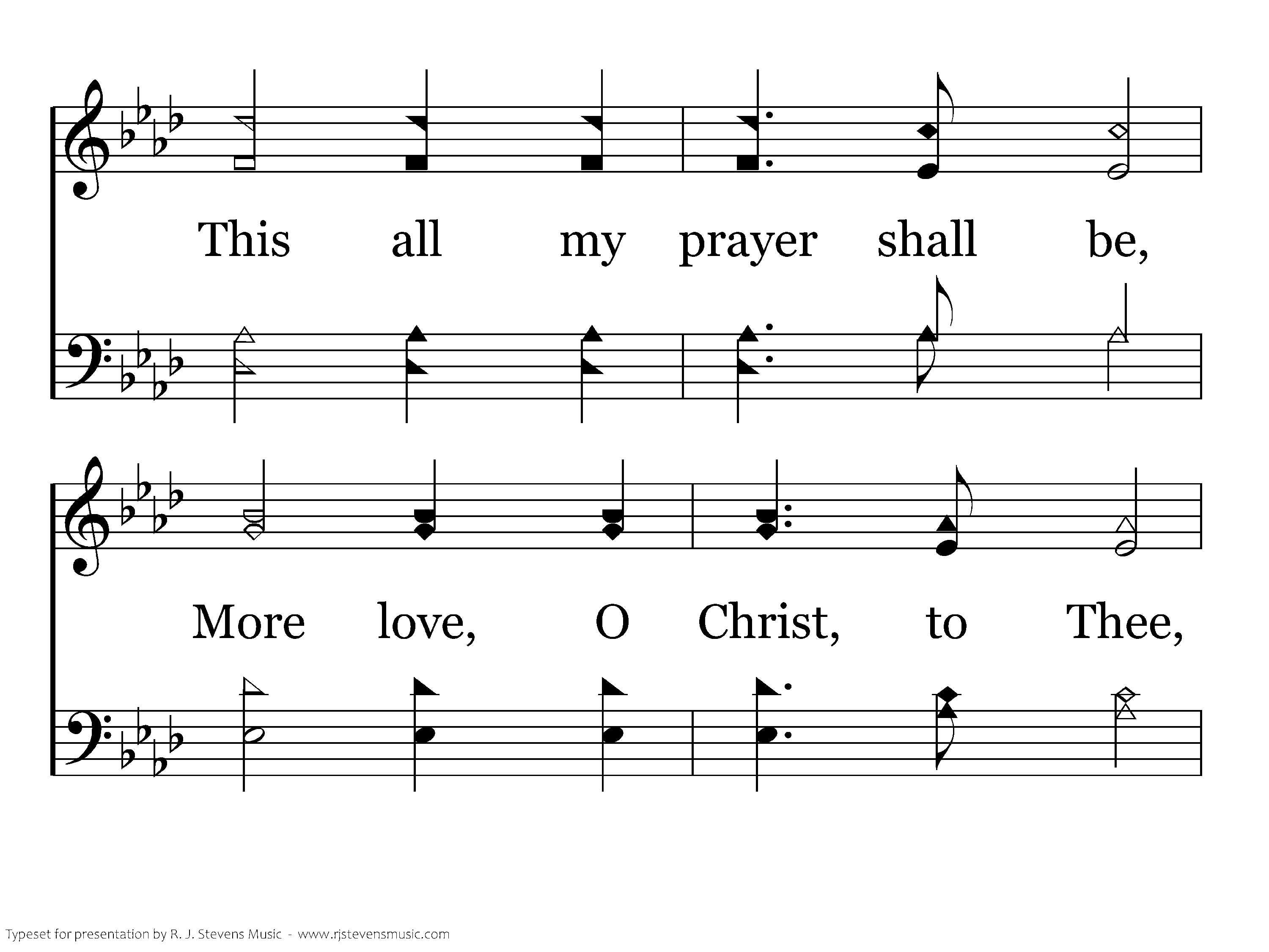 Then shall my latest breath Whisper Thy praise; This be the parting cry My heart shall raise, This still its prayer shall be, More love, O Christ, to Thee, More love to Thee! More love to Thee.