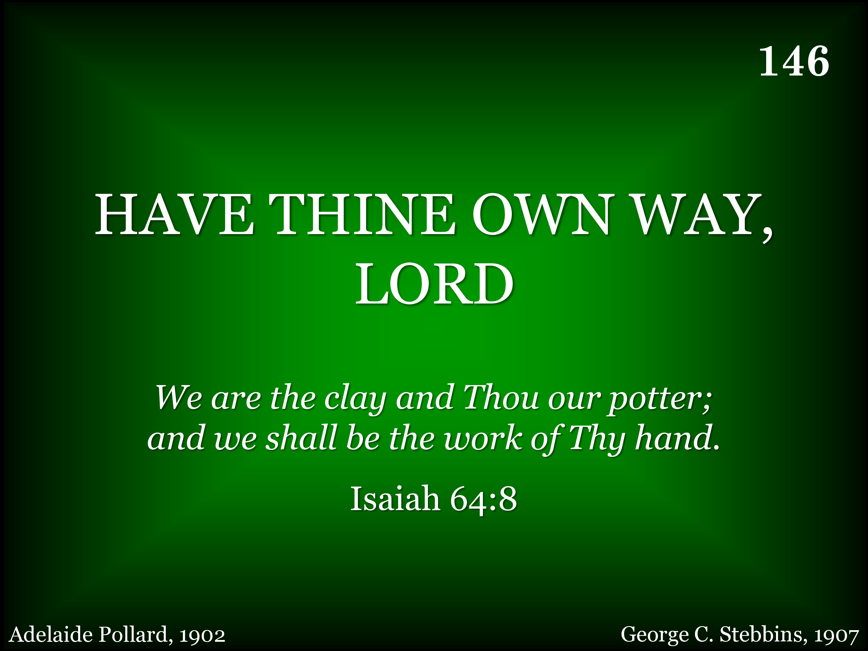 Have thine own way, Lord! Have thine own way! Search me and try me, Master today! Whiter than snow, Lord, Wash me just now, As in thy presence, Humbly I bow.